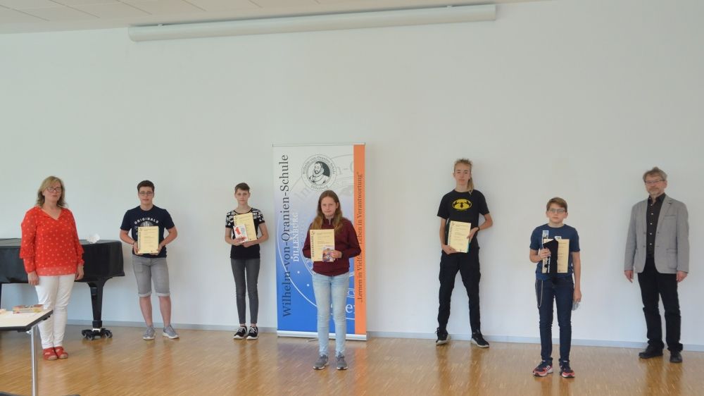 Auch im Schuljahr 20/21 haben zahlreiche Schülerinnen und Schüler der Wilhelm-von-Oranien-Schule (WvO) trotz Corona-Pandemie an den traditionellen Mathematikwettbewerben teilgenommen. Erstmals gingen in diesem Jahr auch Gymnasiasten an den Start beim Jugendwettbewerb Informatik. Die Ergebnisse können sich sehen lassen. In einer kleinen Feierstunde wurden die erfolgreichen Schülerinnen und Schüler nun von der Schulleitung geehrt.