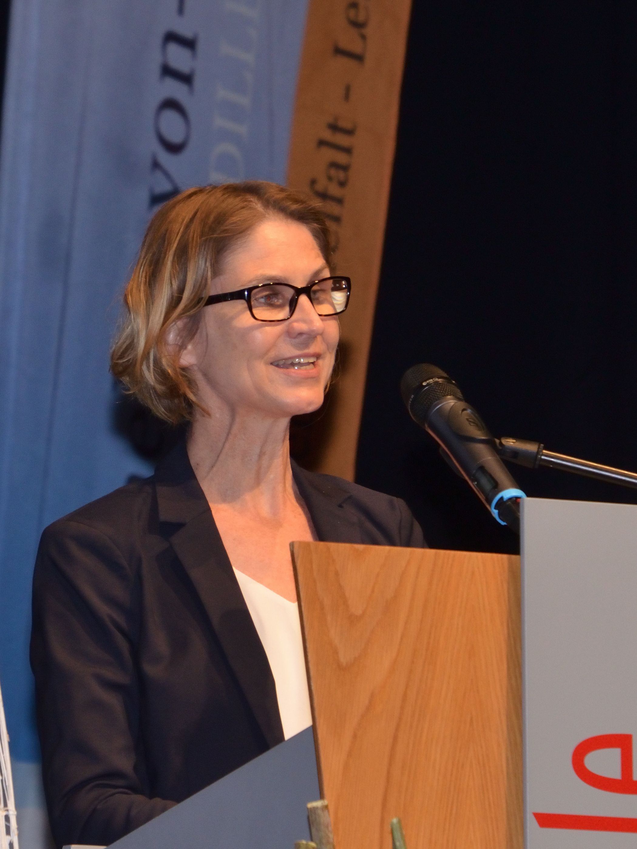 Die Optionen der Zukunft zeigte Oberstudienrätin Julia Schäfer-Schmitt als Vertreterin des Kollegiums mit Hilfe des Kinderbuchklassikers „Hodja im Orient“ von Ole Lund Kirkegaard auf. Der kleine Hodja möchte gern in die weite Welt hinaus, aber fast alle in seinem engstirnigen Dorf tun diesen Wunsch als Unsinn ab. Bis Hodja einen fliegenden Teppich geliehen bekommt, und damit startet er seine ersehnte Reise. „Mit ihren Schulabschlüssen haben Sie auch – metaphorisch – fliegende Teppiche bekommen, mit denen Sie die Welt erkunden können“, so Schäfer-Schmitt. „Jeder Teppich ist ein wenig anders gewebt, aber alle können fliegen. Damit entlassen wir Sie guten Gewissens in die weite Welt!“