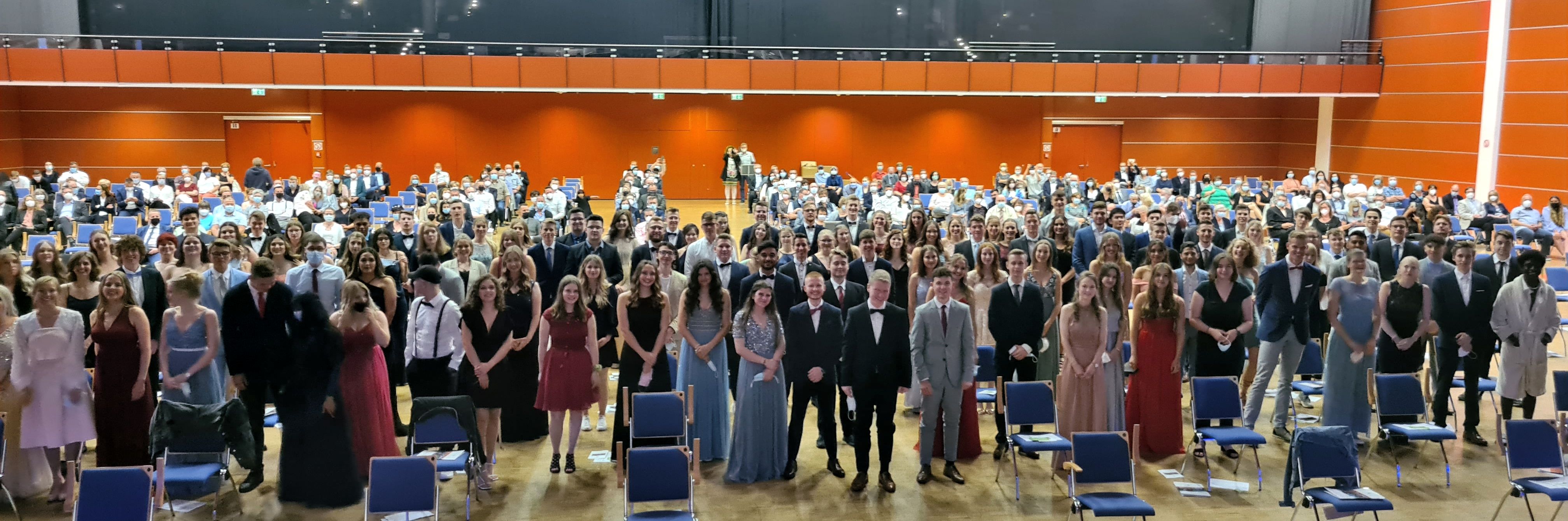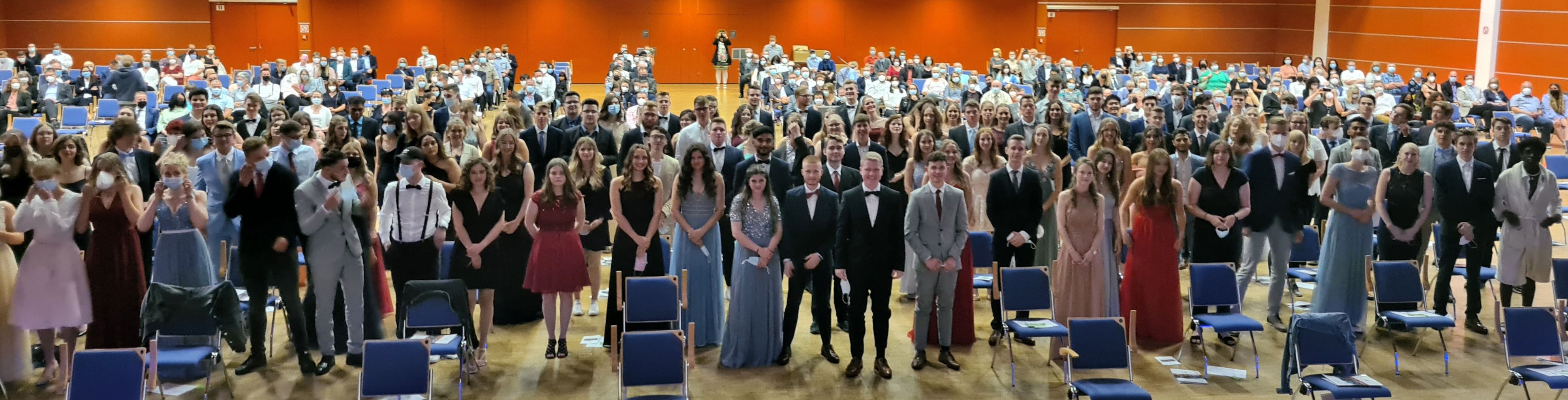 Möglich machten diesen schönen Abschluss nach allen Pandemiestrapazen einerseits die rechtzeitig sinkenden Inzidenzwerte sowie andererseits eine etwas liberalere Coronaschutzverordnung des Landes Nordrhein-Westfalen im Vergleich zur hessischen. Die Siegerlandhalle konnte gemeinsam mit dem Dillenburger Gymnasium ein überzeugendes und verordnungskonformes Hygienekonzept vorlegen: genügend Platz fürs Abstandhalten, feste Sitzplätze mit namentlicher Registrierung, Eintritt nur mit aktuellem Negativ-Testnachweis, Maskenpflicht usw. Niemand hätte vor einigen Wochen damit gerechnet, dass es auf diese Weise möglich sein würde, die Zeugnisfeier gemeinsam zu begehen, hatten doch im letzten Jahr die Eltern nur per Videoübertragung ins heimische Wohnzimmer zuschauen dürfen, wie ihre Sprösslinge das Zeugnis der Allgemeinen Hochschulreife überreicht bekamen. Dieses Jahr nun waren alle dabei, und die Freude darüber war den Gesichtern der Gäste wie auch den Redebeiträgen auf der Bühne deutlich anzumerken.