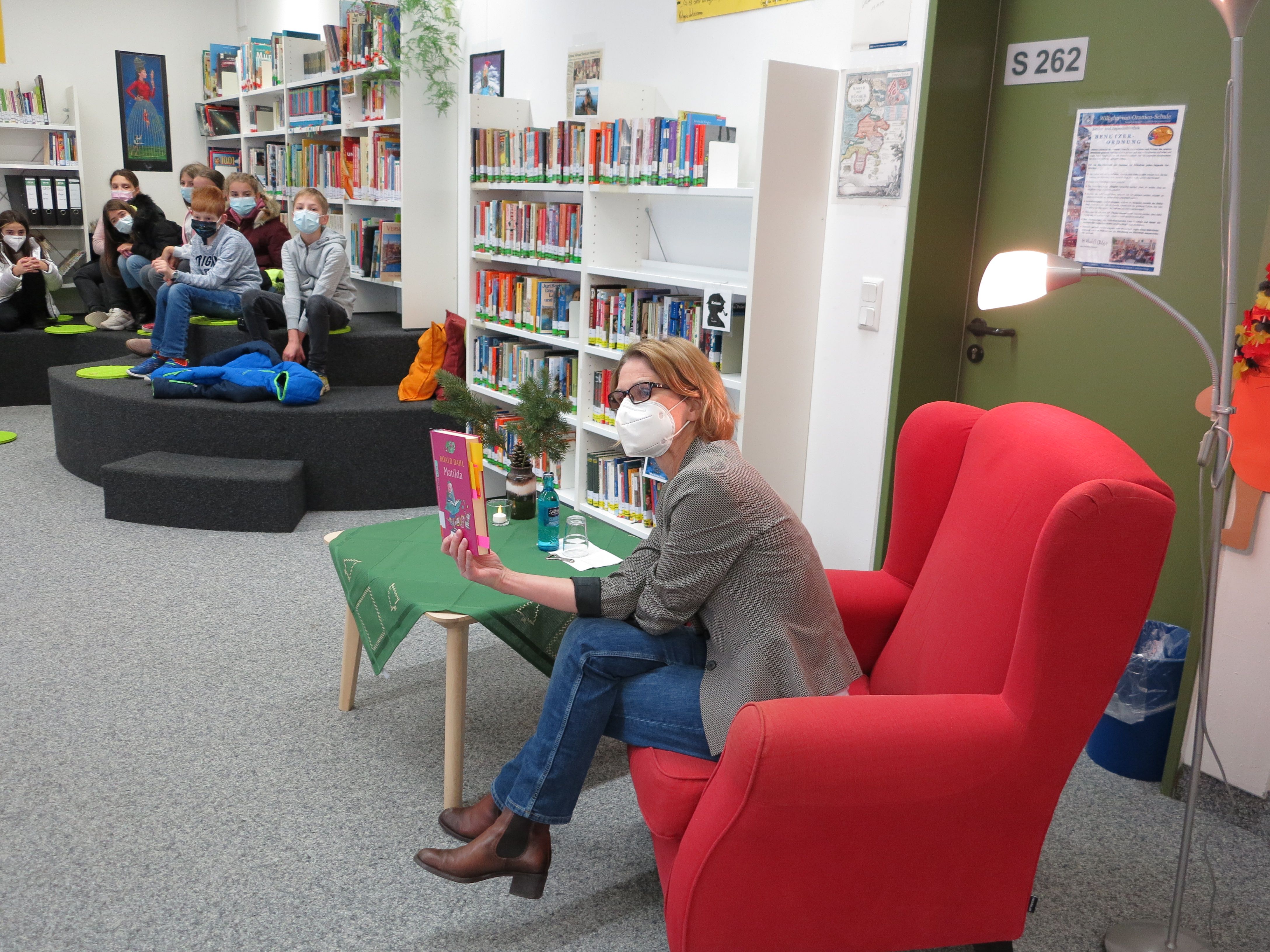 Mit Begeisterung für die Titelfigur „Matilda“, deren Eltern ihre Hochbegabung als lästig empfinden, las Studienleiterin Andrea Stühler ein Kapitel über ihre unfassbaren Kopfrechenkünste vor und kam so schnell mit den jungen Zuhörern ins Gespräch. Roald Dahls Roman ist trotz gelungener Verfilmung ein gern gelesenes Buch in unserer Bibliothek.