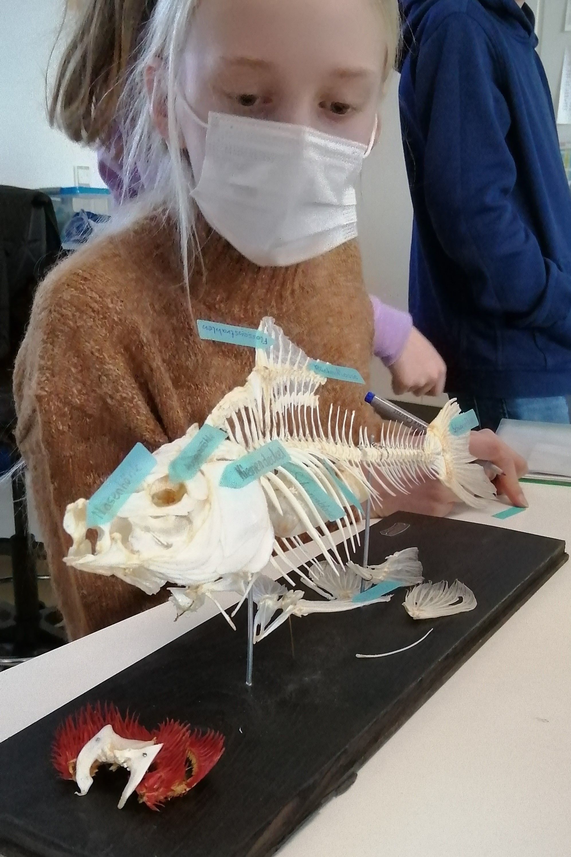 Untersuchung eines Karpfenskeletts: