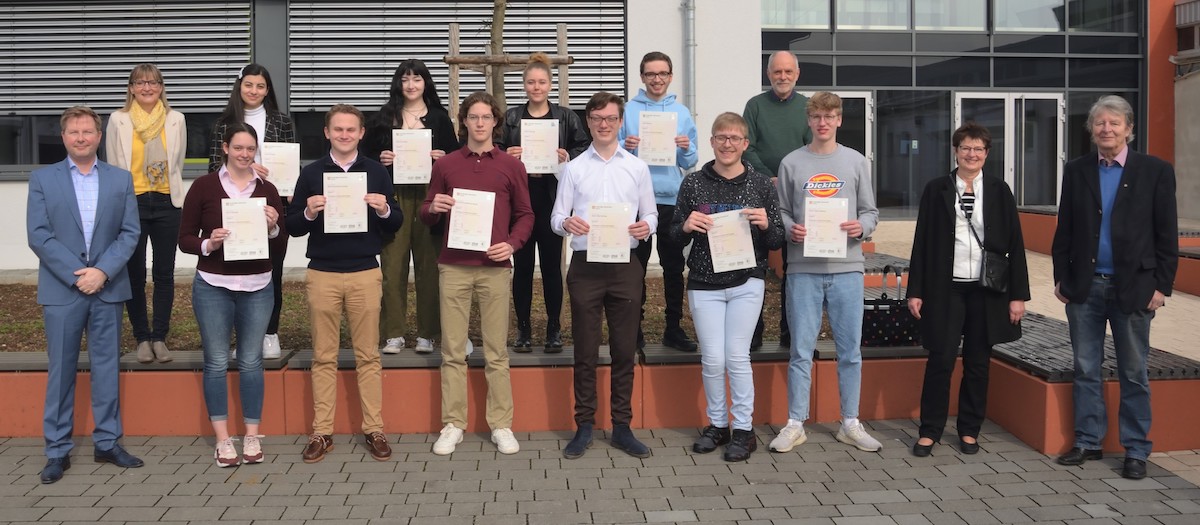 Von Seiten der Schule gratulierten Koordinatorin Heike Bappert, Schulleiter Martin Hinterlang und Fachbereichsleiter Markus Hoffmann zum Prüfungserfolg und verwiesen darauf, dass mit diesem Zertifikat im Portfolio ein lebenslang gültiger Nachweis erworben wurde: