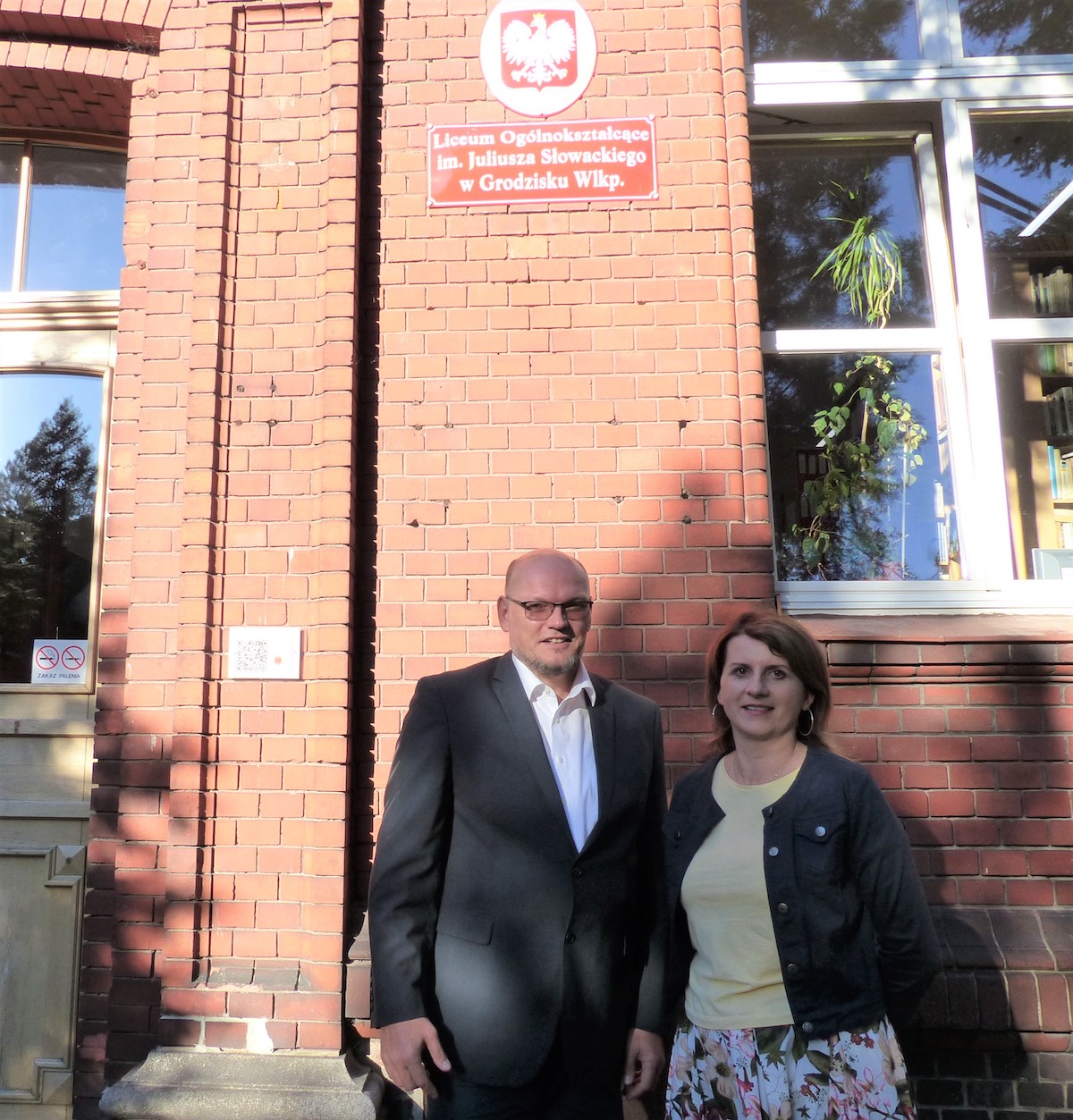 Am Lyzeum-Haupteingang_ v.l.n.r.: Paul Sajon + Vizeleiterin Grażyna Skrzypczak