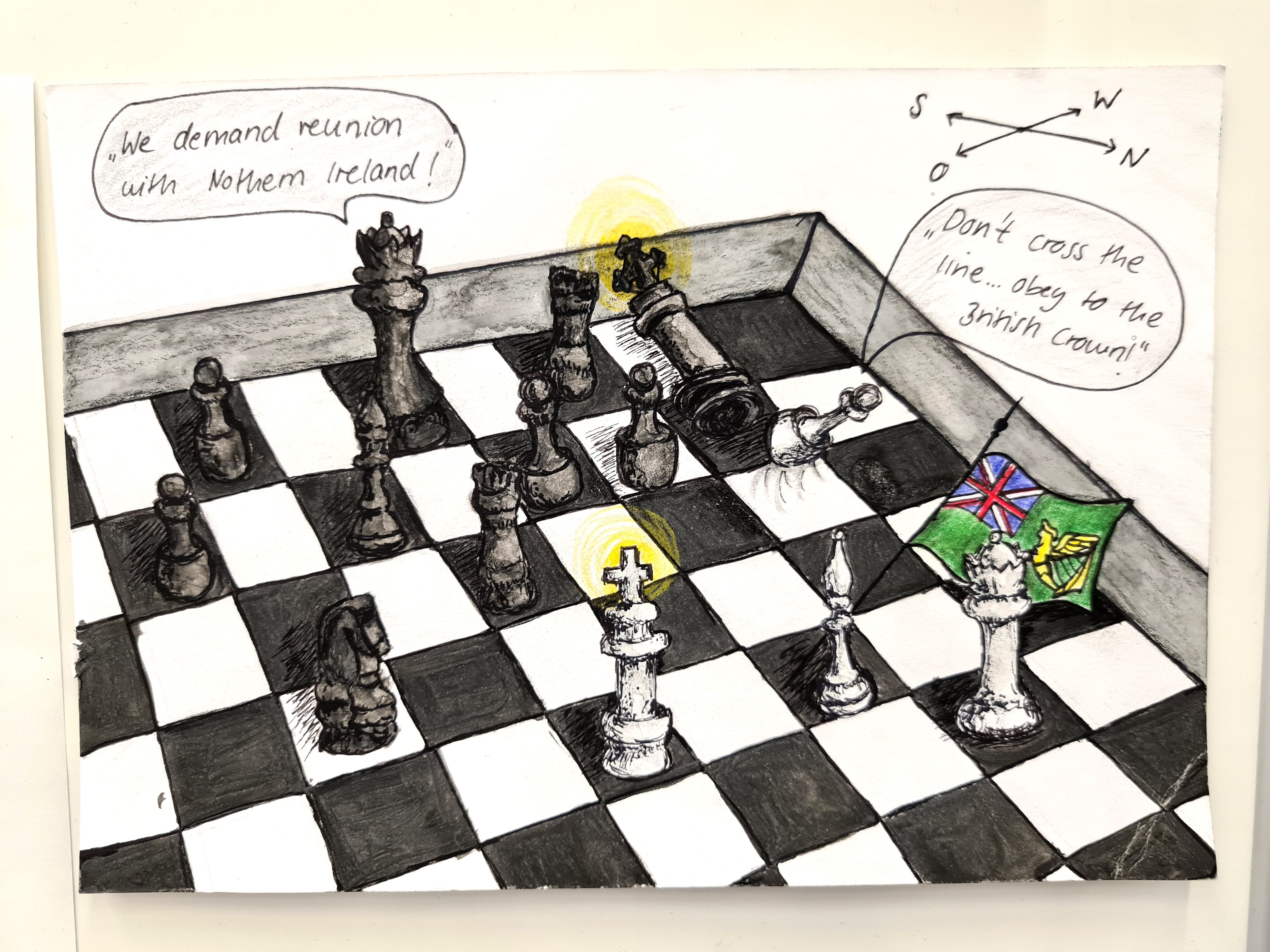Die Schülerinnen und Schüler der Englisch-Leistungskurse von Ulrike Stahl-Matena und Claudia Scharf erstellten im Rahmen einer mehrwöchigen Projektarbeit zum Thema „Ireland“ facettenreiche künstlerische Exponate, die sich mit unterschiedlichen Aspekten dieses Landes auseinandersetzen.