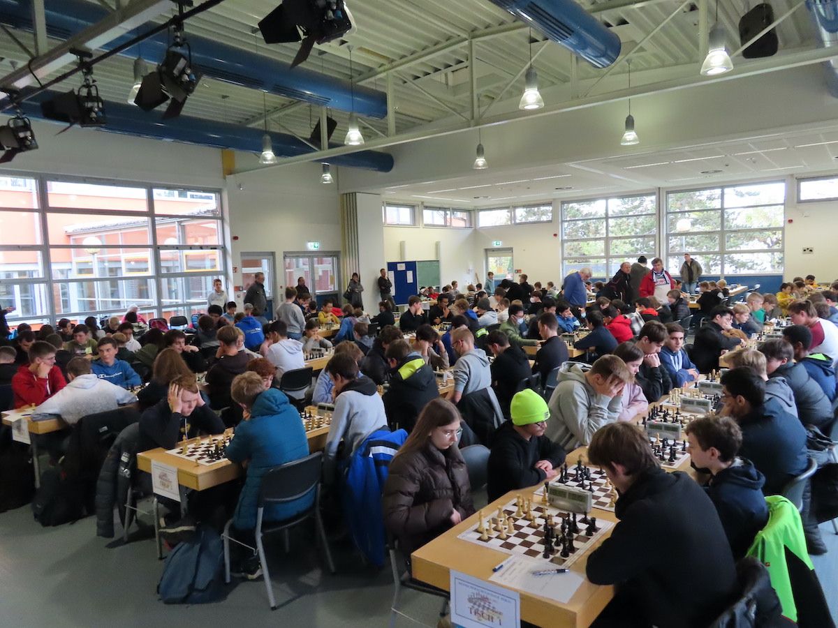 Blick über einen Teil des Turnierareals in der Aula der KSS Karben.