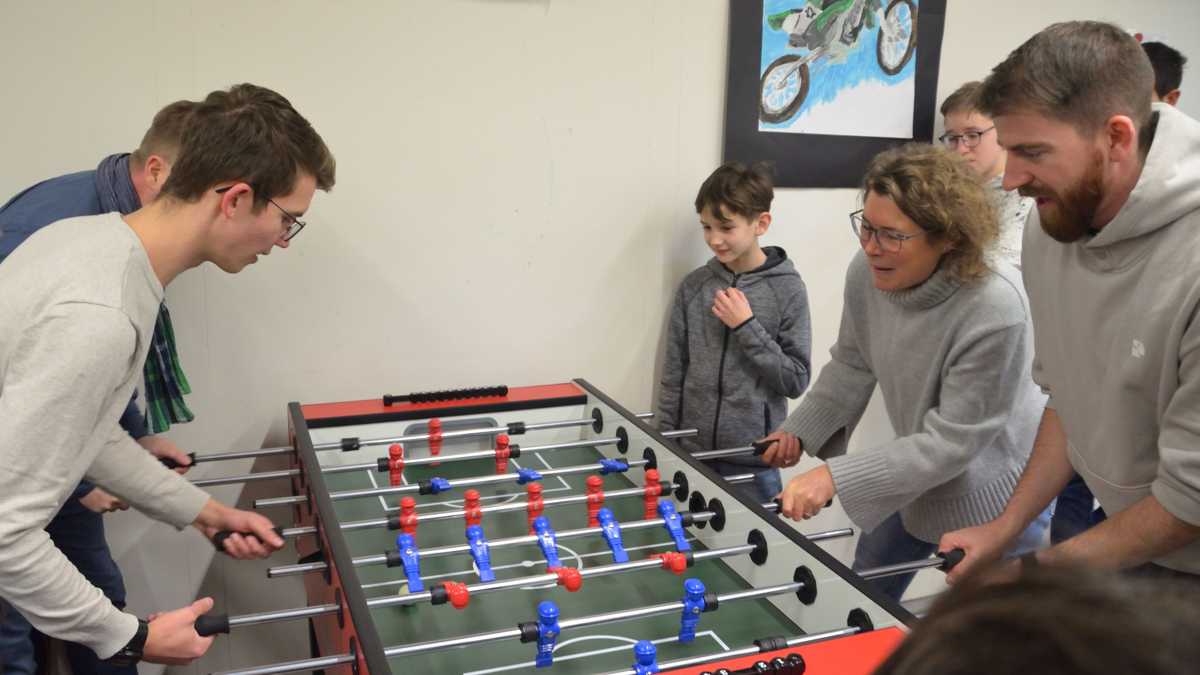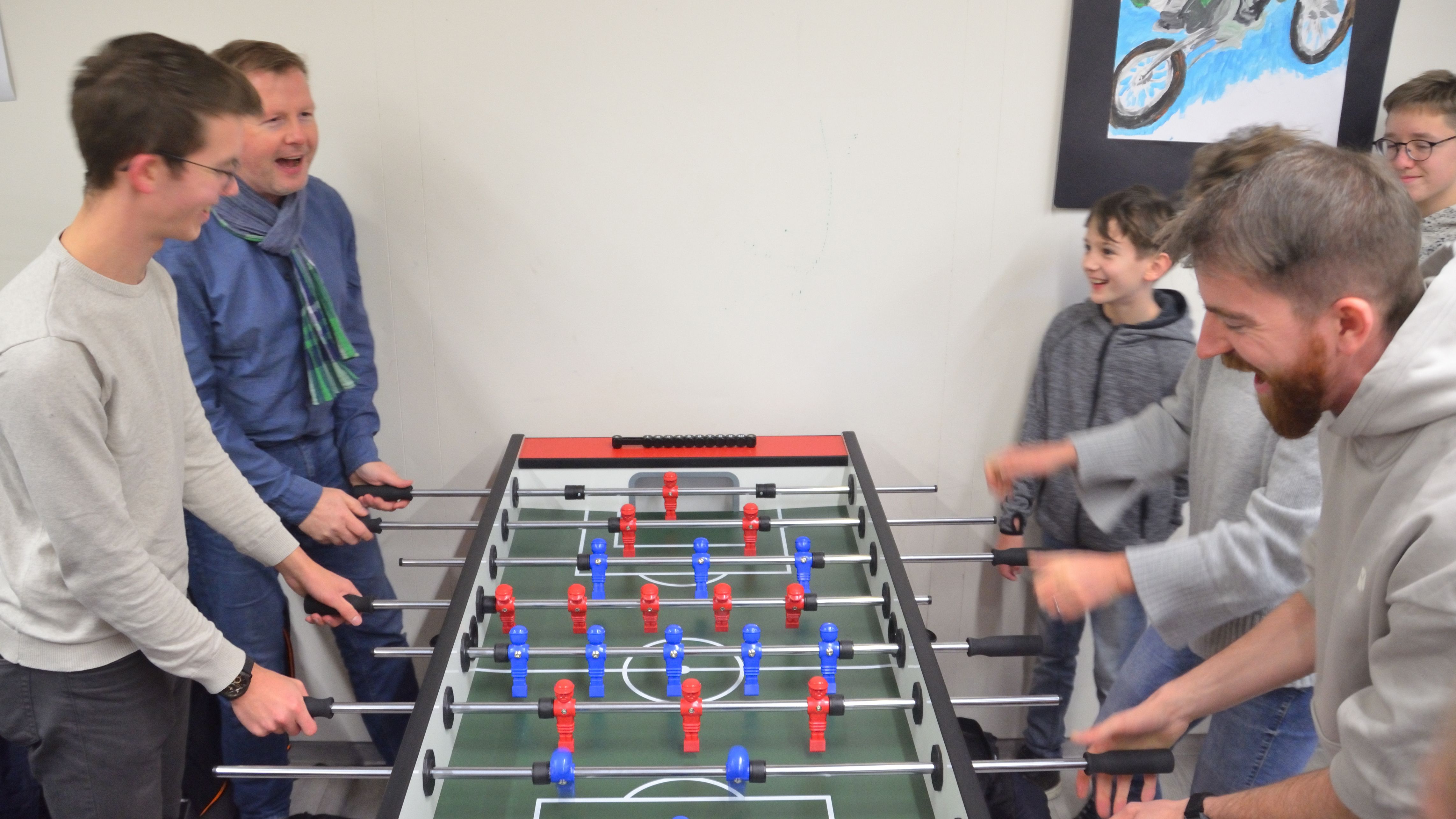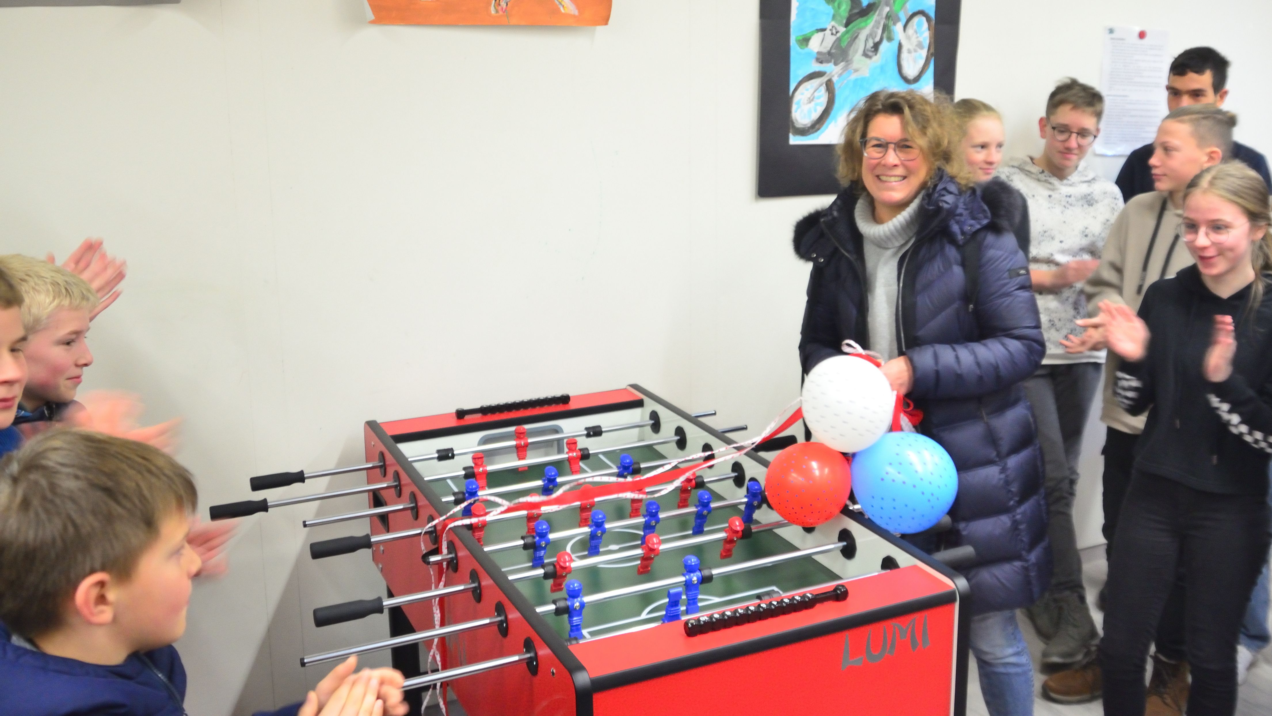 Außerdem wurde ein Weihnachtsgeschenk des Schulelternbeirates überreicht; aus Mitteln der Elternspende stiftete dieser der Schülerschaft einen neuen Tischkicker, welcher am „Weihnachtszauber“ durch die Vorsitzende des Schulelternbeirats Sandra Freischlad feierlich eingeweiht und danach durch ein spannendes Spiel zwischen dem Schulleiter, Frau Freischlad, dem Sozialpädagogen und dem Schulsprecher eröffnet wurde.