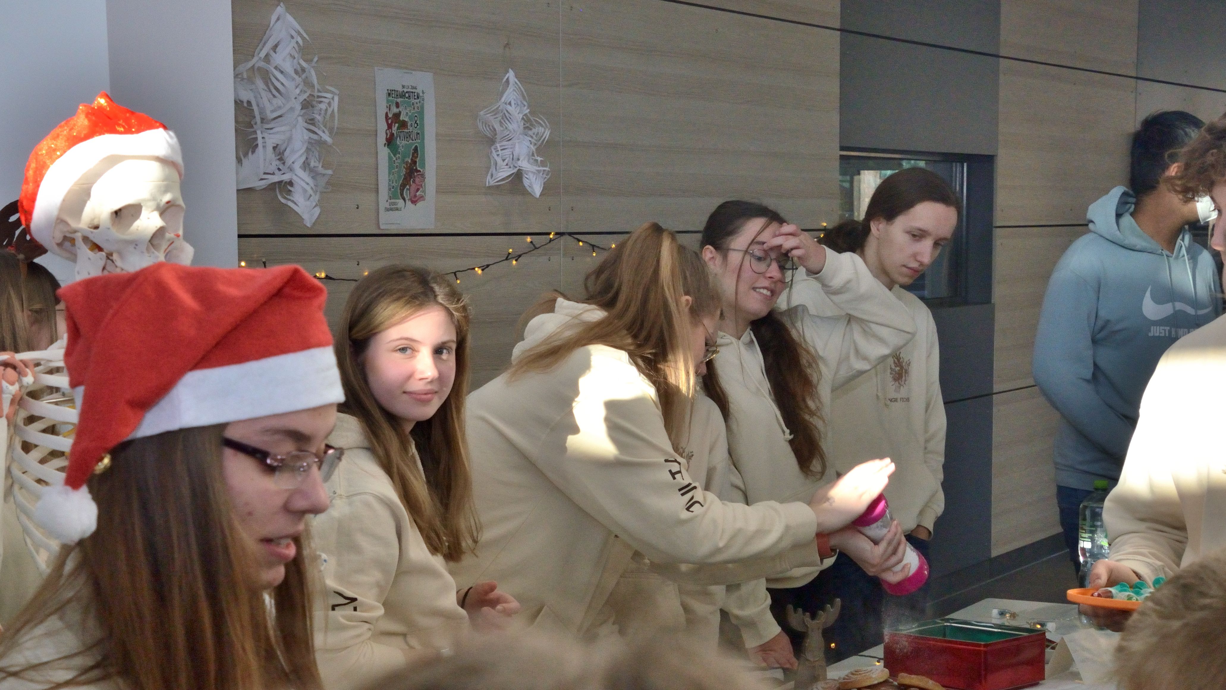 Hierfür wurde die ganze Schule in einen Weihnachtsmarkt verwandelt, mit verschiedenen Ständen und Angeboten, die hauptsächlich von den beiden ältesten Jahrgängen (Q1 und Q3) für die gesamte Schülerschaft angeboten wurden.