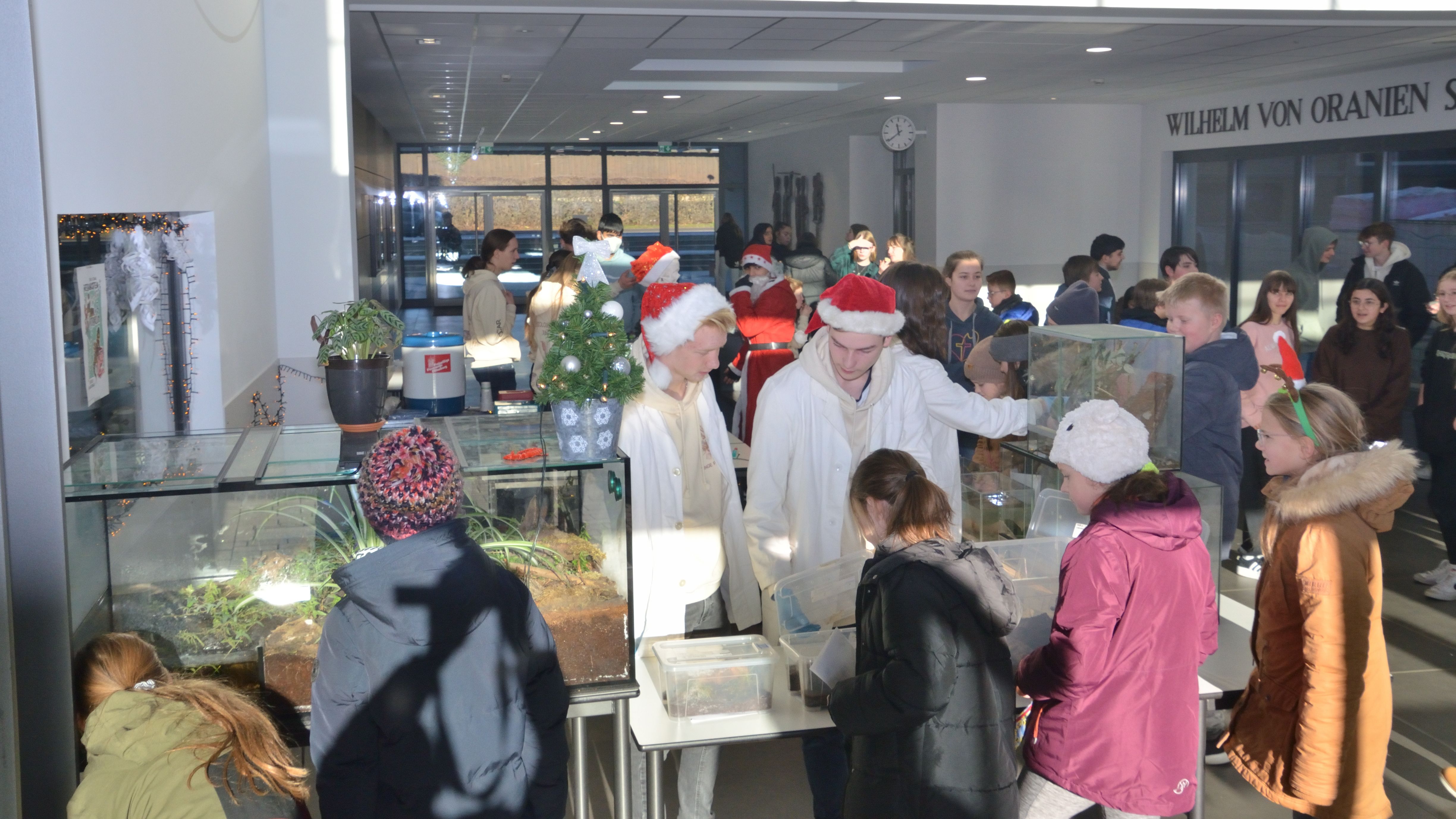 Dank eines großen Angebots an selbstgemachten Geschenkideen, Leckereien und Mitmachangeboten herrschte am Freitag, dem 16. Dezember 2022, eine weihnachtliche Stimmung an der Wilhelm-von-Oranien-Schule in Dillenburg. Jedes Jahr organisiert die Schülervertretung den Weihnachtsbasar, bei dem ein Teil des Gesamterlöses an gemeinnützige Organisationen gespendet wird. Da allerdings der Weihnachtsbasar aufgrund der Pandemie in den letzten beiden Jahren nicht im klassischen Sinn stattfinden konnte, bot die Schülervertretung in diesem Jahr alternativ den „Weihnachtszauber“ an, um die Gemeinschaft an der Schule in weihnachtlichem Ambiente zu stärken.