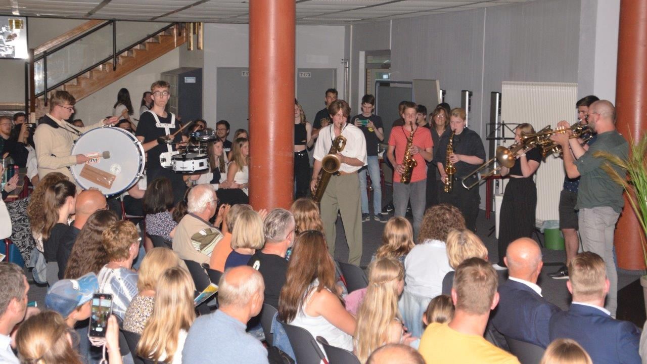 Schulleiter Martin Hinterlang dankte anschließend allen Beteiligten und war sichtlich berührt von dem gelungenen Neustart der Musikgruppen nach der Pandemie. Unter den Ehrengästen befand sich neben Bürgermeister Michael Lotz auch der Hauptamtliche Beigeordnete des Lahn-Dill-Kreises, Stephan Aurand. Er beschrieb den Konzertabend anschließend als „sensationell“; es sei mehr als deutlich geworden, „was Ihre Schülerinnen und Schüler leisten können“.