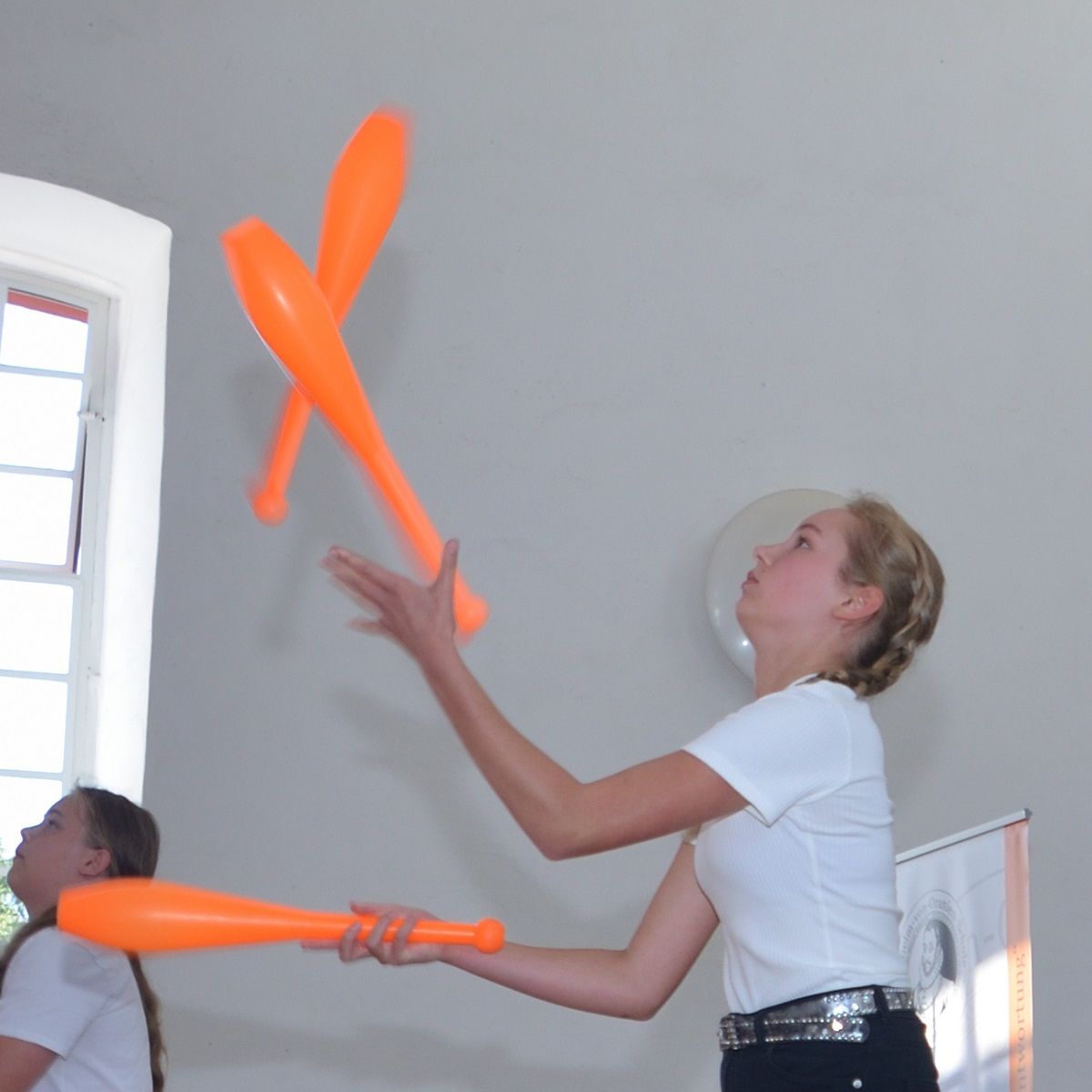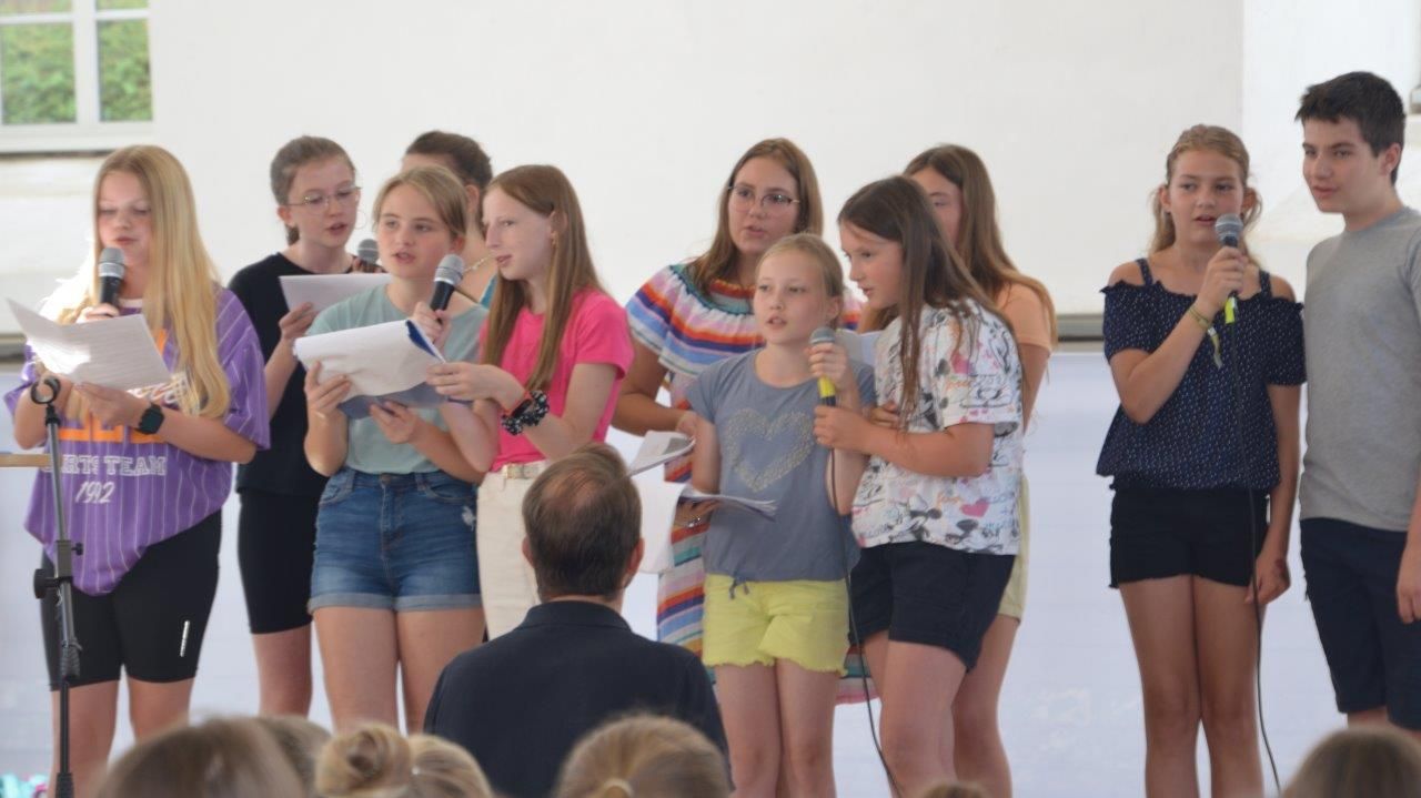 An einem strahlenden Sonnentag betraten die neuen Gymnasiasten mit ihren Eltern über den extra ausgerollten roten Teppich das angenehm kühle Reithaus und wurden dort vom Unterstufenchor (Leitung: Ulrich Kögel) mit „Applaus, Applaus“ von den „Sportfreunden Stiller“ sowie einer Darbietung der Jonglage-AG (Leitung Dr. Sebastian Jakobi) in Empfang genommen.