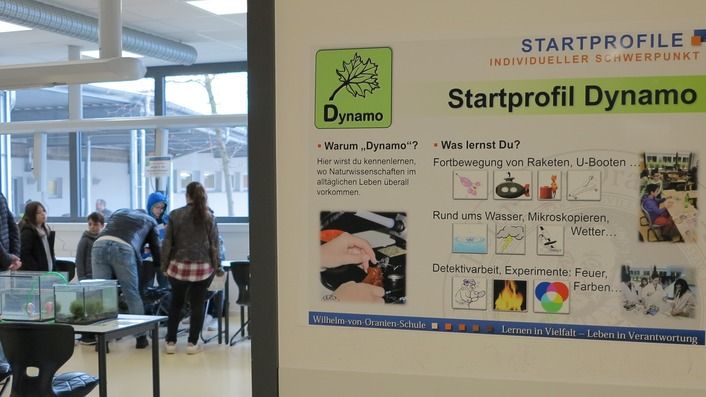 Abgesehen von den Startprofilen konnten die Gäste in verschiedene Hauptfächer (Latein, Französisch, Spanisch, Mathematik) hineinschnuppern sowie sportliche Highlights wie die „Bikeschool“ oder die Kooperation mit dem Landgestüt in Augenschein nehmen. Bei den Eltern stießen insbesondere Unterstützungsangebote wie das „Backstage“ mit Sozialpädagoge Dominik Schnurr und Beratungslehrerin Jördis Herr, die Schulkrankenschwester Maren Eberbach oder die Anti-Cybermobbing-Beauftragte Ines Liebnitz auf Interesse.