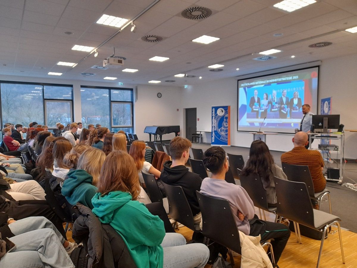 Unter dem Aspekt der veränderten sicherheitspolitischen Lage speziell seit dem Angriffskrieg auf die Ukraine betrachtete der vortragende Gast aktuelle Problemfelder und Herausforderungen, die sich für die Bundeswehr als Parlamentsarmee und auch für die deutsche Außen- und Sicherheitspolitik ergeben. Detailliert berichtete Hauptmann Schäbler kompetent in einer angenehmen Gesprächsatmosphäre von seinen Auslandseinsätzen in Afghanistan und Mali. Somit konnten die Schüler persönliche Eindrücke aus dem Alltag eines Bundeswehrsoldaten gewinnen, aber auch die Komplexität von Auslandseinsätzen erfassen.