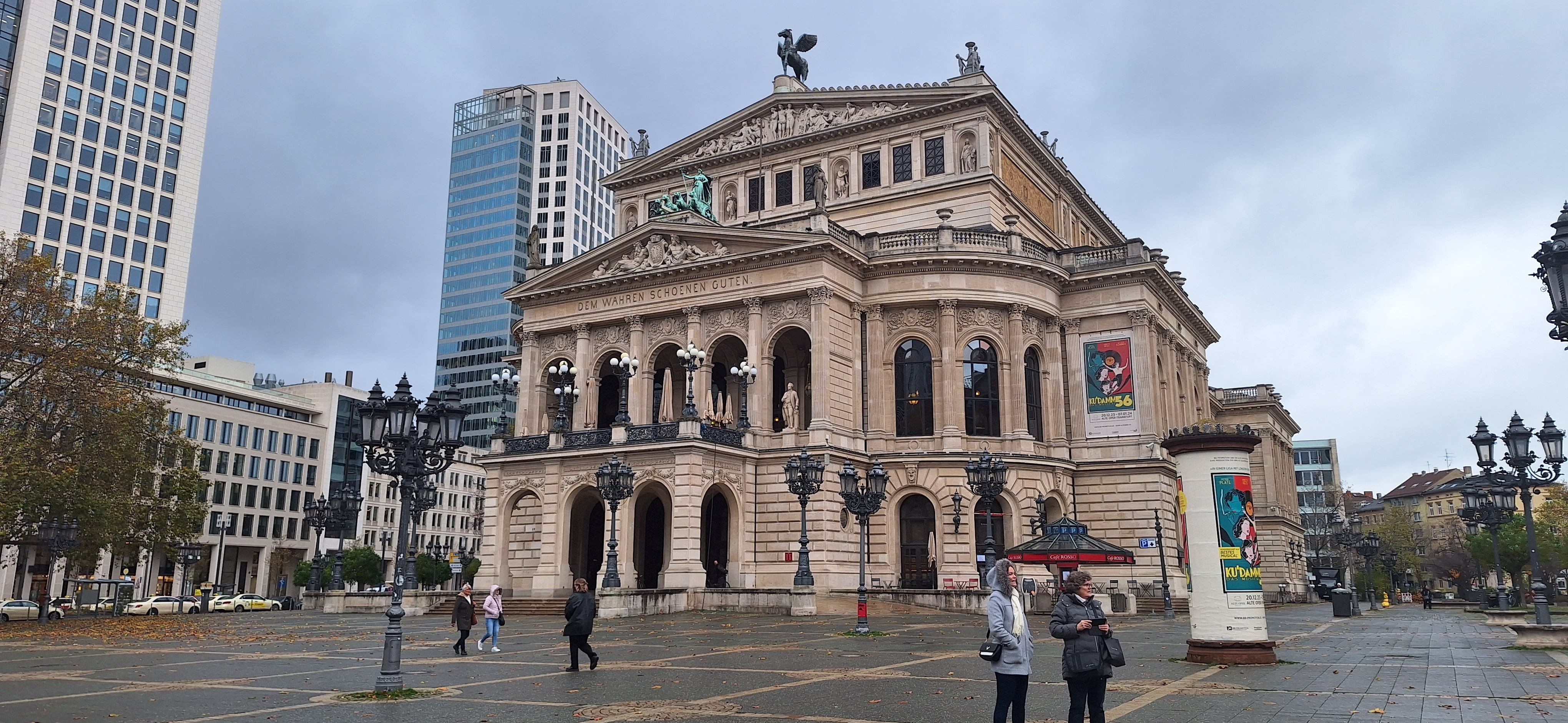 An 13 Stationen wurden mit kleinen Impulsvorträgen die jeweiligen Gebäude mit ihrer Entstehungszeit und ihren Stilmerkmalen bzw. Besonderheiten präsentiert. Zu den Highlights der Frankfurter Architektur gehören z.B. der Kaiserdom St. Bartholomäus, der im Laufe der Zeit immer wieder erweitert und neu ausgebaut wurde und in dem die Kaiser gekrönt wurden, der Hauptbahnhof, der sich bei der Einweihung 1888 noch außerhalb der Stadt befand, die Kaiserstraße mit ihren prachtvollen Gebäuden aus der Gründerzeit, die Alte Oper, die Paulskirche, in der 1848 die erste Nationalversammlung tagte, die immer wieder beeindruckende Architektur des Einkaufszentrums Myzeil, der Commerzbank-Tower mit seiner Grünanlage in den mittleren Stockwerken, das Museum für Moderne Kunst (MMK), das auch „Tortenstück“ genannt wird, und natürlich die neue Altstadt, die erst 2018 eröffnet wurde und neben reinen Neubauten auch komplette Rekonstruktionen vorzuweisen hat, die die Gebäude des alten Frankfurter Stadtkerns so zeigen, wie sie bis 1944 dort gestanden haben.