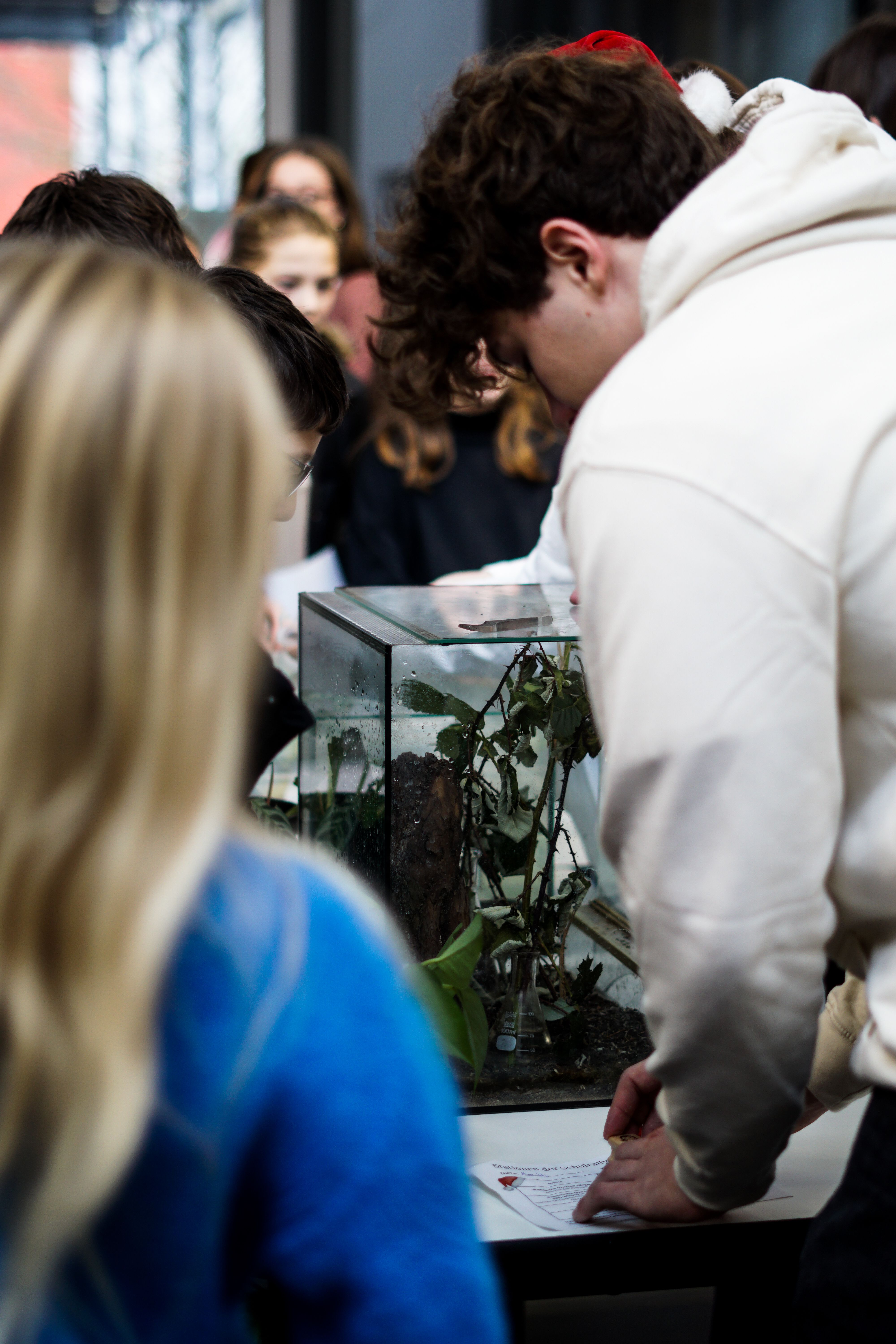 Der folgende Zeitraum bis 13:00 Uhr füllte sich mit Gelächter, wartenden und anschließend schmatzenden Gesichtern, Liedern der Schulband, dem Klimpern von umgefallenen Dosen beim Dosenwerfen sowie Staunen über das ausgestellte Vivarium der Schule. Hier mussten die Schüler und Schülerinnen auch vorbeischauen, wenn sie an der veranstalteten Schulrallye teilnehmen wollten. Vier Stempel galt es an vier Stationen zu erjagen, um sich abschließend eine kleine Belohnung abholen zu können.