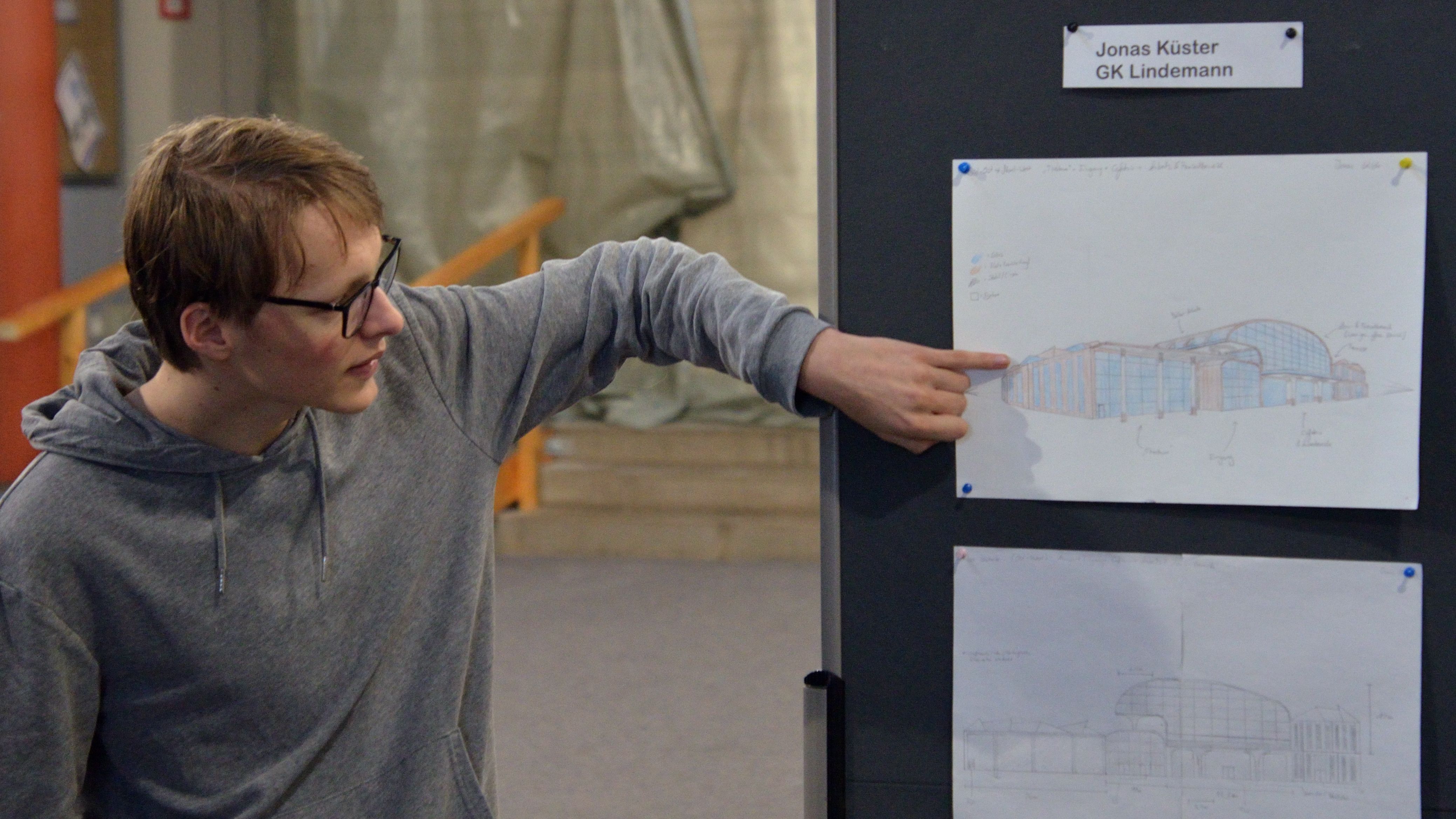 Kunst-Kurse präsentieren der Schulleitung ihre architektonischen Ideen für die Schule von morgen