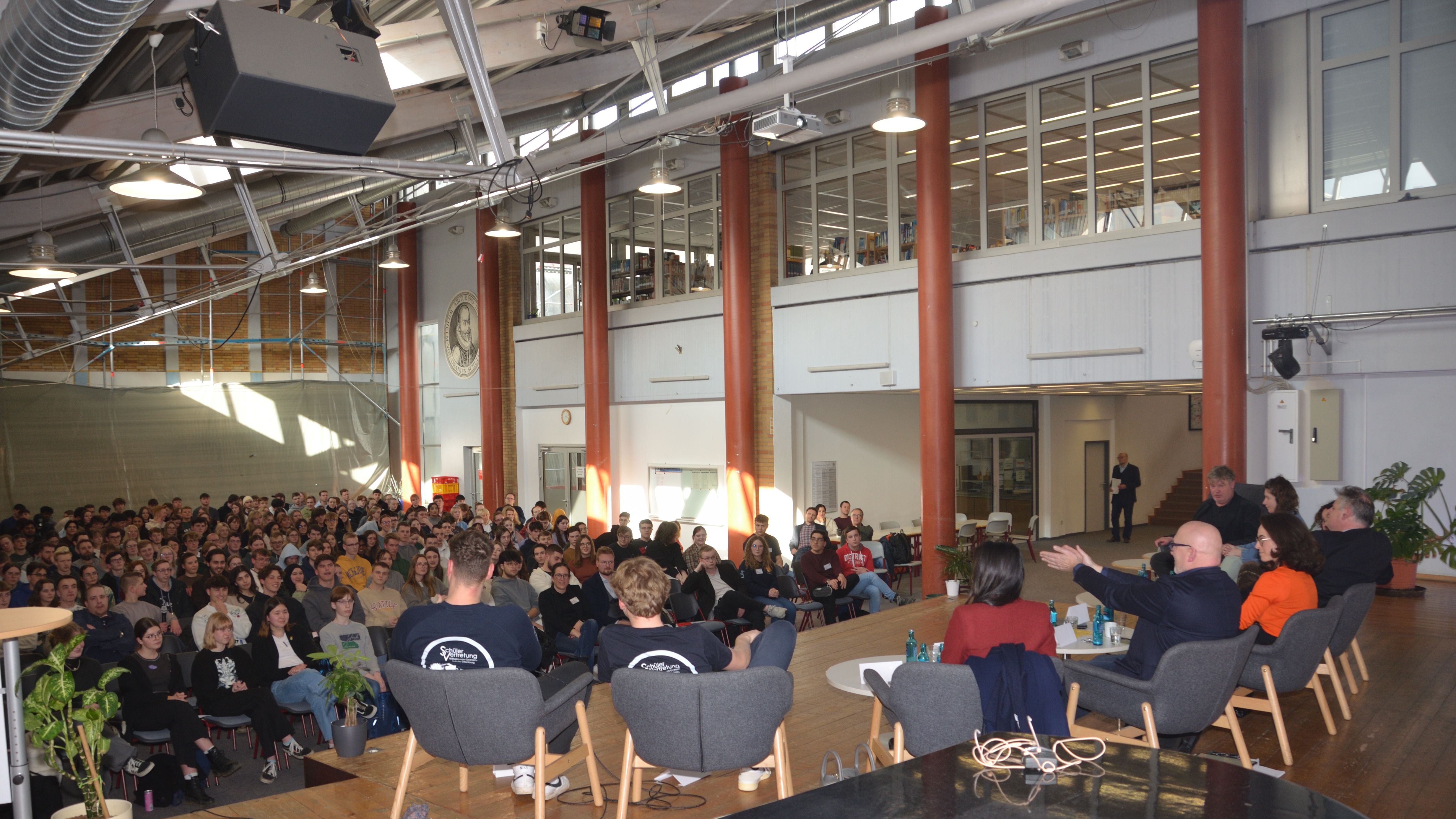 Am Mittwoch, dem 6. März, erfüllte eine aufgeregte Atmosphäre die Flure der Wilhelm-von-Oranien-Schule (WvO), als die Schülerinnen und Schüler der Einführungs- und Qualifikationsphase gespannt darauf warteten, was sie bei der bevorstehenden Podiumsdiskussion erwartet. Pünktlich zur achten Stunde versammelten sie sich erwartungsvoll im Forum, um die Politiker zu begrüßen.
