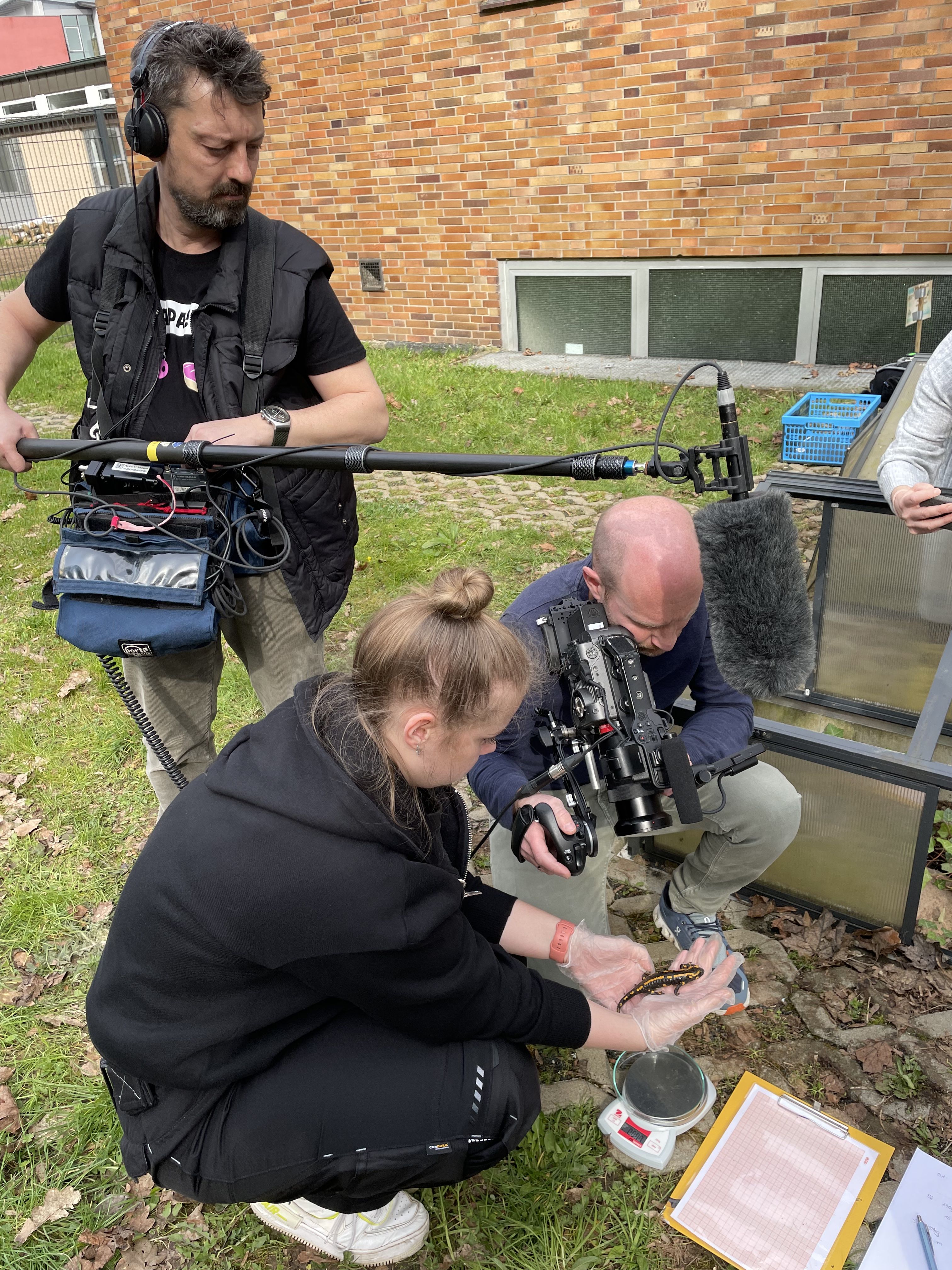 Im Rahmen der Dreharbeiten konnten Schülerinnen und Schüler aus dem Wahlunterricht Naturschutzprojekte und dem Leistungskurs Biologie voller Stolz vor Kamera und Mikrofon von ihrem bisherigen Beitrag zum Projekt und Erhalt der Feuersalamander berichten und eindrucksvoll ihre Tätigkeiten schildern.