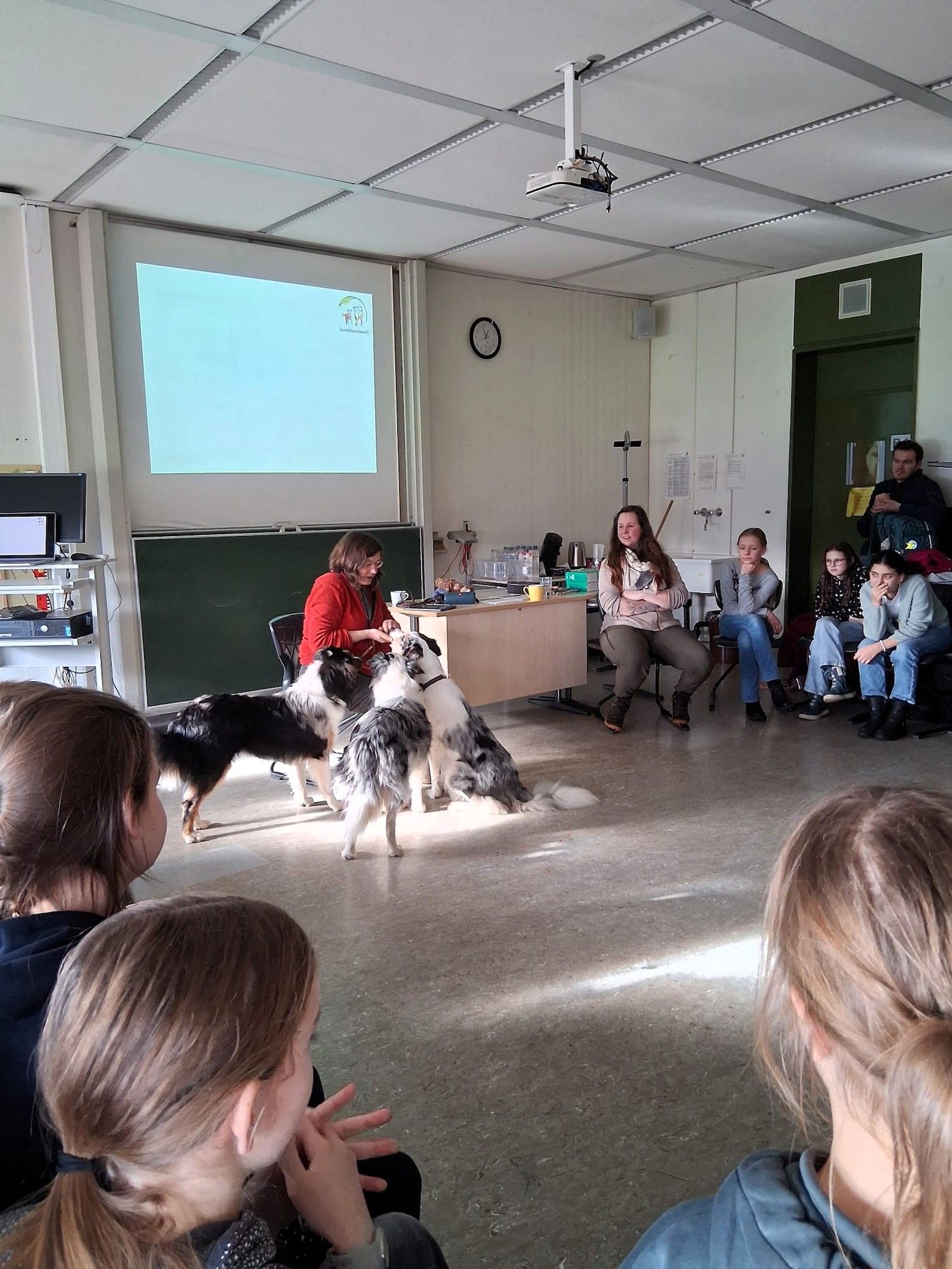 Auch in diesem Jahr war die Veranstaltung wieder eine wertvolle Ergänzung zum Biologieunterricht. Die Schülerinnen und Schüler waren allesamt sehr aufmerksam, stellten wissbegierig Fragen oder berichteten selbst von ihren Erfahrungen mit Hunden. Und natürlich kam das Kuscheln mit den Vierbeinern auch nicht zu kurz. Alles natürlich auf freiwilliger Basis und ohne Zwang.