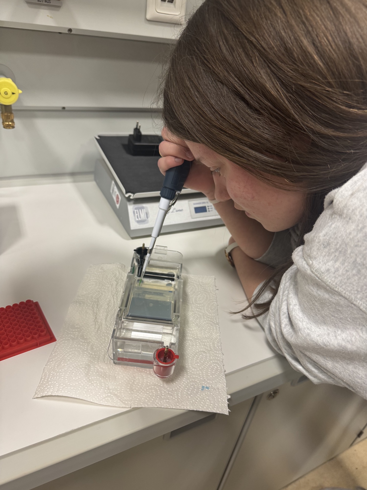 Wurde die Probe ausreichend im Thermocycler kopiert, konnte sie mittels Gelelektrophorese sichtbar gemacht und ausgewertet werden. Auch hier war beim Herstellen und dem anschließenden Beladen der Gele äußerstes Fingerspitzengefühl gefragt.