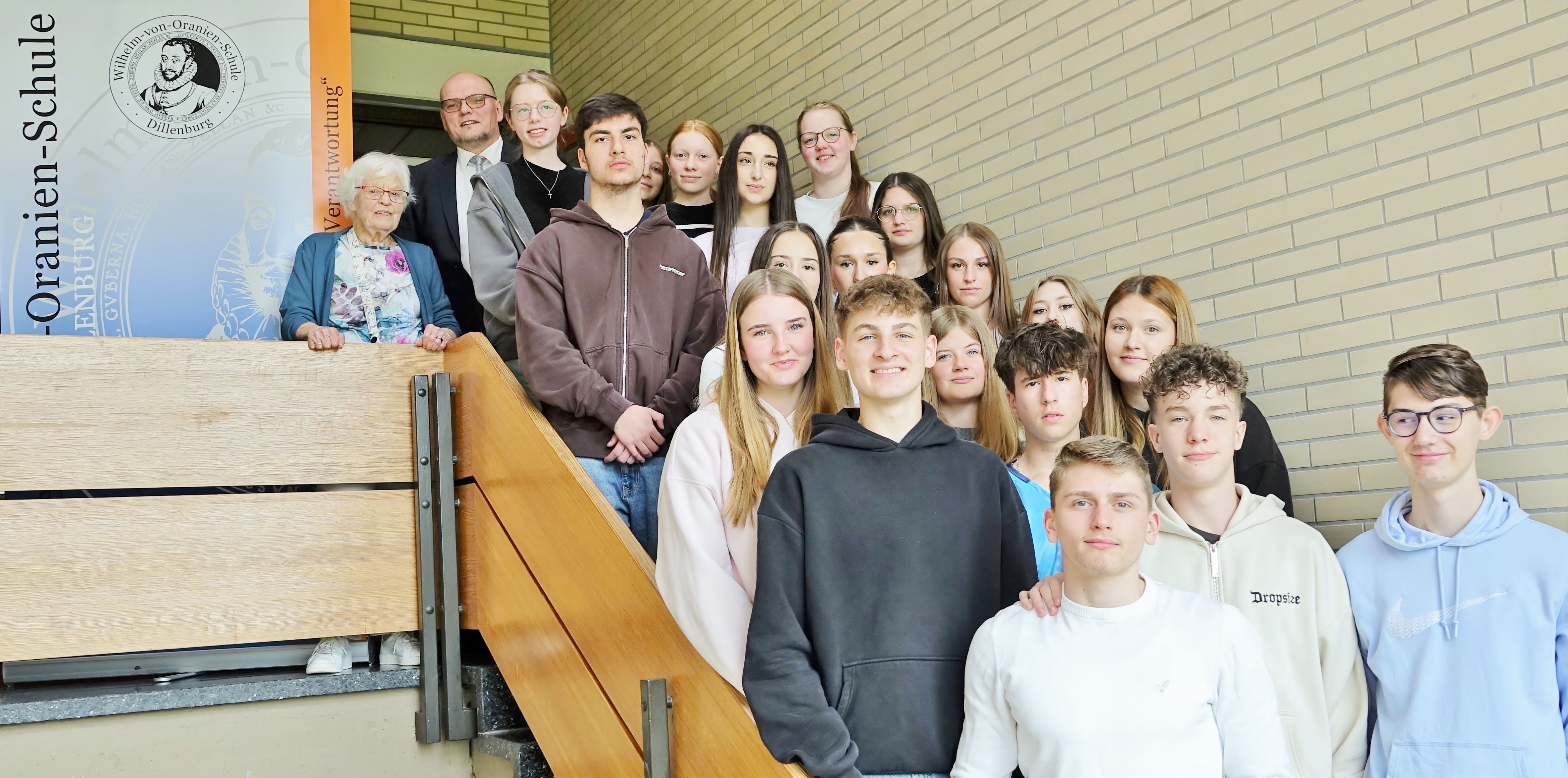 Anfang Juni besuchte Eva Schupp aus Haigerseelbach (geb. 1931) die Klasse 10E der Wilhelm-von-Oranien-Schule (WvO) im Rahmen des Geschichtsprojektes „Unsere Zeitzeugen – unsere Geschichte“ unter der Betreuung des Fachlehrers Paul Sajon. Die Zeitzeugin beantwortete Fragen zur deutschen Geschichte von 1933 bis 1990 aus lokaler Perspektive.