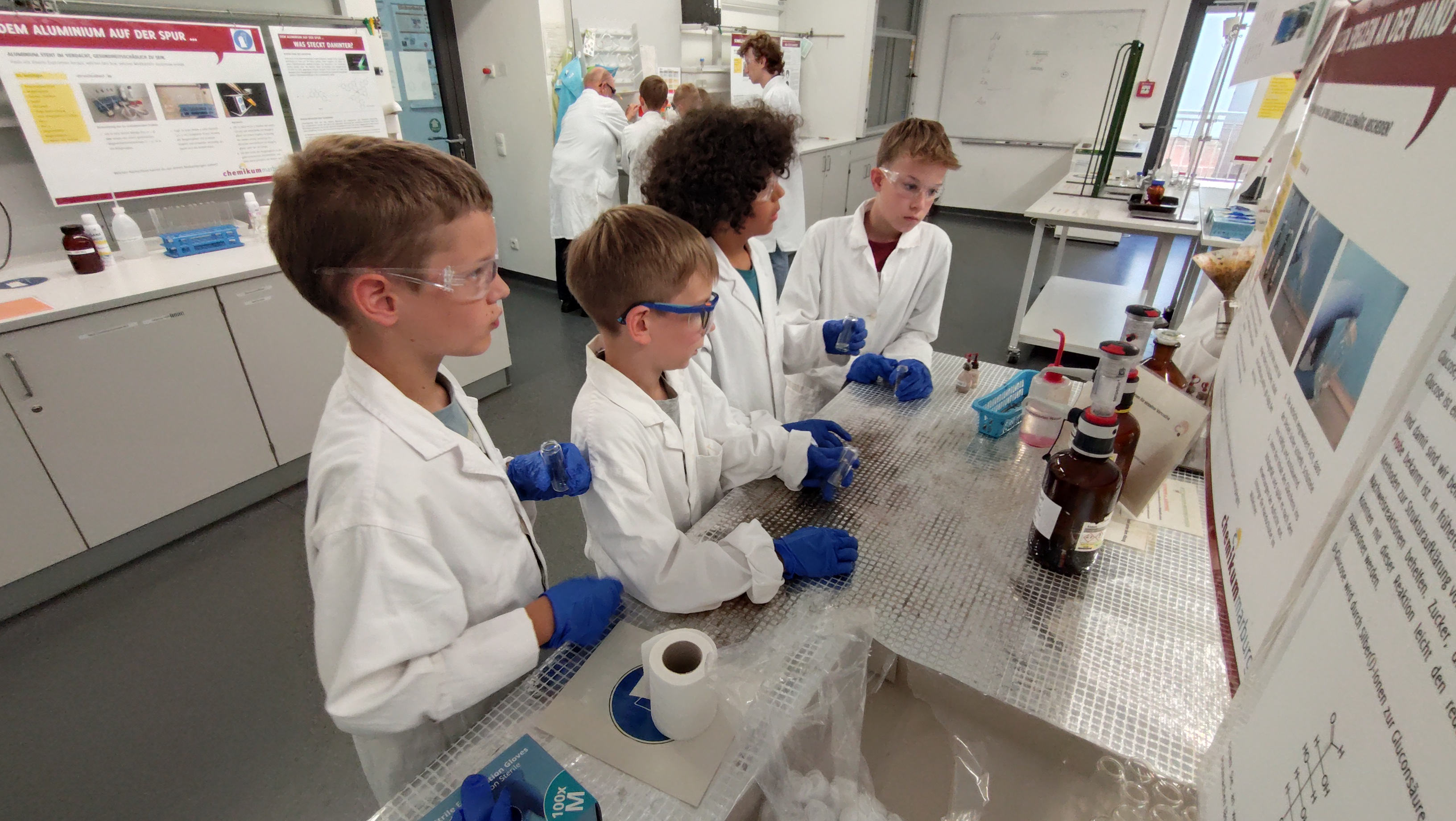 Alle Experimente waren eng mit dem Alltag verbunden und boten viel Raum für Entdeckungslust. Mithilfe didaktisch aufbereiteter Infotafeln erhielten die Schülerinnen und Schüler wichtige Hintergrundinformationen sowie eine klare Anleitung zum Ablauf der Experimente. Sollte einmal ein Reagenzglas fehlen oder eine Frage aufkommen, stand das freundliche und kompetente Betreuungspersonal des Chemikums stets mit Rat und Tat zur Seite.