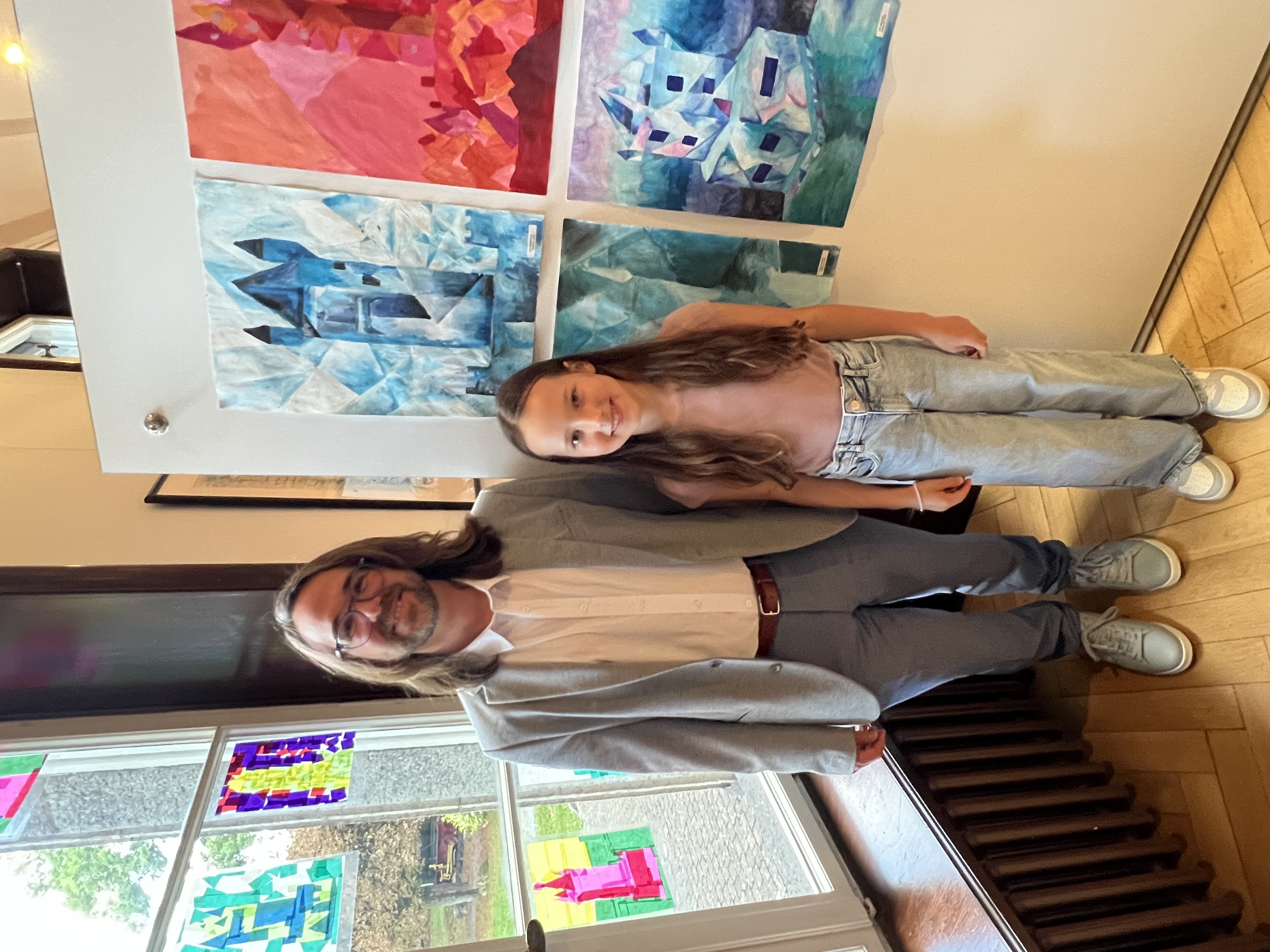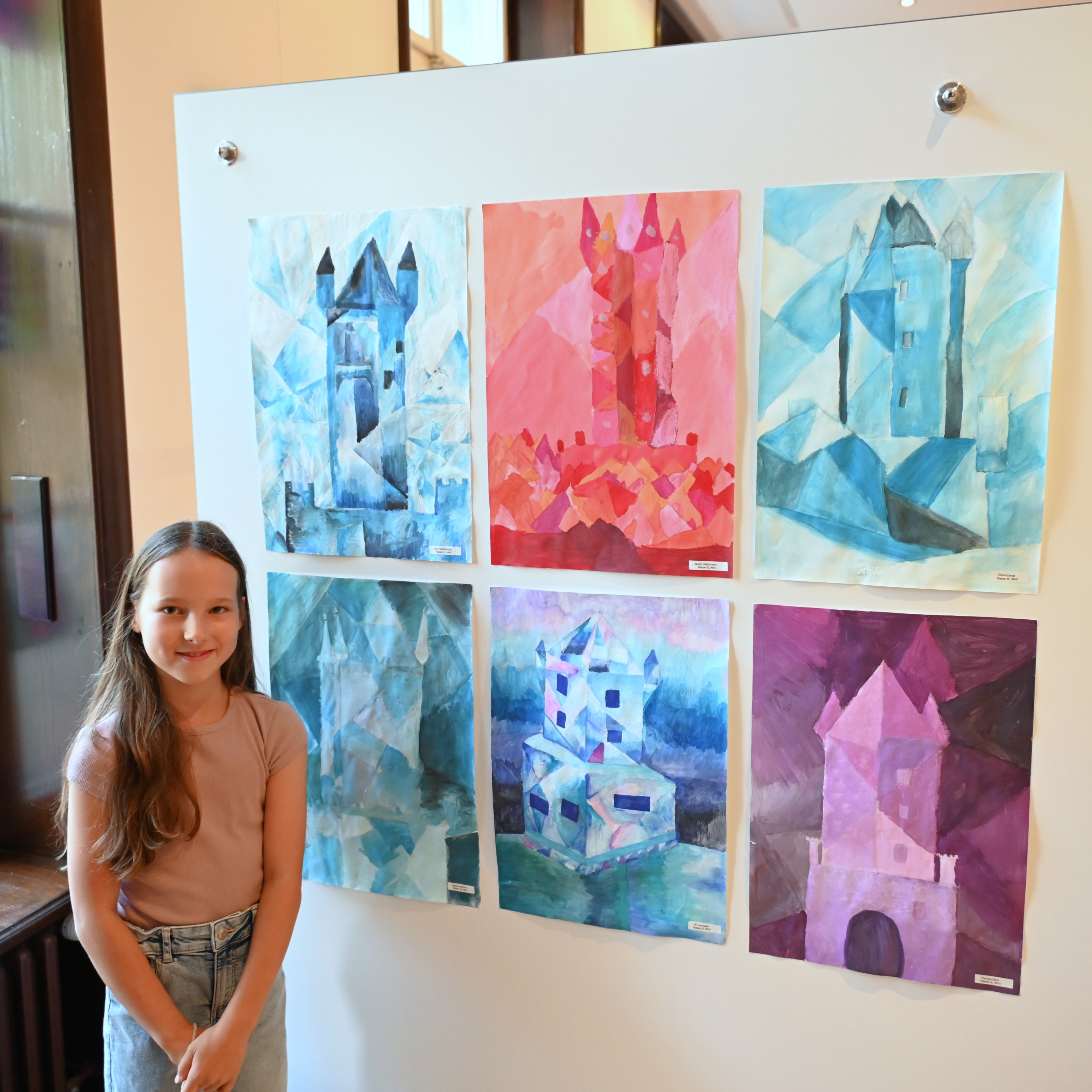 Die Klasse 5E des vergangenen Schuljahres beteiligte sich an der Kubismus-Ausstellung unter Anleitung von Kunstlehrer Sascha Schulze. Lina Hohenberger durfte gemeinsam mit ihrer Familie und ihrem Lehrer bei der Vernissage ihre Klasse repräsentieren.