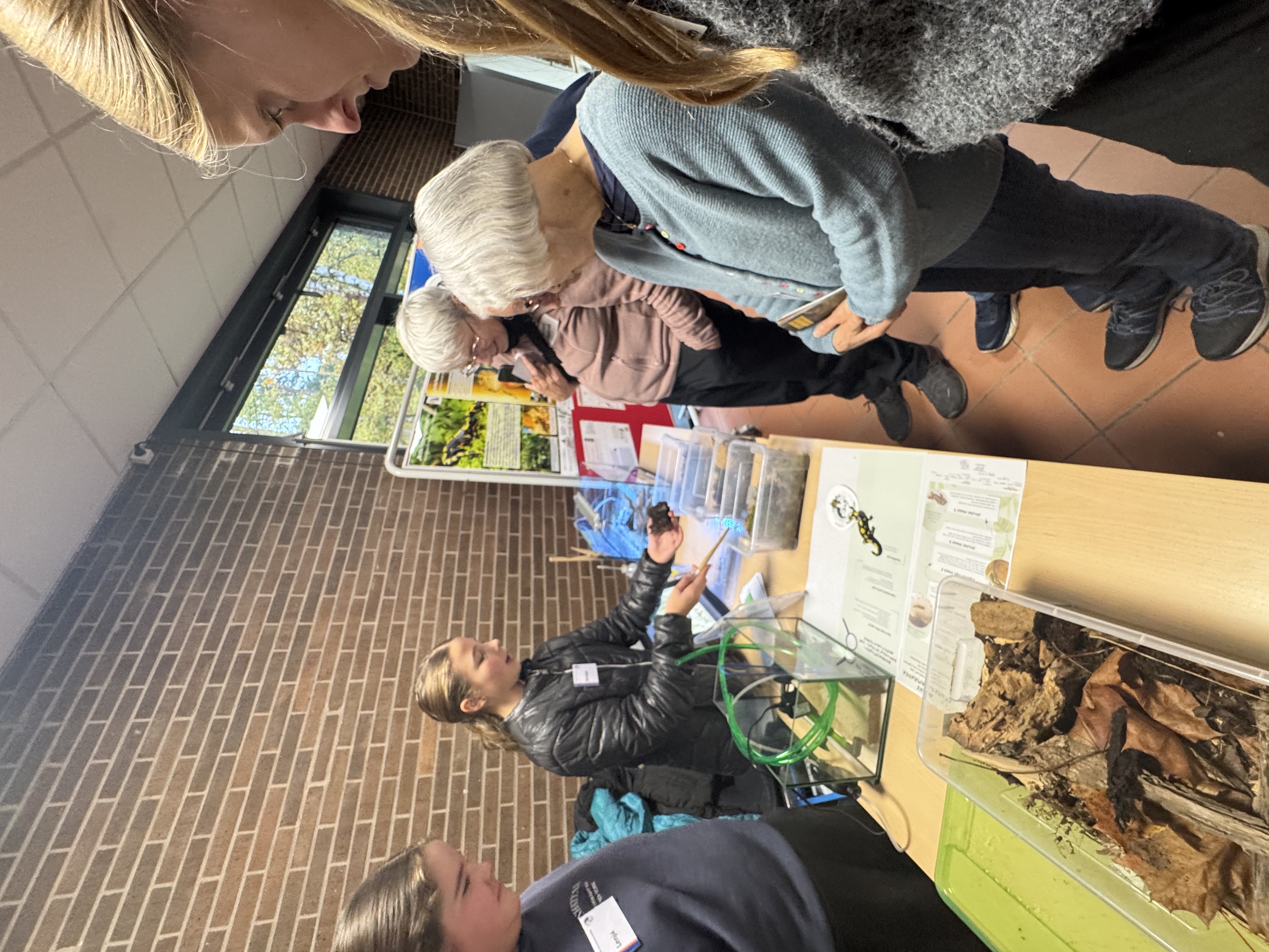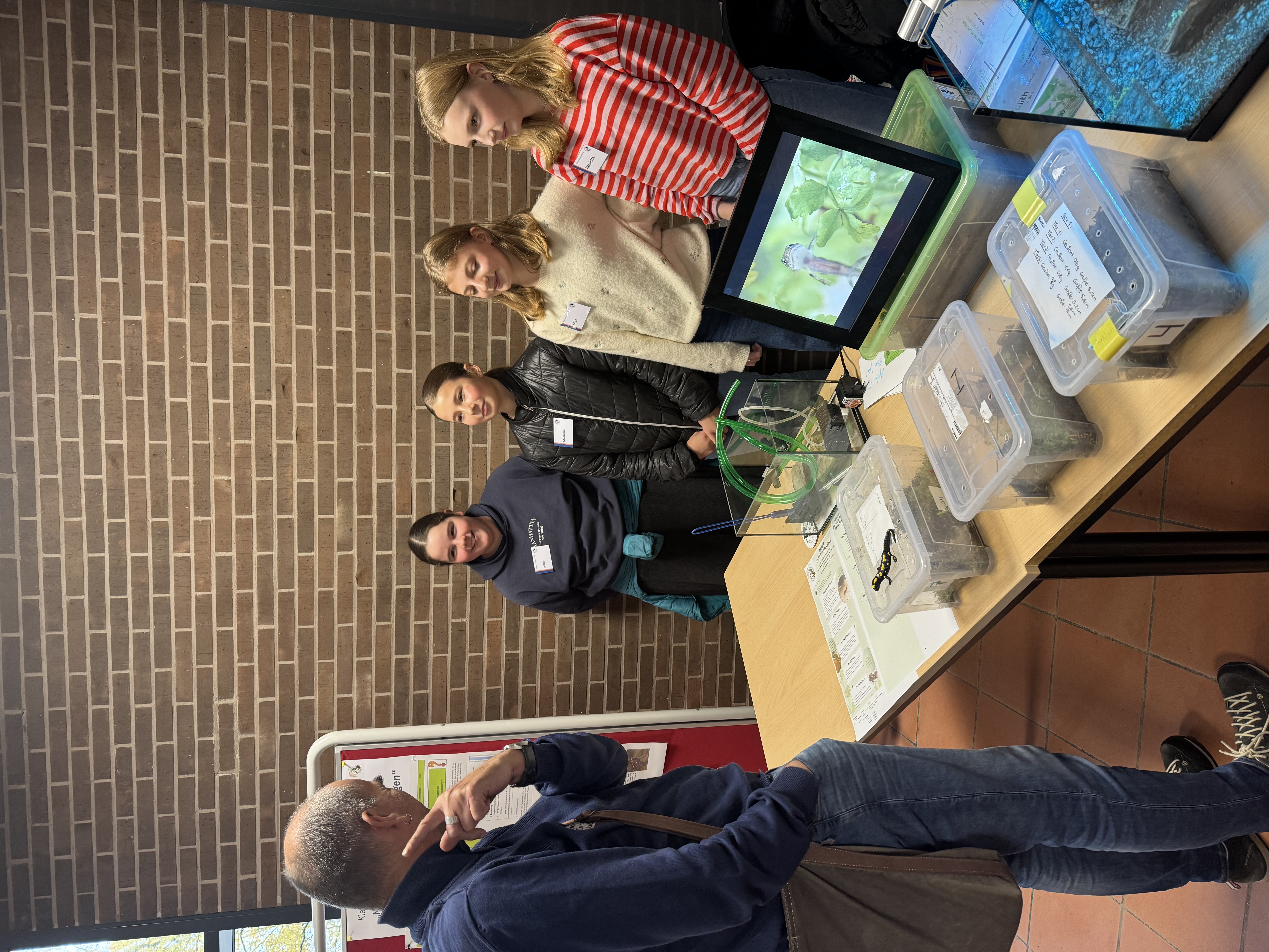 Gleich zu Beginn des Tages wurde das Team vom Hessischen Rundfunk interviewt (der Beitrag wird in den kommenden Tagen im HR-Radio zu hören sein). Später standen Sedric Haus und Marlene Hübscher (7c) auf der Bühne: Im Gespräch mit Moderatorin Anna Wöbse berichteten sie von der erfolgreichen Salamanderhaltung an der WvO und vom großen pädagogischen Mehrwert für die gesamte Schulgemeinde.