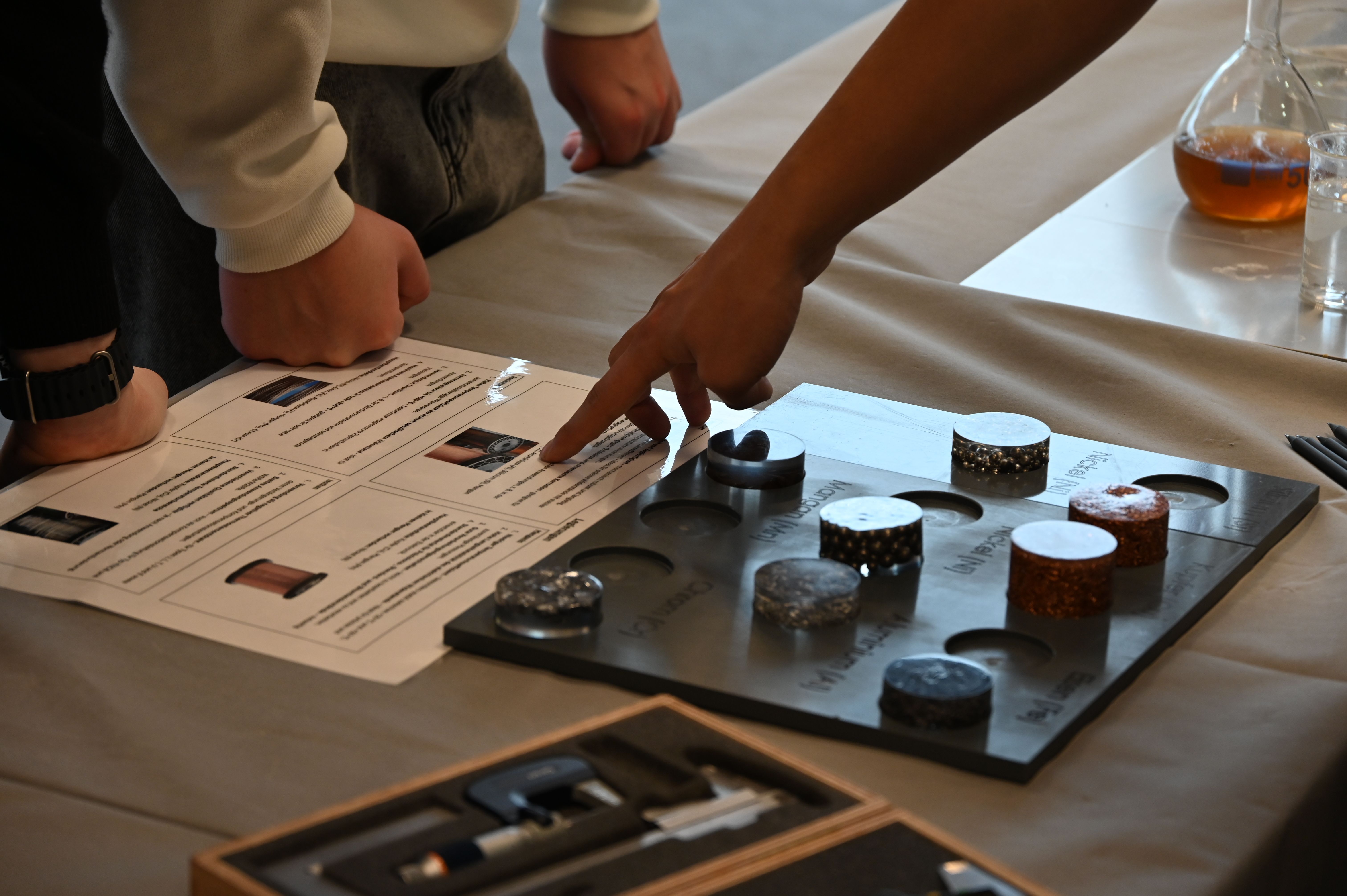 Die zahlreichen Mitmachangebote luden zum Ausprobieren ein. Im Atrium konnte man am Stand des Mathematik-Zentrums Wetzlar an mathematischen Rätseln knobeln, mit den Robotern des Gymnasiums Johanneum Herborn sprechen, an der Universität Siegen einen eigenen Elektromotor bauen, seine Geschicklichkeit bei Cohline am „Heißen Draht“ prüfen und am Stand der Isabellenhütte sein Wissen über Metalle unter Beweis stellen. Auch in der Eingangshalle gab es viel zu entdecken. Am Stand des Schülerforschungszentrums Mittelhessen wurden Lego-Roboter programmiert, der Verein Deutscher Ingenieure (VDI) informierte über 3D-Druck, bei Wendel-Email durfte emailliert und am schuleigenen Stand mikroskopiert werden. Elektrotechnik zum Anfassen boten zudem die EAM, Loh-Services und Carl Cloos Schweißtechnik. Ein besonderer Anziehungspunkt war der große Stand der Technischen Hochschule Mittelhessen, an dem die Schülerinnen und Schüler ihren eigenen Game-Controller bauen und programmieren konnten.