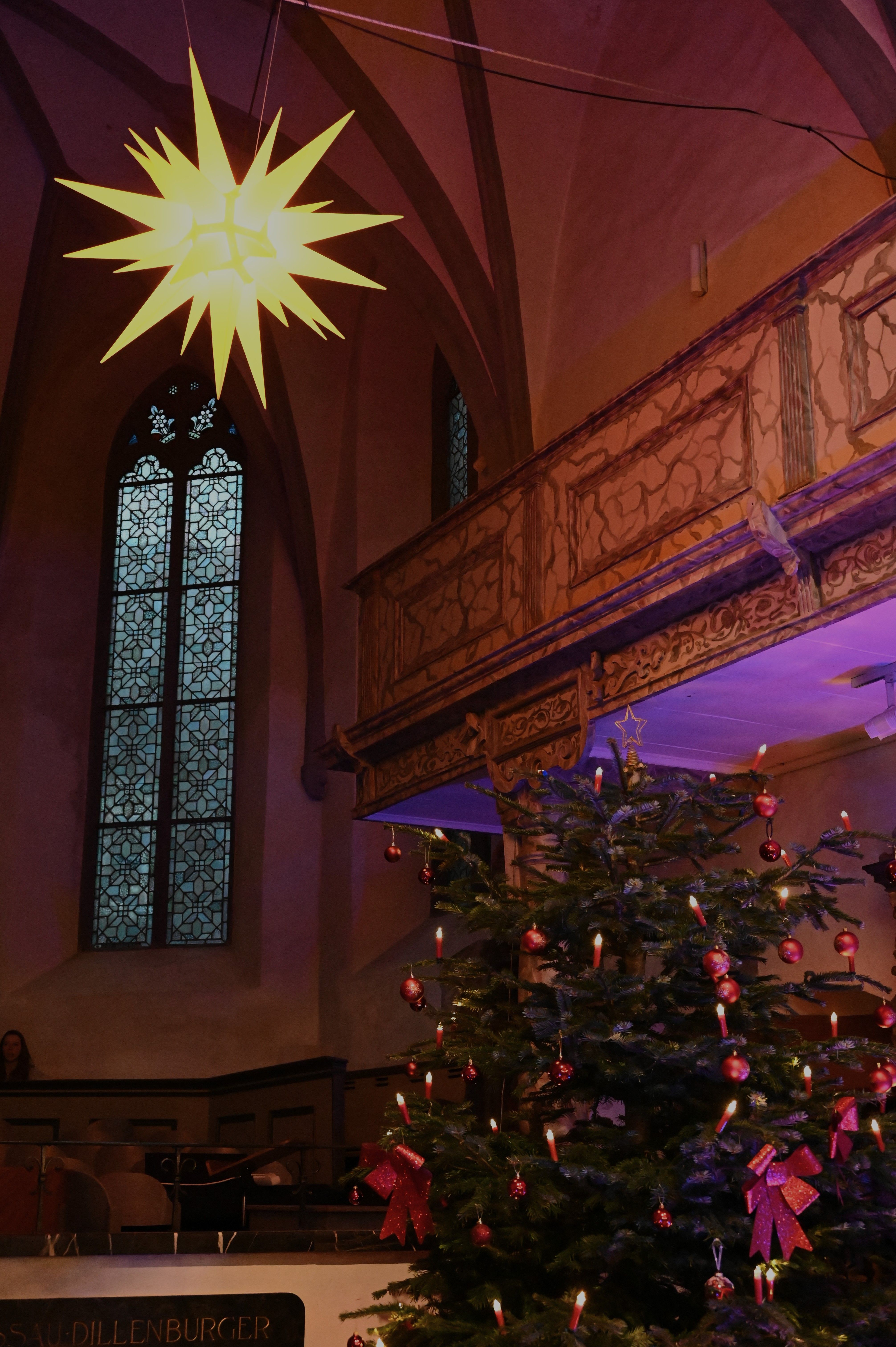 Traditionell findet am letzten Schultag vor Weihnachten am Dillenburger Gymnasium ein von der Fachschaft Religion organisierter ökumenischer Gottesdienst statt, jährlich reihum in der evangelischen oder der katholischen Kirche oder in der Freien evangelischen Gemeinde. Dieses Jahr war wieder die ev. Stadtkirche dran, die durch ihre historische Atmosphäre stets eine ganz besondere Stimmung ermöglicht. Zwar ist das Gebäude zu klein für alle Schülerinnen und Schüler, sodass nur die Religionskurse der Mittelstufe teilnehmen können, aber die Ethikkurse sowie die Schülerinnen und Schüler der Oberstufe erhielten im Schulgebäude ein zusätzliches Weihnachtsprogramm.