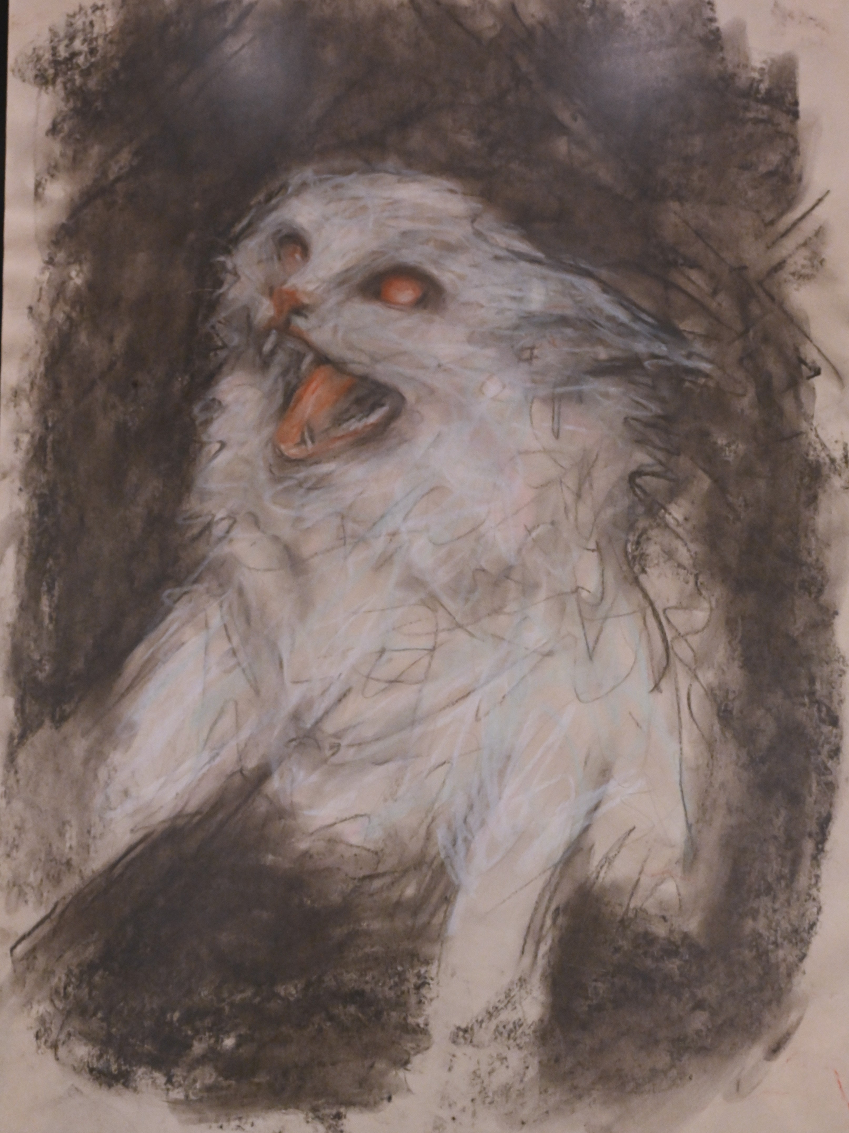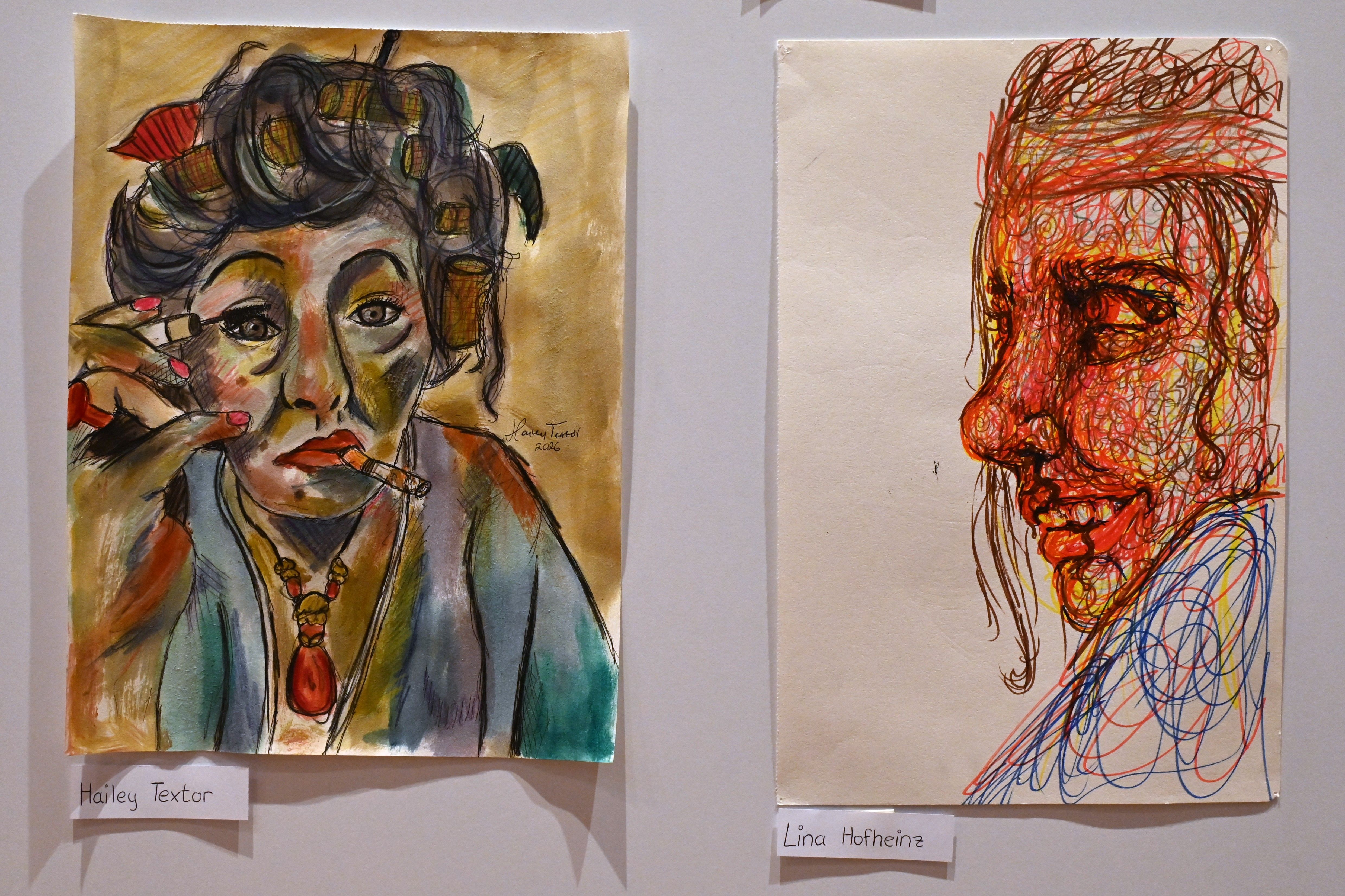 Schon beim Betreten der Ausstellungsräume wurde deutlich, wie breit das künstlerische Spektrum des Kurses ist. Ausdrucksstarke Gemälde und Zeichnungen zogen schon am Eingang die Blicke auf sich – manche fein ausgearbeitet, andere bewusst roh und emotional, z.B. Tierdarstellungen mit kraftvollem Pinselduktus standen reduzierten, fast grafisch wirkenden Gemälden gegenüber.