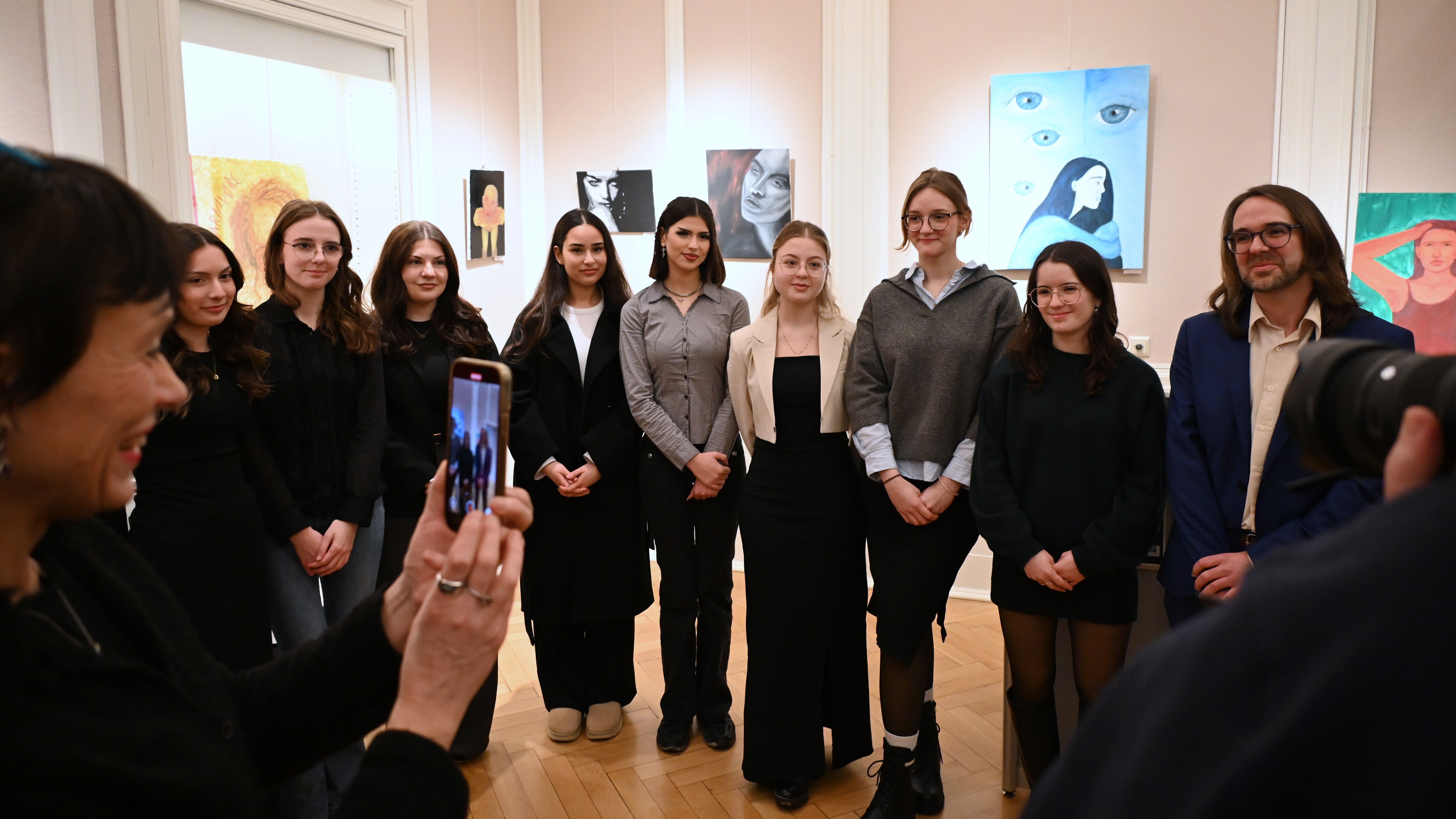 Rund 60 Gäste waren zur Ausstellungseröffnung gekommen und füllten die historischen Räume mit lebendigen Gesprächen über Kunst und Schule. Viele trafen sich seit vielen Jahren erstmals wieder, darunter auch Ehemalige der WvO. Zwischen klassischen Gemälden, expressiven Porträts, detailreichen Architekturmodellen und fotografischen Arbeiten entstand schnell eine offene, inspirierende Atmosphäre.