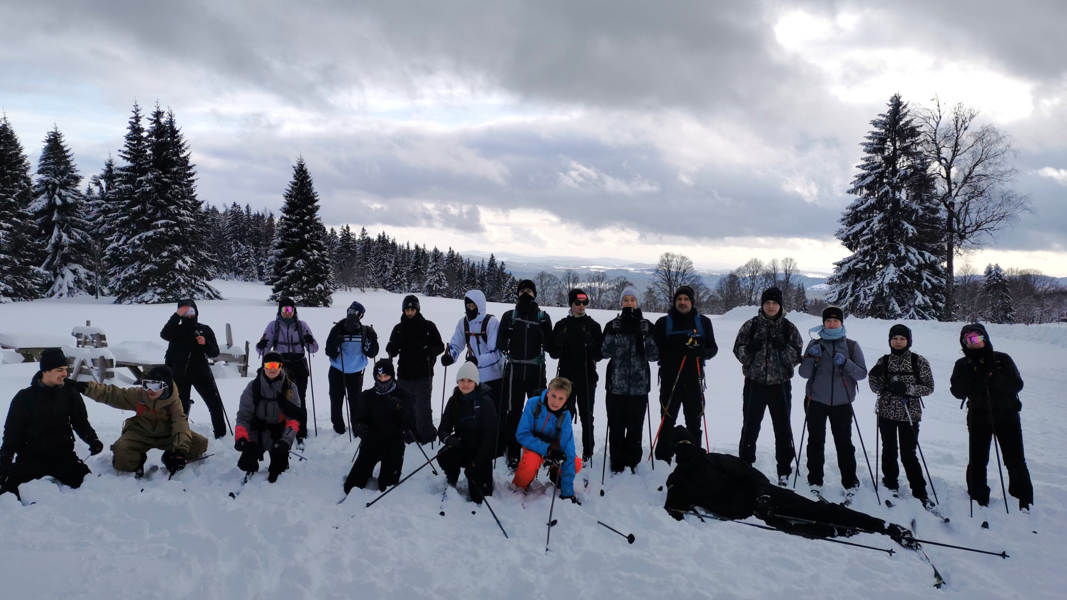 Insgesamt 51 Schülerinnen und Schüler und sechs Kolleginnen und Kollegen fuhren motiviert und voller Vorfreude am Samstagmorgen Mitte Februar ins rund 560km entfernte Feriendorf an der tschechischen Grenze.