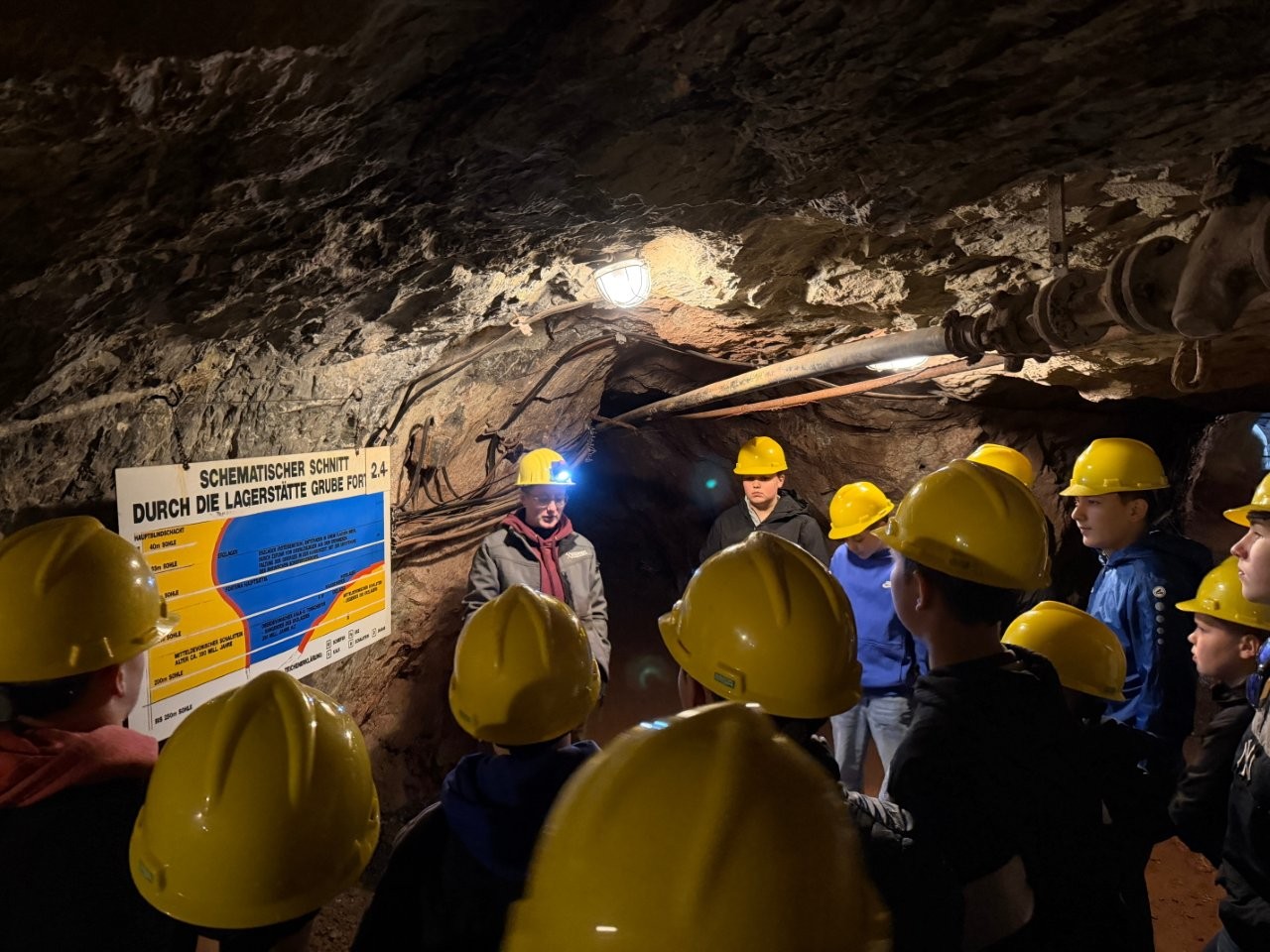 Siebtklässler im Besucherbergwerk Grube Fortuna
