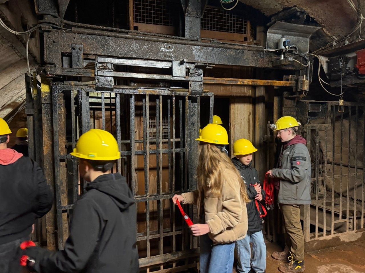 So erhielten die Schülerinnen und Schüler einen anschaulichen Einblick in die technischen Abläufe des Bergbaus. Gleichzeitig wurde deutlich, unter welchen Bedingungen gearbeitet wurde: Enge, Dunkelheit, hoher Geräuschpegel und körperlich anspruchsvolle Tätigkeiten prägten den Alltag der Bergleute. In diesem Zusammenhang wurde auch der bergmännische Begriff „Wetter“ erläutert. Gemeint ist damit die Luft unter Tage, insbesondere ihre Zirkulation und die Versorgung mit Frischluft, die für die Arbeit unverzichtbar ist.