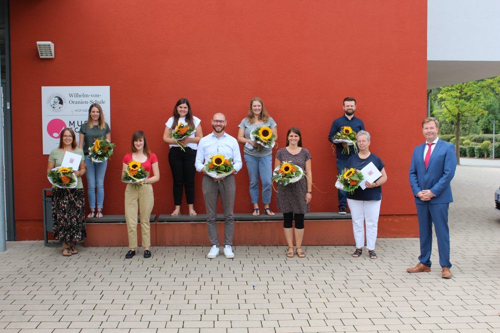 Ein Stück der gewohnten "GK-Normalität" vermittelten indes die Personalia. So durfte sich Jasmin Jaschina (EK/GE) über ihre Urkunde zur Verbeamtung auf Probe freuen. Ein weiteres Planstellenverfahren für Jana Gehlen (DE/EN) läuft indes noch. Mit neuen Angestelltenverträgen wurden ausgestattet: Alina Wagner (MA/SPO), Yanina Iflazoglu (DE/ET), Sonja Schoel (DE/GE) sowie Nicolas Grebe (MU/PW), Klaus Herborn (FR/GE) und Anne Hajek (EK/SPO/MA), die alle drei im vergangenen Schuljahr ihr Referendariat an der WvO erfolgreich beendet hatten. Ebenfalls neu im Kollegium wurde Thilo Schwarz-von Dessoneck (DE/GE) begrüßt, der von der Driedorfer Westerwaldschule abgeordnet wird, sowie Franziska Gimbel, die das Verwaltungsteam im Sekretariat verstärken wird. Schließlich erhielt Ruth Schneider aus den Händen des Schulleiters die Urkunde zu ihrem 40-jährigen Dienstjubiläum.