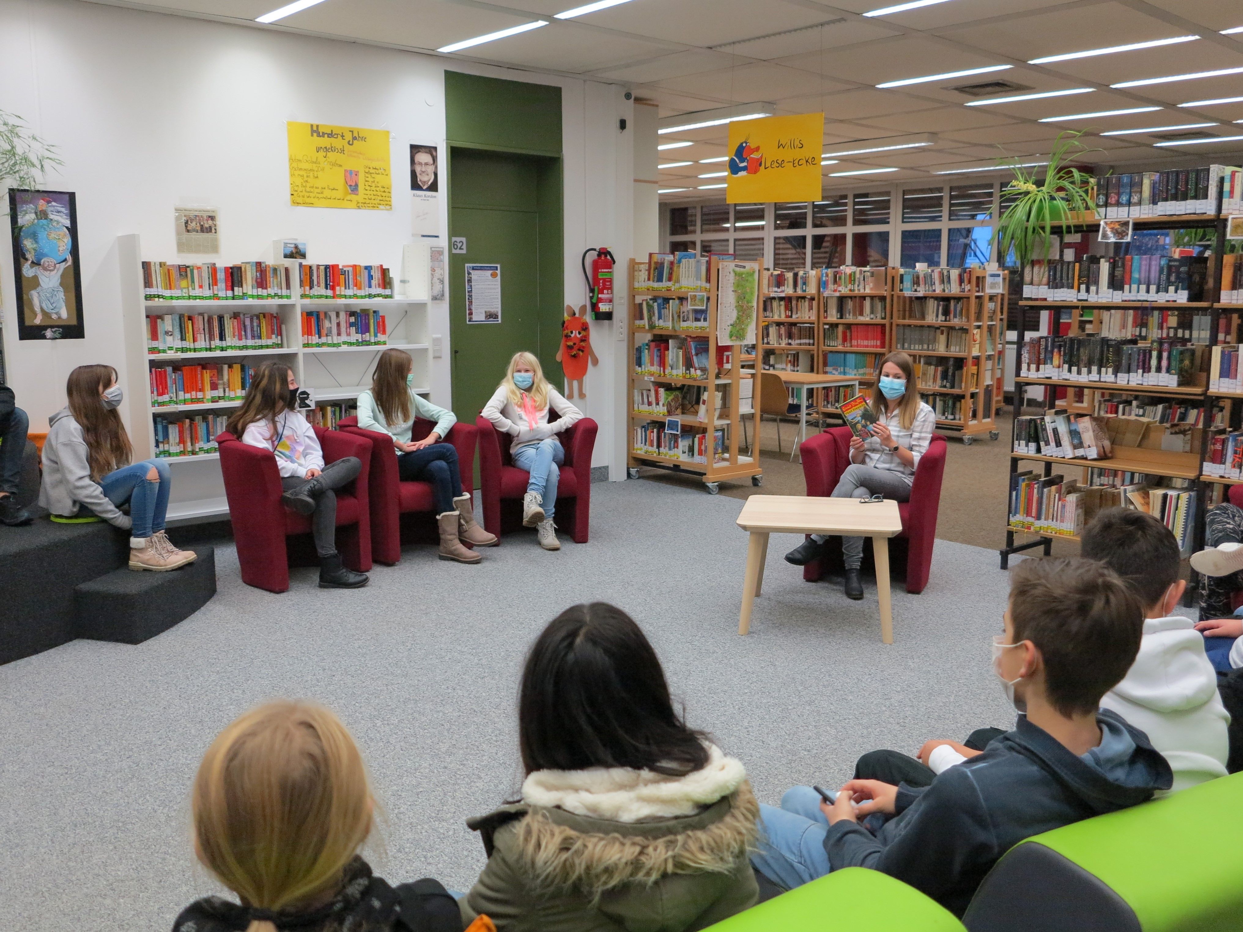 Wie jedes Jahr, lassen wir – das Bibliotheksteam - es uns nicht nehmen, am 20. November, dem Bundesweiten Vorlesetag, unsere Fünftklässler in der Bibliothek willkommen zu heißen! Alle Klassen werden eingeladen, eine gemütliche Stunde in Willis Lese-Ecke zu verbringen …