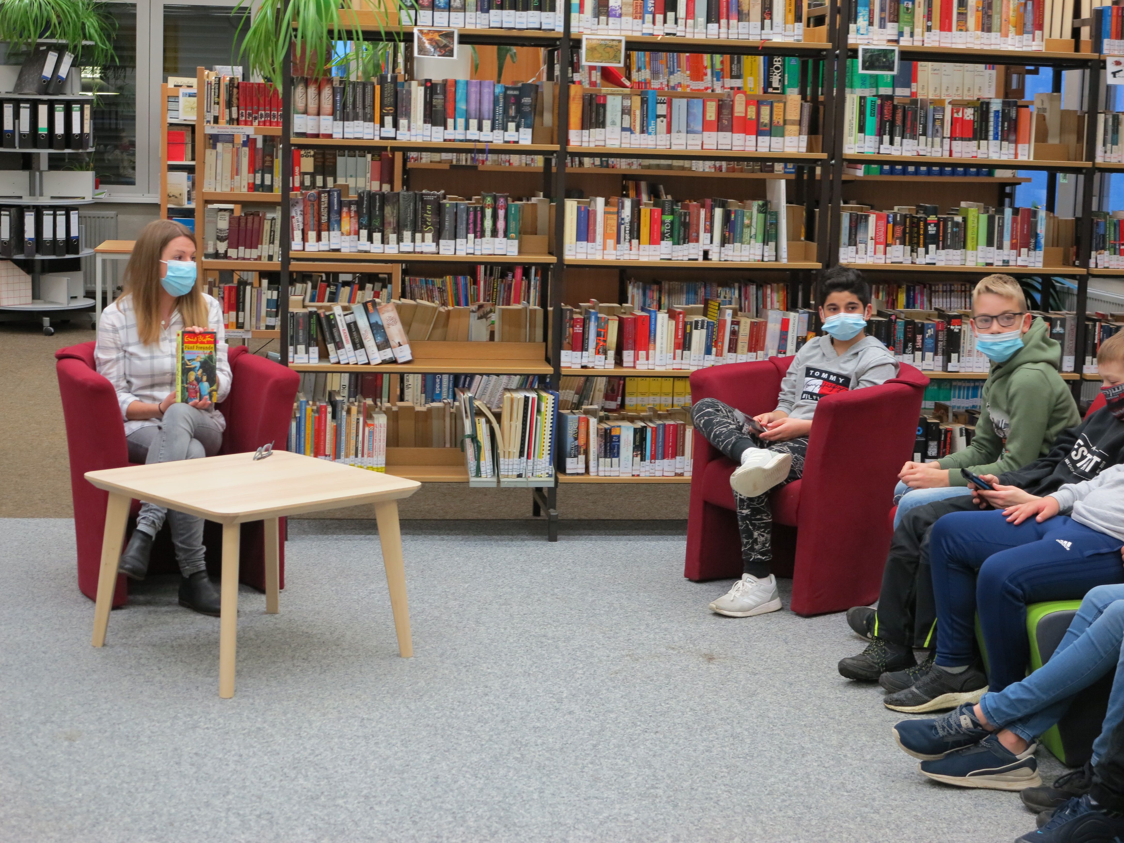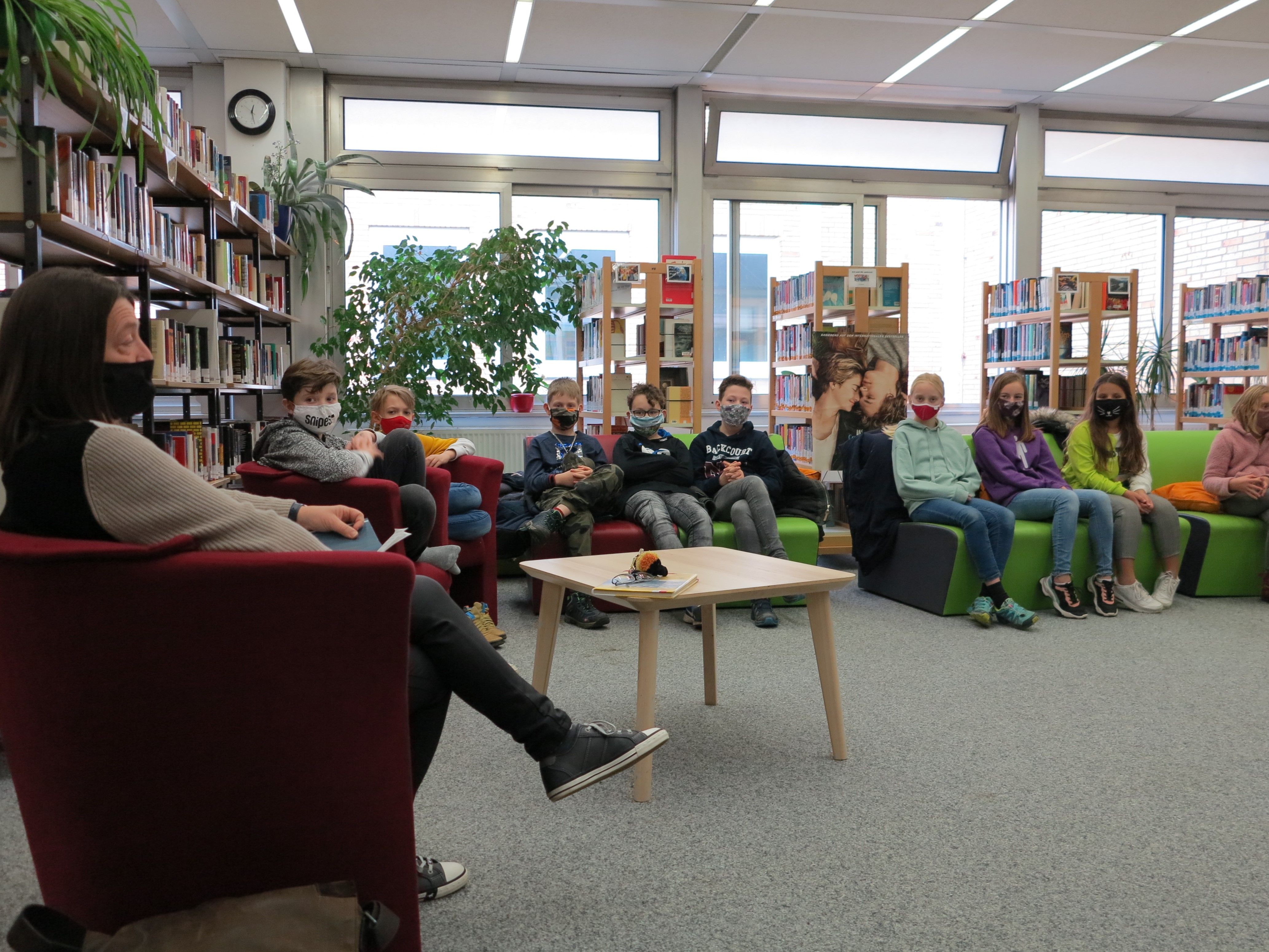 Auch wenn die Bibliothek im Corona-Modus etwas einsam vor sich hin trauert, ist sie für Lerngruppen und Klassen (fast) jederzeit buchbar. So kam die Idee auf, Sport- und Mathematiklehrkräfte als Vorlesepaten anzufragen, denn wir wollen ja „den Beweis führen“, dass ALLE lesen!