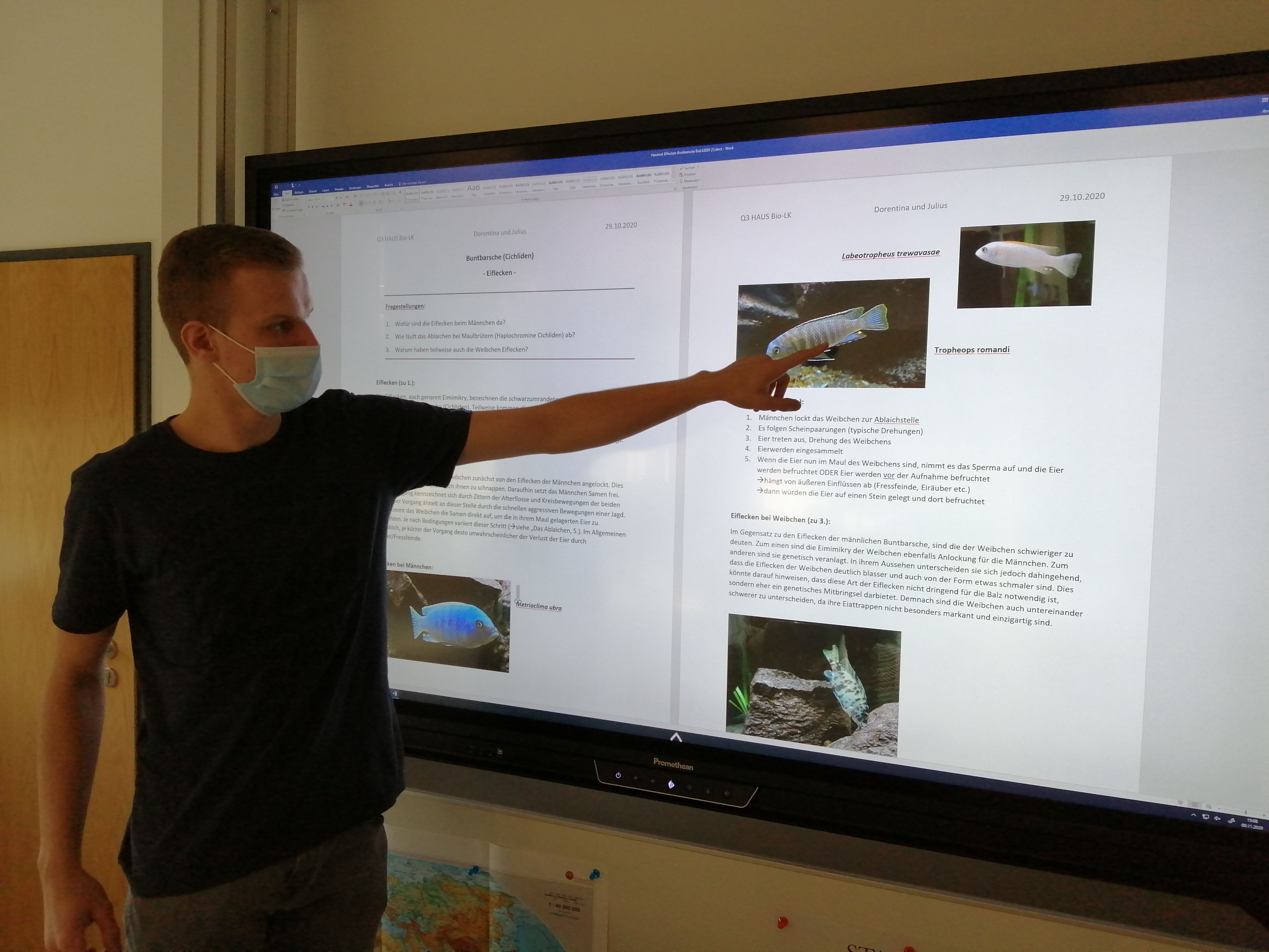 In den ersten Wochen des Schuljahres konnten, trotz Coronaauflagen und den damit einher gehenden Einschränkungen, bereits erste Lerngruppen mit dem Aquarium arbeiten. So erstellte ein Biologie-Wahlpflichtkurs bereits Steckbriefe mit eigenen Fotos über die einzelnen Cichlidenarten.