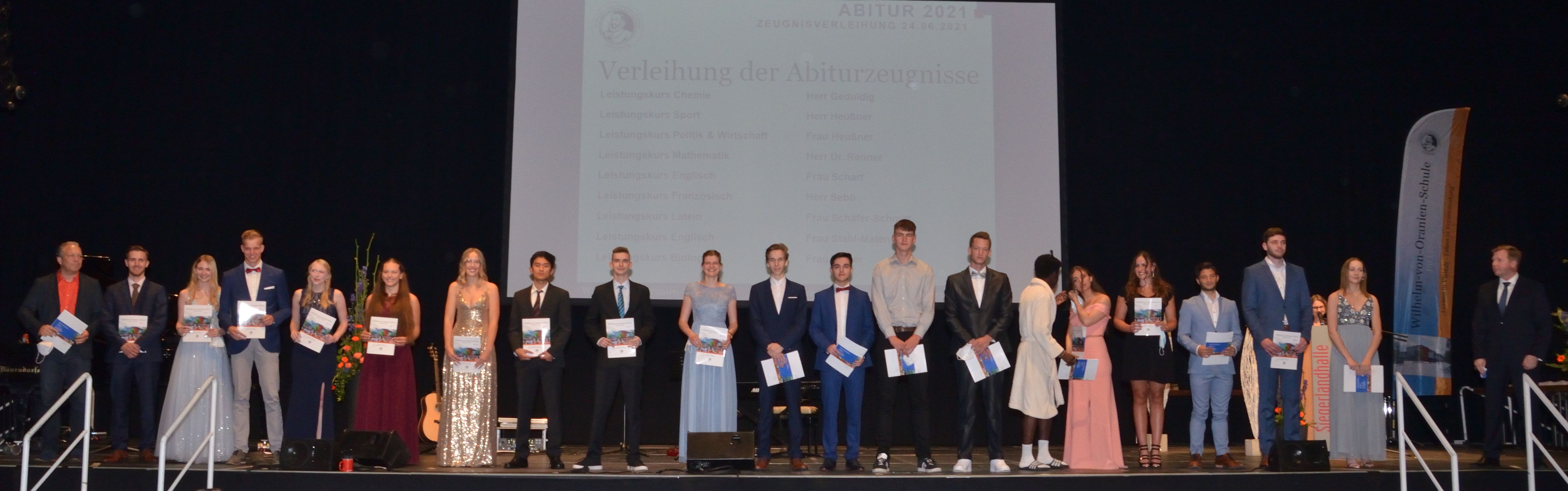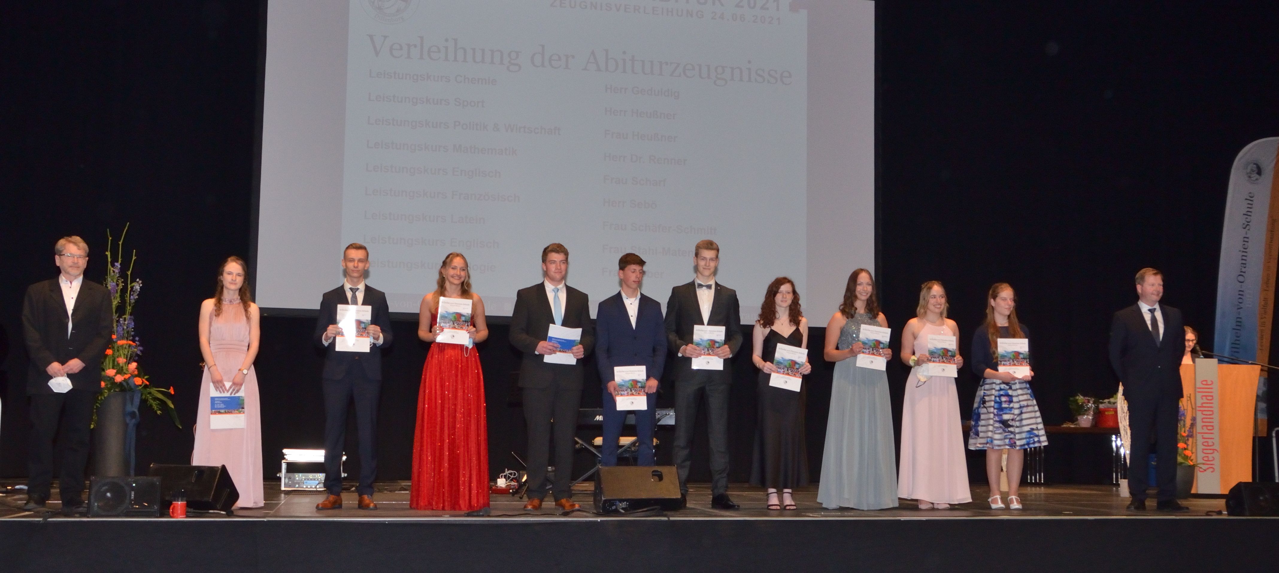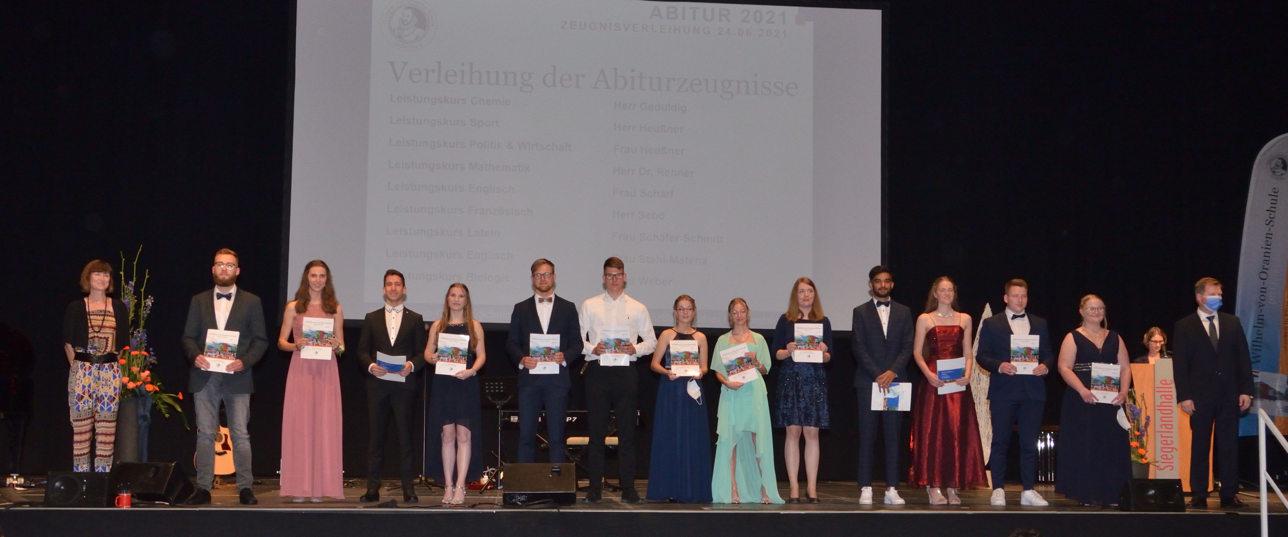 Kaum ein Abiturjahrgang – die Nachkriegszeit einmal ausgenommen – wurde so von Krisenentscheidungen durchgerüttelt wie der des Jahres 2021: Monatelang Distanzunterricht zu Hause, ansonsten nur mit Maske und Schnelltests in der Schule, Kursfahrten und Partys allesamt gestrichen, halbierte Kurse und verschobene Prüfungen… Trotzdem alledem: Am Ende war für die Wilhelm-von-Oranien-Schule (WvO) eine gemeinsame Feier der Abiturienten mit ihren Eltern und Lehrern doch noch möglich, und zwar in der Siegerlandhalle.