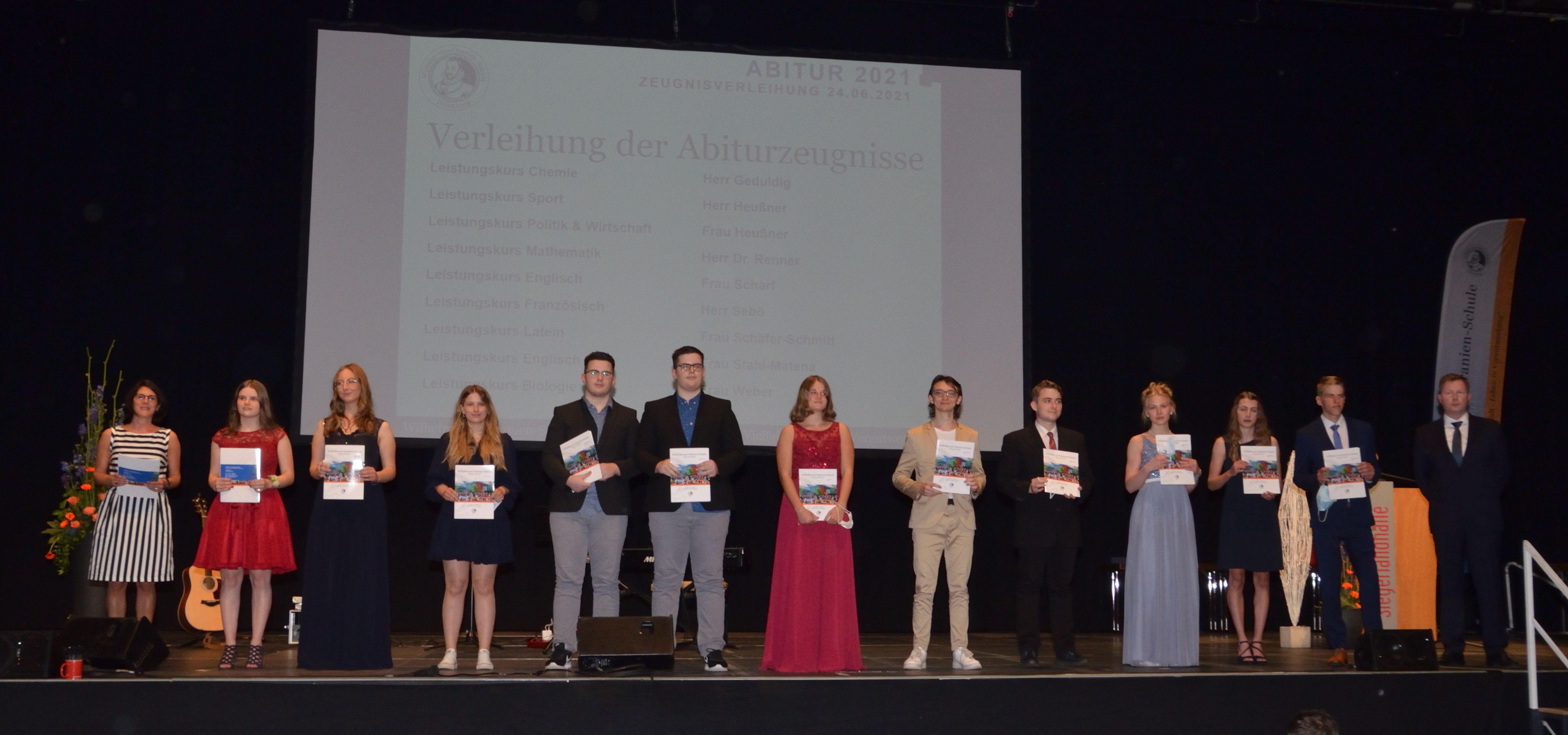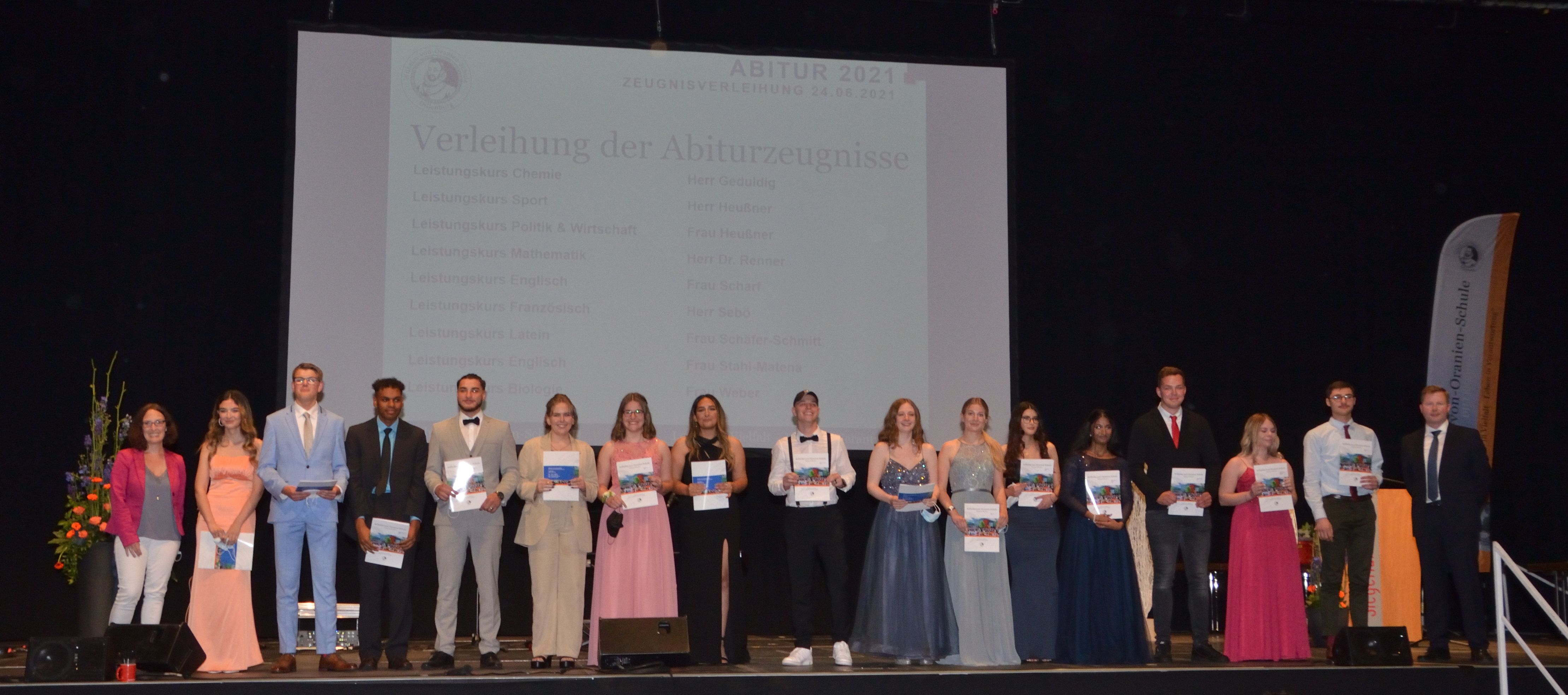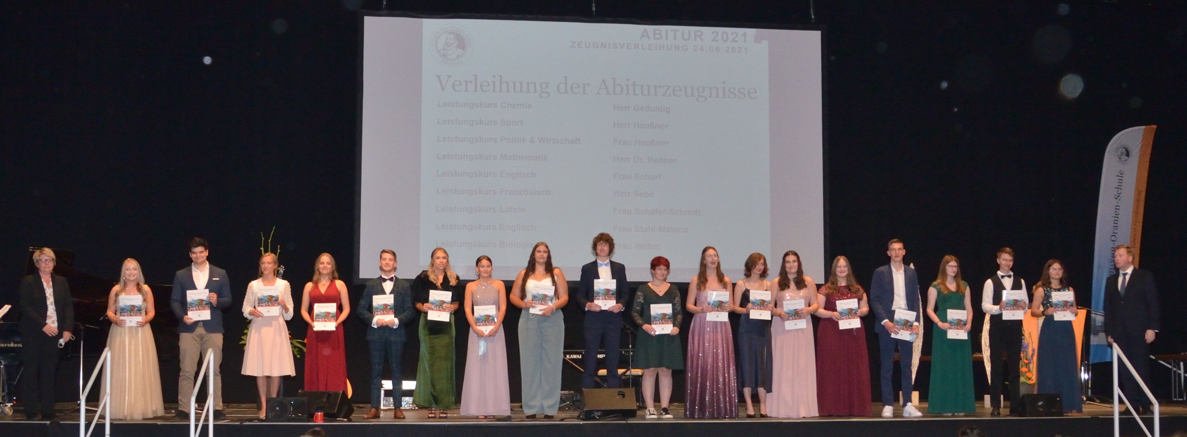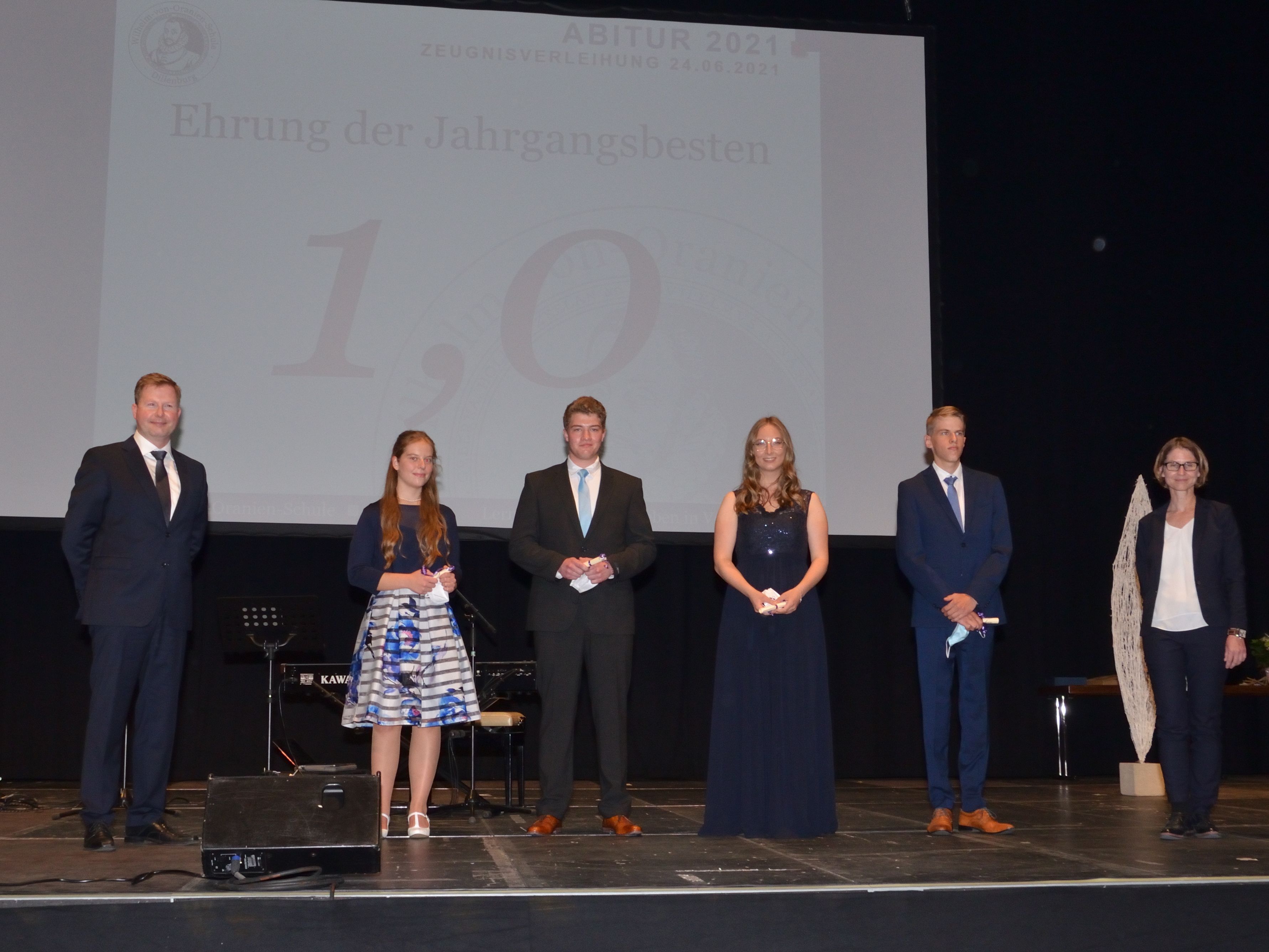 Kaum ein Abiturjahrgang – die Nachkriegszeit einmal ausgenommen – wurde so von Krisenentscheidungen durchgerüttelt wie der des Jahres 2021: Monatelang Distanzunterricht zu Hause, ansonsten nur mit Maske und Schnelltests in der Schule, Kursfahrten und Partys allesamt gestrichen, halbierte Kurse und verschobene Prüfungen… Trotzdem alledem: Am Ende war für die Wilhelm-von-Oranien-Schule (WvO) eine gemeinsame Feier der Abiturienten mit ihren Eltern und Lehrern doch noch möglich, und zwar in der Siegerlandhalle.