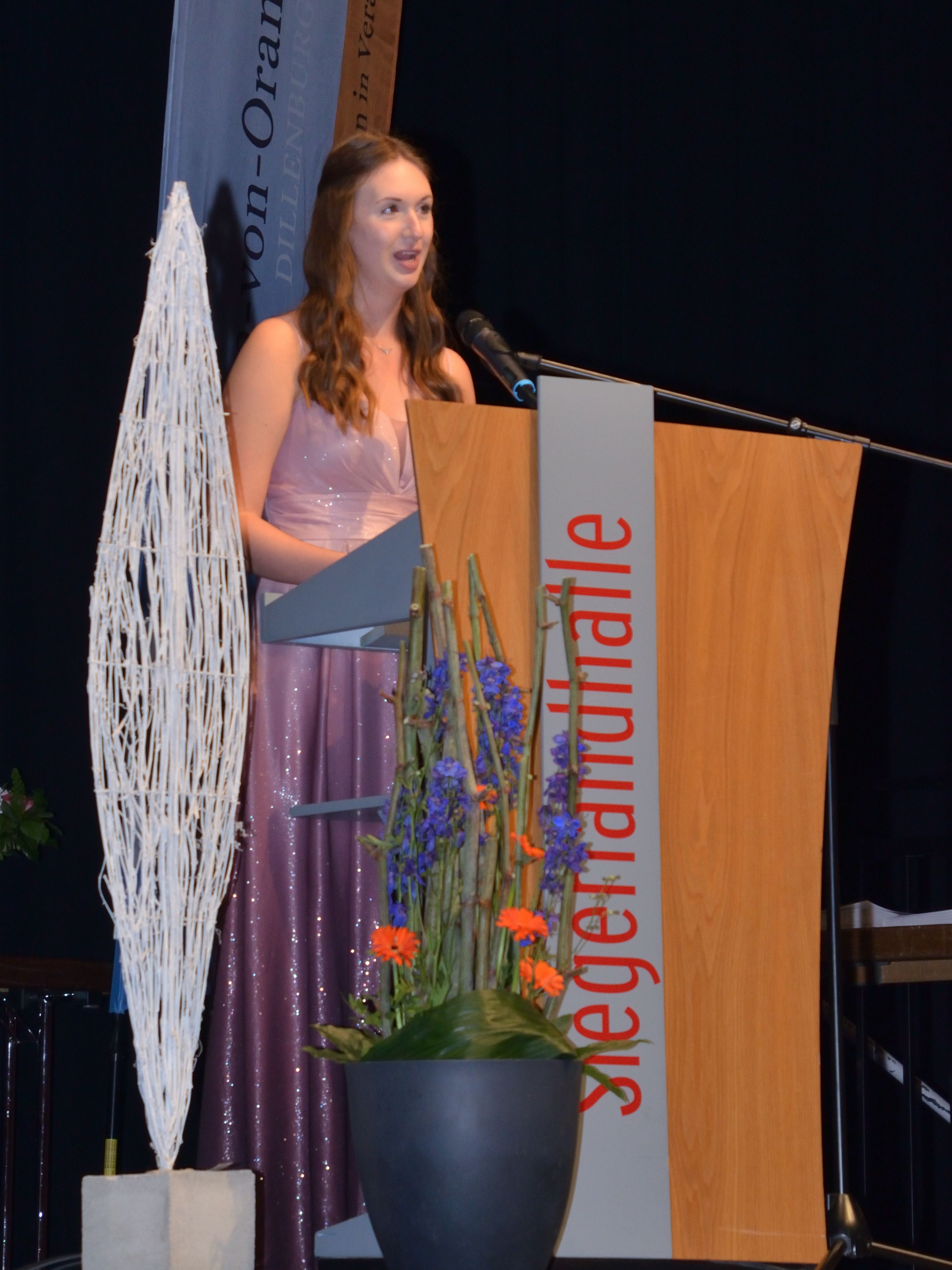 Hanna Nix hielt auch die Schülerrede und bewies durch ihre erfrischende Begeisterung für die doch noch möglich gewordene Abschlussfeier und ihren strukturierten Rückblick auf die letzten Corona-Monate sowie das „Jahrgangs-Krisenmanagement“, dass sie sich den Diamant-Preis redlich verdient hat.