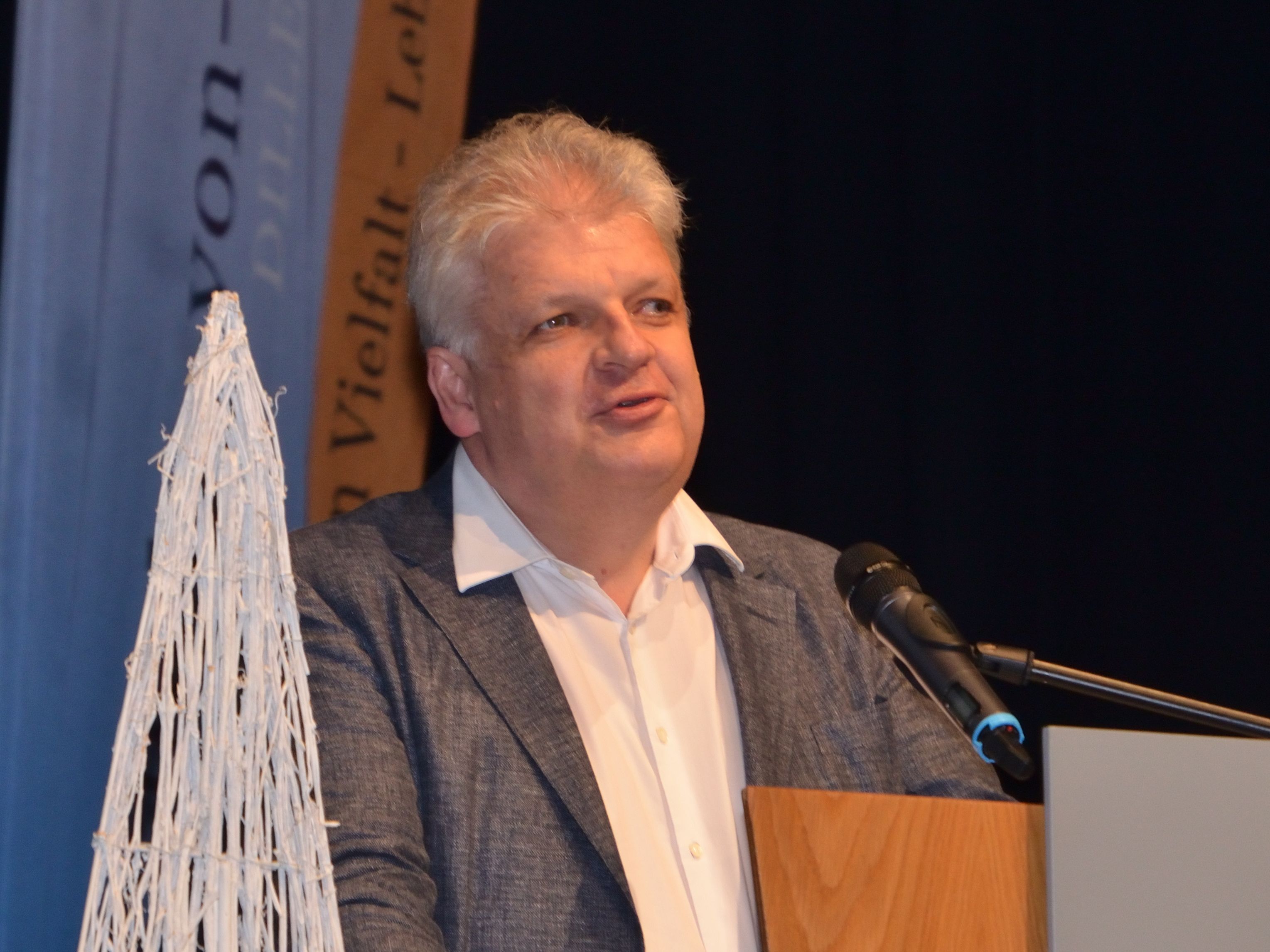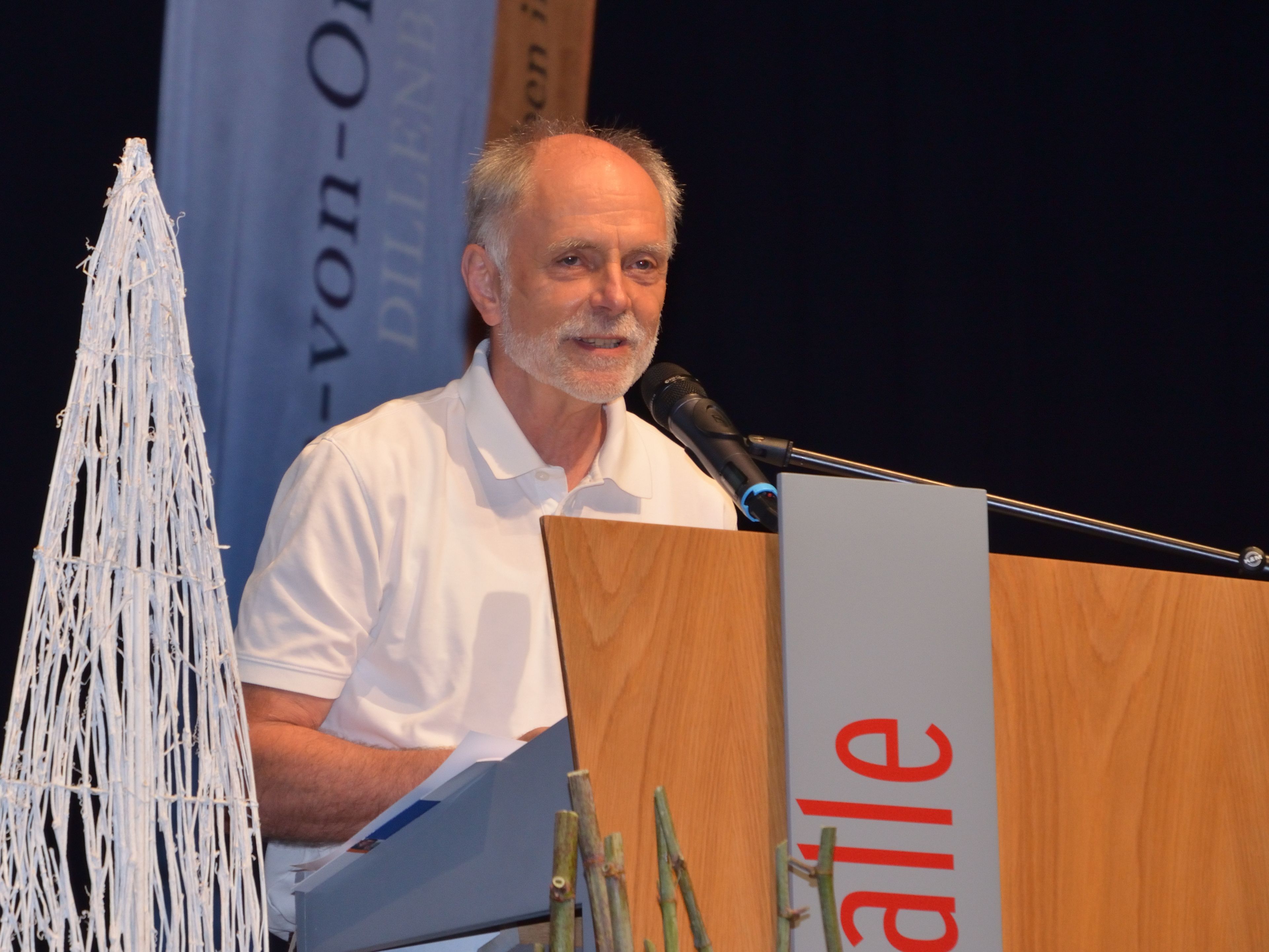 Jens-Steffen Womser als Vertreter der Elternschaft fokussierte seine Rede ebenfalls auf Vergangenheit, Gegenwart und Zukunft. Nachdem er – startend im Geburtsjahr der Abiturienten – die weltpolitischen Krisen der beiden Dekaden Revue passieren ließ, appellierte er in Anlehnung an ein Zitat von Albert Einstein – „Ich fürchte mich vor dem Tag, an dem die Technologie unsere Menschlichkeit übertrifft. Auf der Welt wird es nur noch eine Generation aus Idioten geben.“ – an sein Auditorium, die Menschlichkeit auch in Zukunft nicht aus dem Blick zu verlieren.