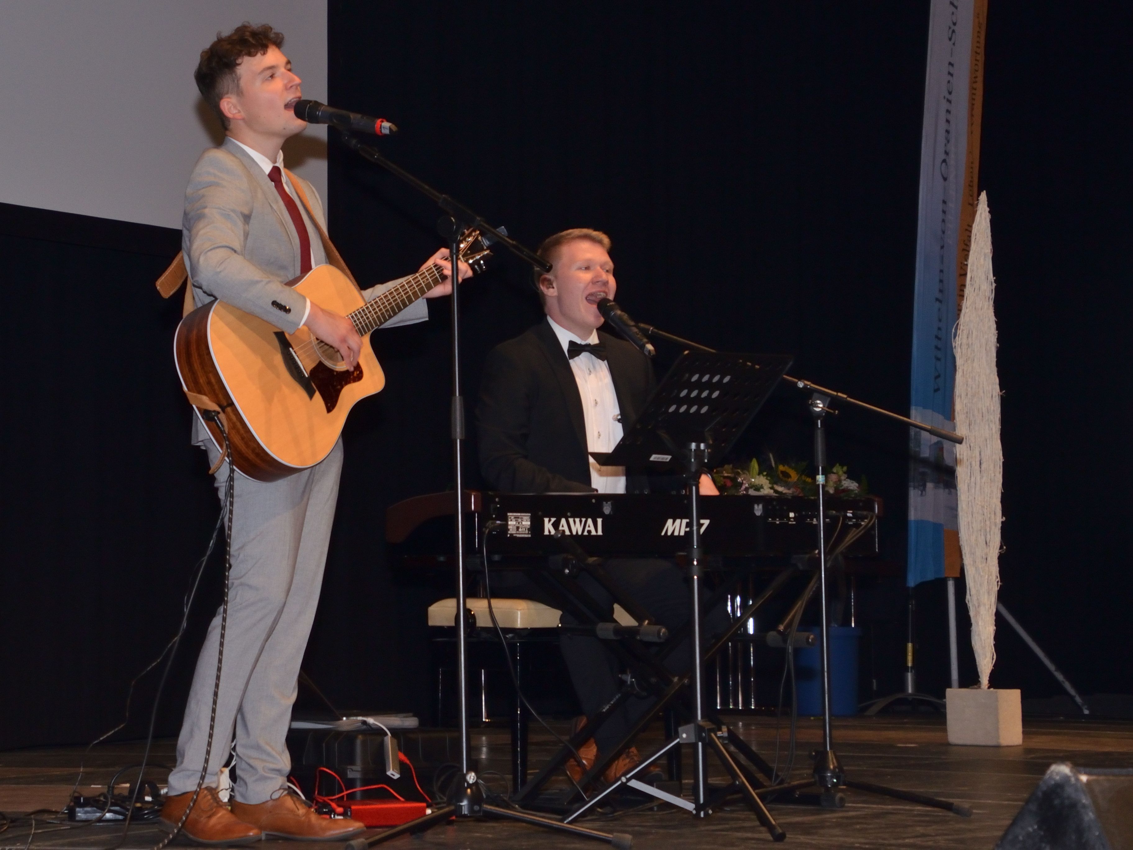 Im Anschluss an die Festreden und Auszeichnungen erhielten alle 130 Absolventen ihre Zeugnisse überreicht. Stimmungsvoll umrahmt wurde die Feier von zwei musikalischen Ausnahmetalenten aus dem Abiturjahrgang: Simon Graf und Josia Hermann beeindruckten als souverän musizierendes Duo an Gitarre und Piano sowie mit gemeinsamem Gesang die Festversammlung.