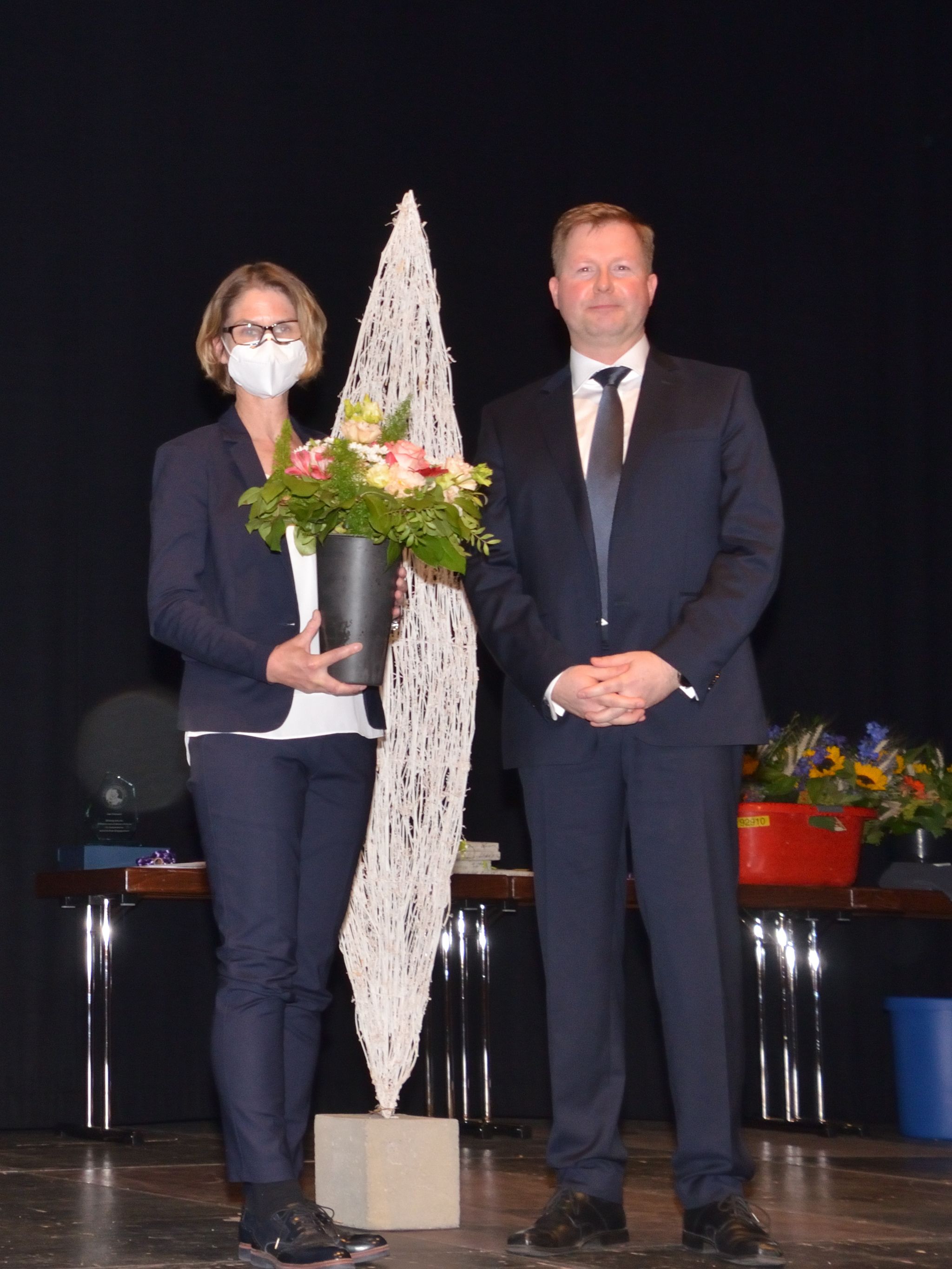 Oberstudiendirektor Martin Hinterlang freute sich aber nicht nur darüber, sondern zeigte sich überdies beeindruckt von einem formidablen Rekordergebnis, welches der „Corona-Jahrgang“ erzielt hatte. Der Notendurchschnitt kletterte auf eine bisherige Bestleistung von 2,29 – und dies, obwohl die Prüfungsanforderungen keineswegs wegen Corona inhaltlich ausgedünnt worden wären. Einen weiteren Glanzpunkt setzten vier Abiturienten mit der Traumnote 1,0. Carlotta Deffner, Philipp Meister, Paul Weiershausen und Merle Womser wurden dafür vom Schulleiter und von Studienleiterin Andrea Stühler mit Buchgutscheinen belohnt.