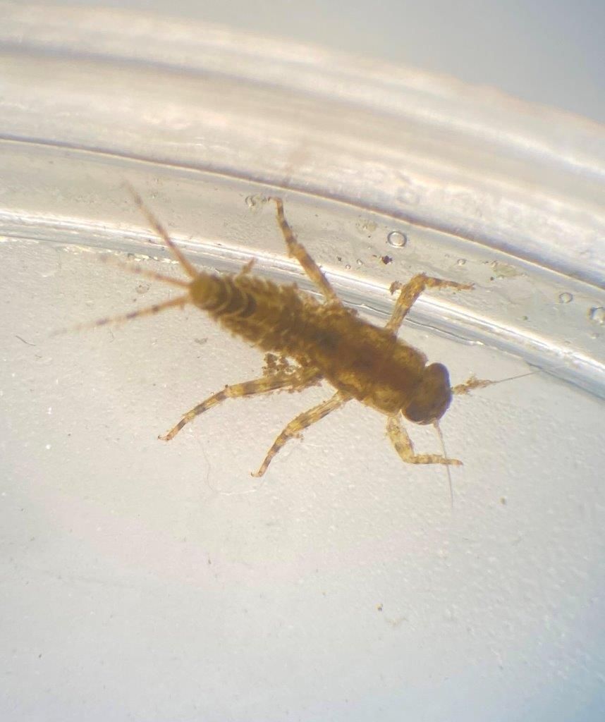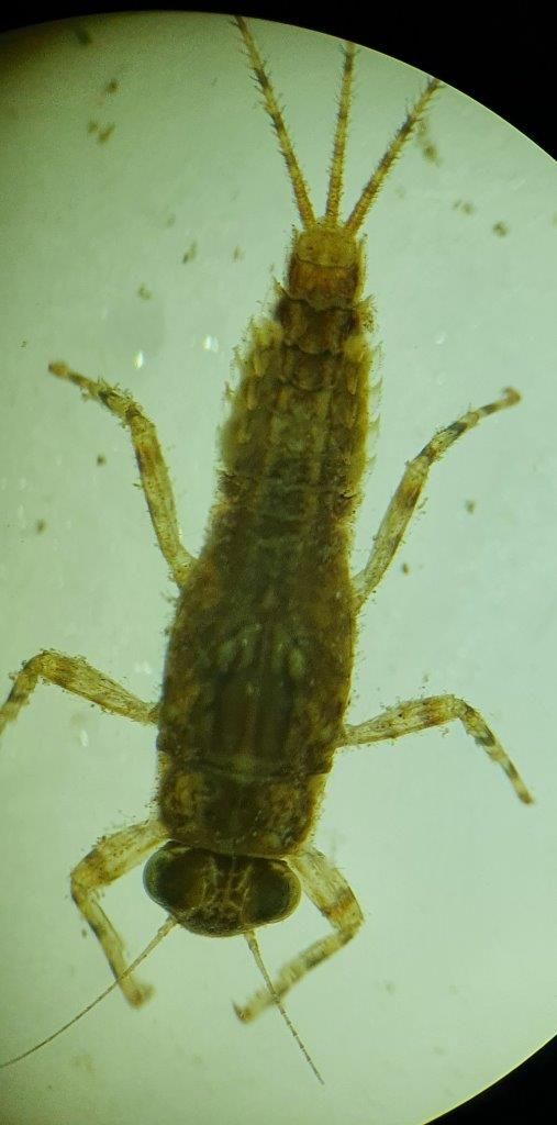 Insgesamt wurden im Untersuchungszeitraum von den Schülergruppen der Klasse 7D und des Q2-Grundkurses von Sedric Haus 148 wirbellose Tiere erfasst, denen ein Saprobienindex zugeordnet ist. Darunter waren hauptsächlich verschiedene Eintagsfliegenlarven, Bachflohkrebse und Rollegel, aber auch wenige Steinfliegenlarven und ein Strudelwurm, die für einen sehr guten Saprobienindex stehen, landeten in den Keschern. Insgesamt ermittelten die Schülergruppen einen Gesamtwert von 2,1. Das steht für die Gewässergüte: II - mäßig belastet. Neben den relevanten Wirbellosen konnte ein Schüler zufällig einen Fisch (Bachschmerle) fangen, der ebenfalls ein Indikator für sauberes Wasser ist. Des Weiteren konnten an den Uferbereichen unzählige Jungfische beobachtet werden.
