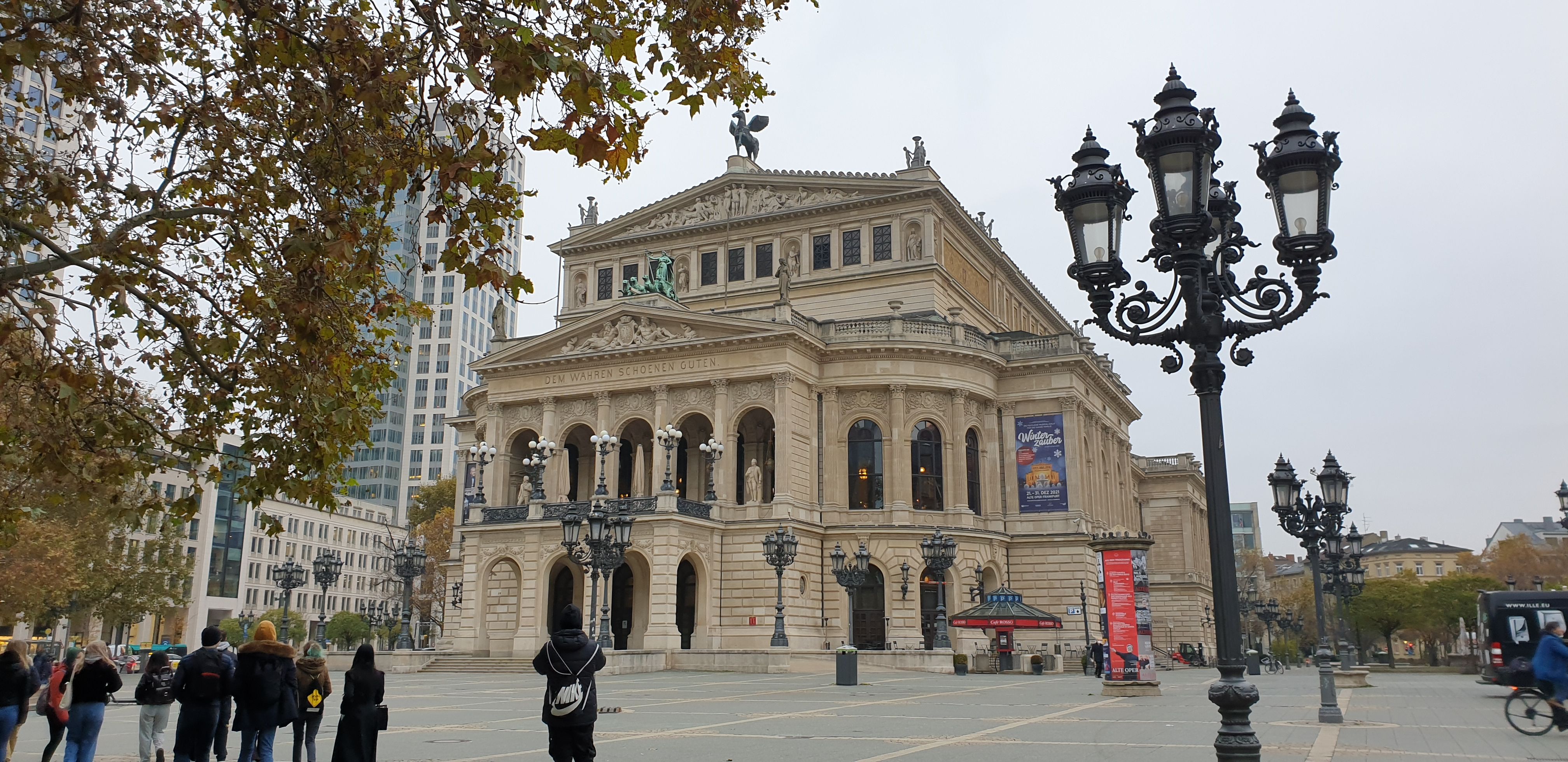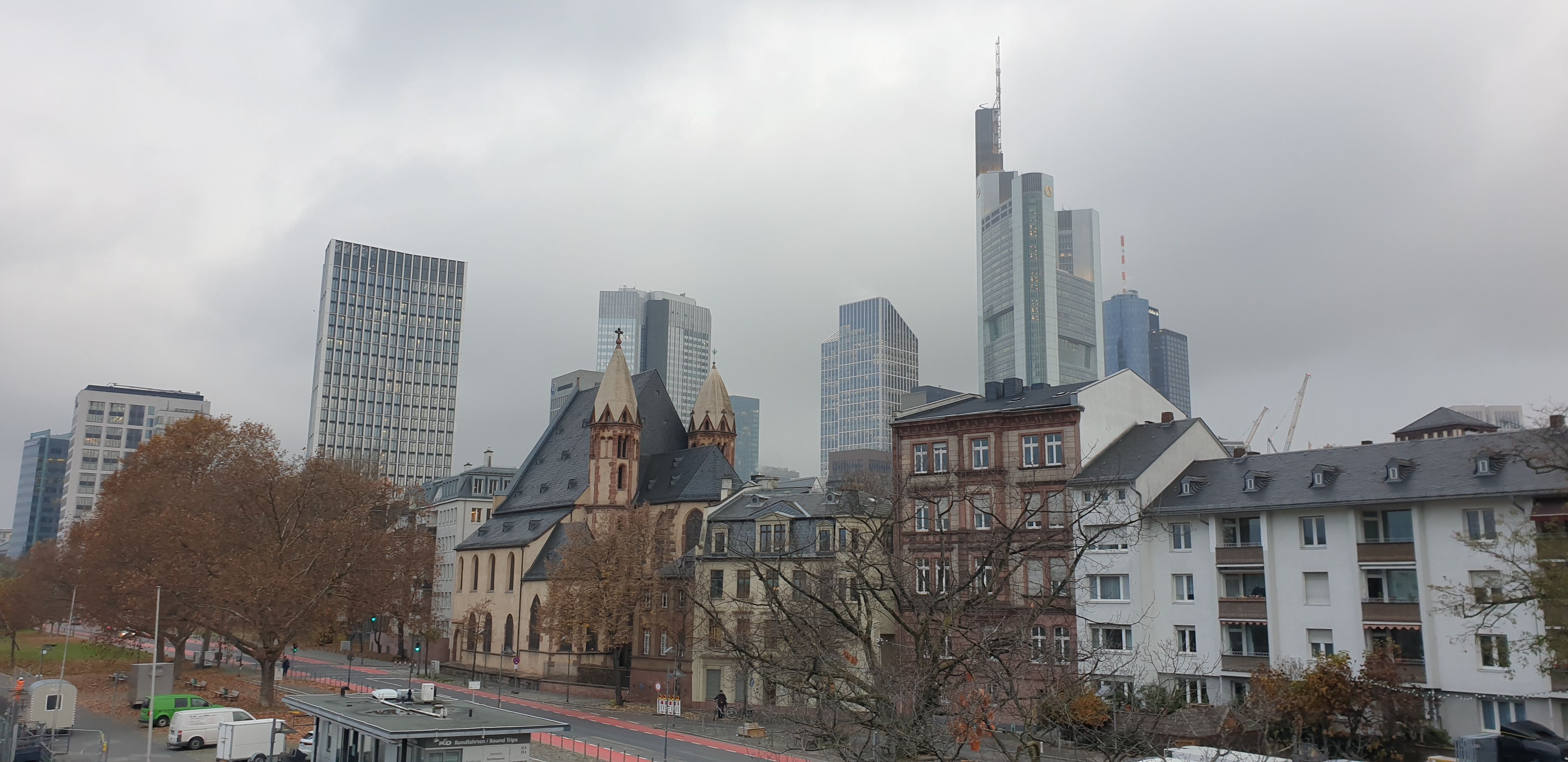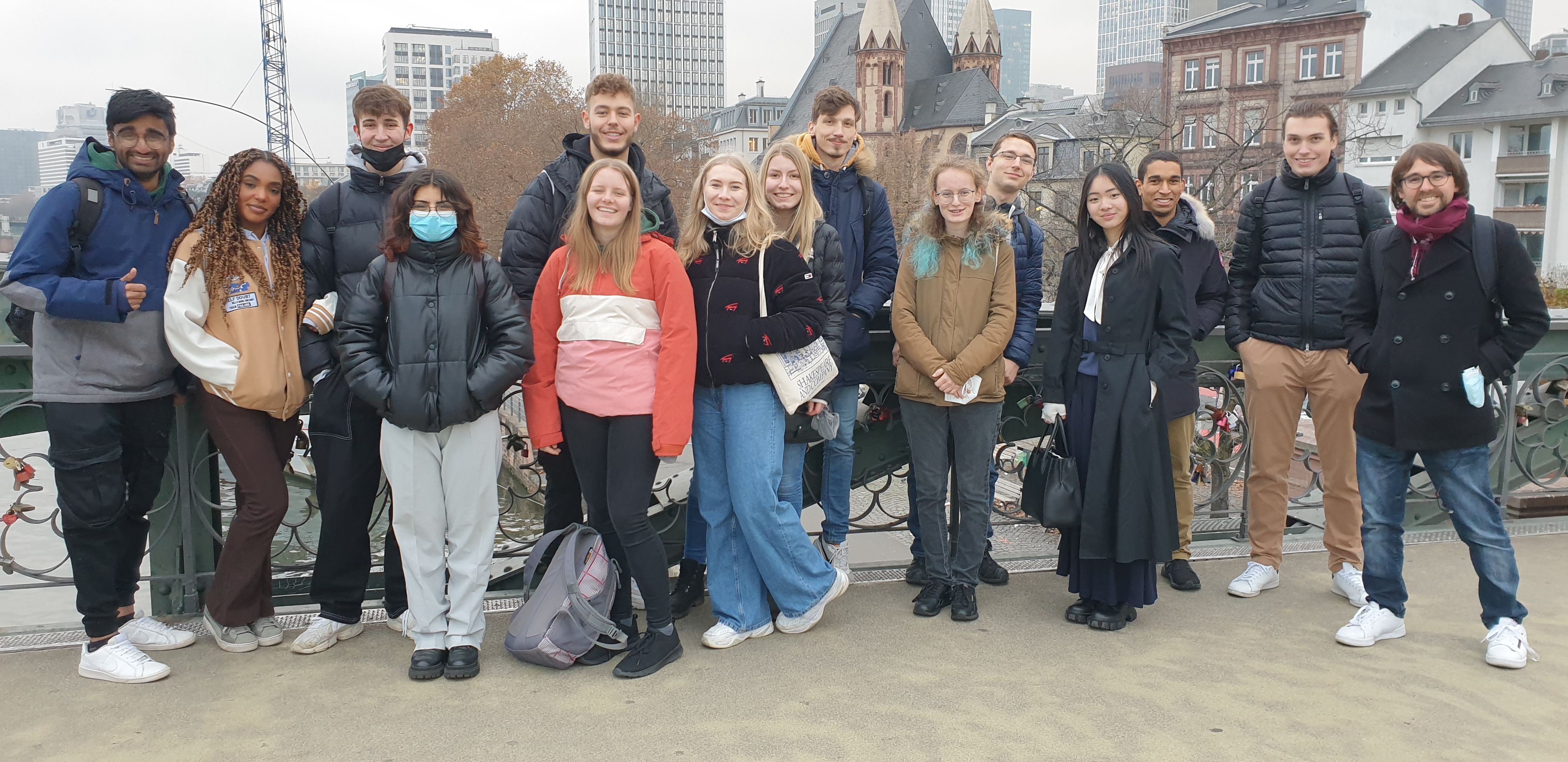 Am Dienstag, den 16.11.2021, hat der Kunst-Grundkurs der Q3 gemeinsam mit Herrn Schulze eine Exkursion nach Frankfurt mit einem Architekturrundgang durchgeführt. Ziel war es, eine „Reise durch die Architekturgeschichte“ zu machen, die in Frankfurt besonders eindrucksvoll erfahrbar wird. Die Geschichte reicht von den Funden der alten Kaiserhalle aus dem frühen 9. Jahrhundert bis zum neusten Bauprojekt „Four“ zwischen Gallus- und Junghofstraße, das voraussichtlich 2024 fertiggestellt werden soll.