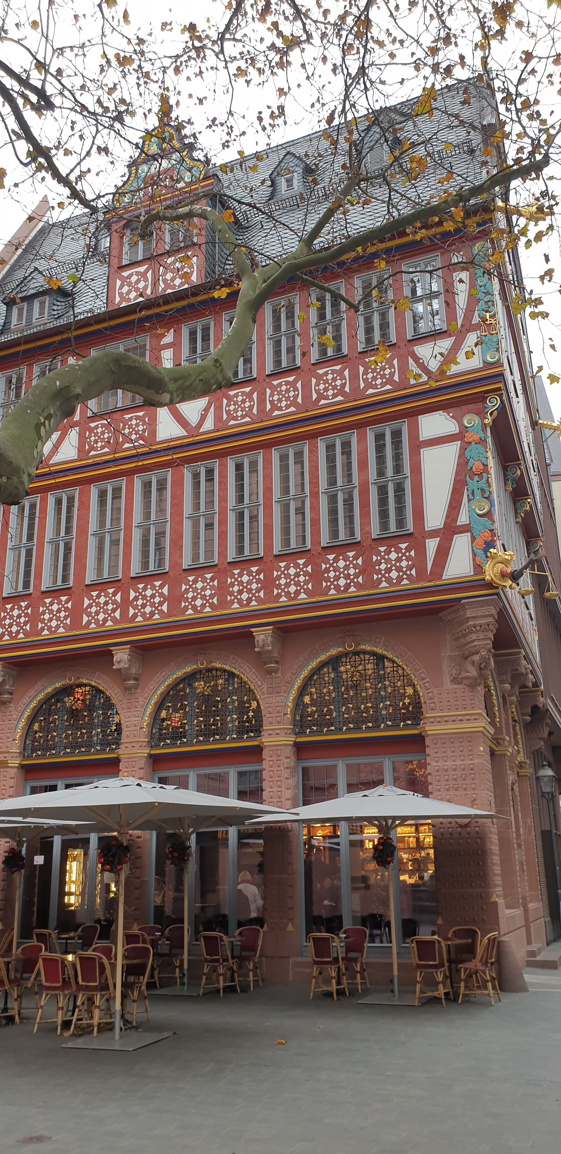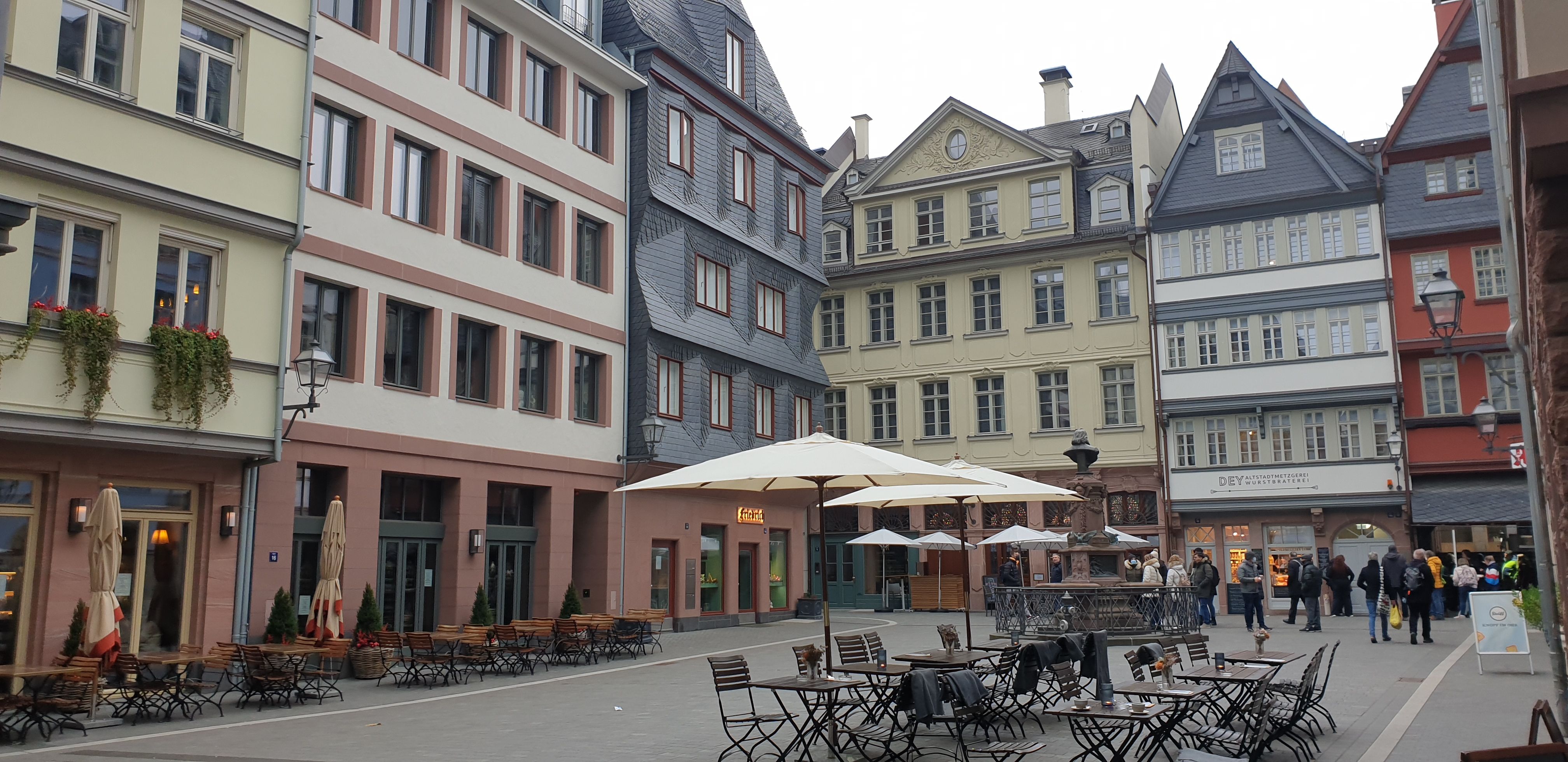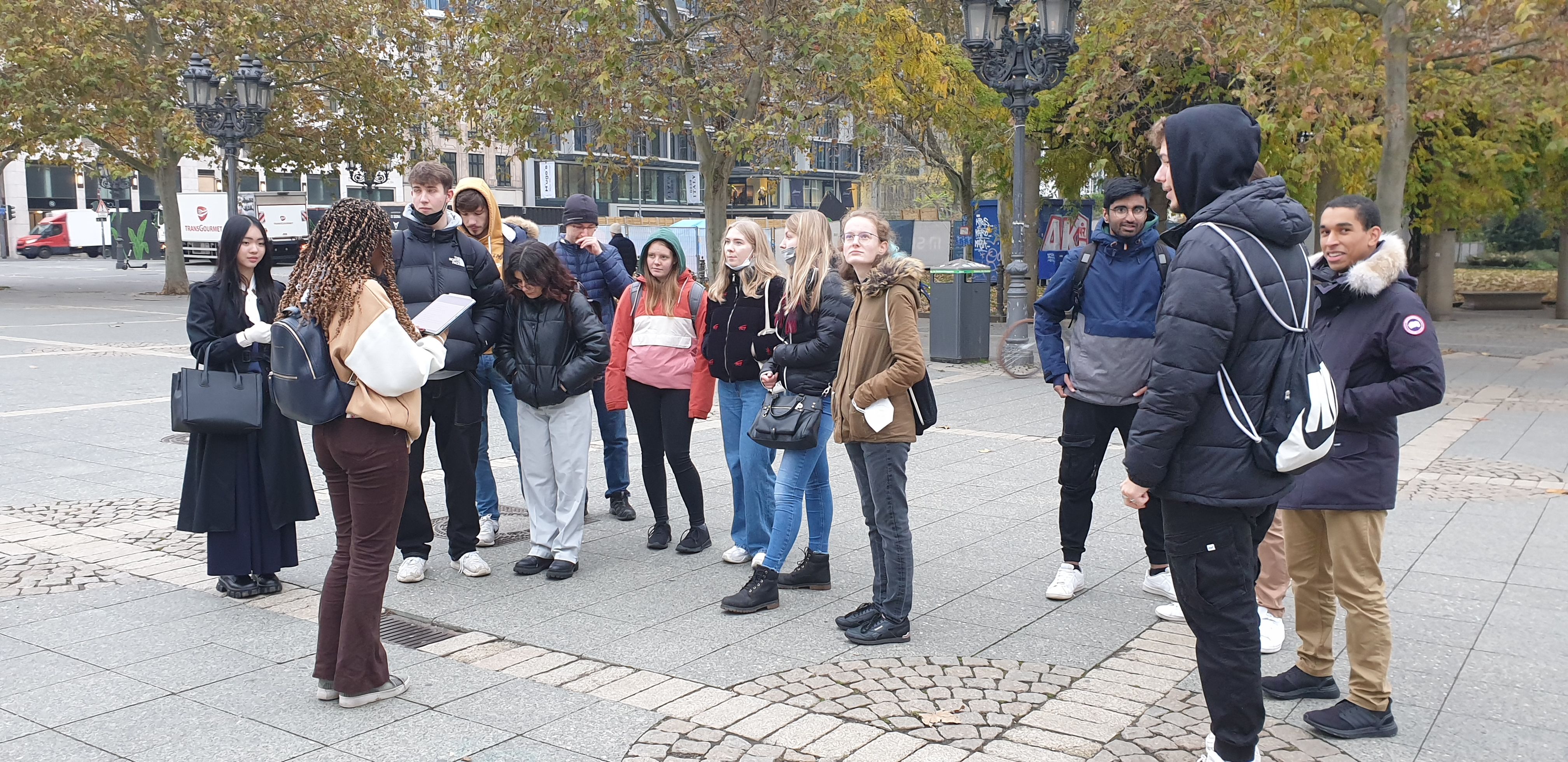 Am Dienstag, den 16.11.2021, hat der Kunst-Grundkurs der Q3 gemeinsam mit Herrn Schulze eine Exkursion nach Frankfurt mit einem Architekturrundgang durchgeführt. Ziel war es, eine „Reise durch die Architekturgeschichte“ zu machen, die in Frankfurt besonders eindrucksvoll erfahrbar wird. Die Geschichte reicht von den Funden der alten Kaiserhalle aus dem frühen 9. Jahrhundert bis zum neusten Bauprojekt „Four“ zwischen Gallus- und Junghofstraße, das voraussichtlich 2024 fertiggestellt werden soll.