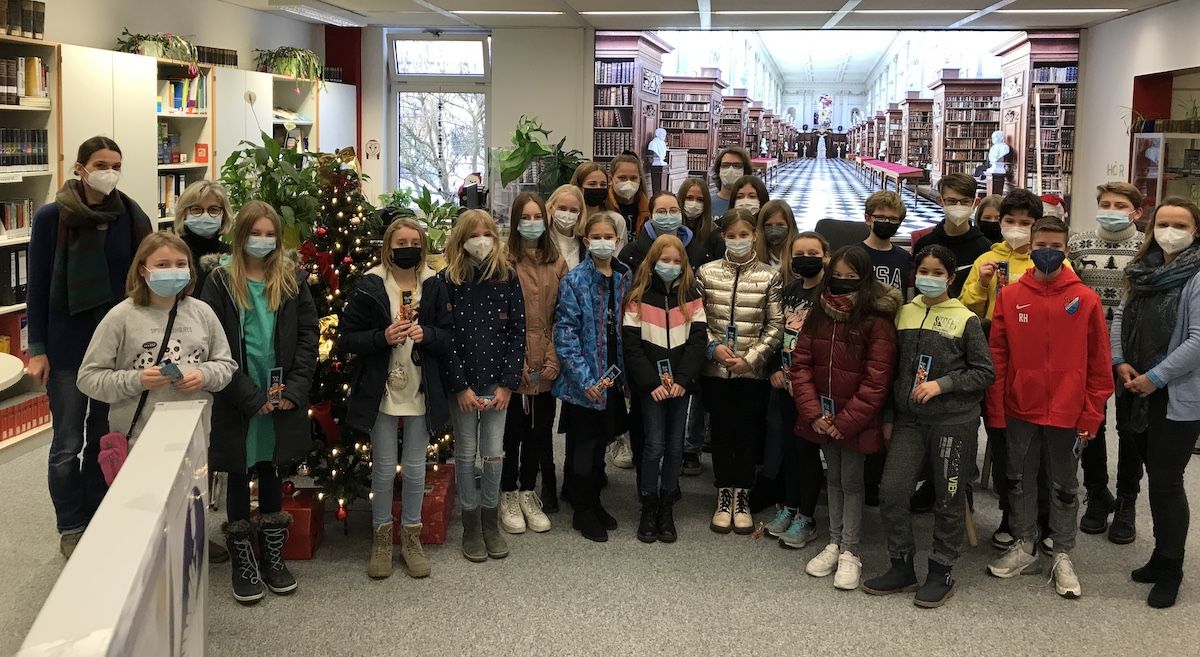 Am letzten Tag vor den Ferien waren abschließend noch einmal alle 57 Teilnehmerinnen und Teilnehmer in die Bibliothek eingeladen: Mit einem süßen Weihnachtsgruß und einem Lesezeichen bedankte sich das Bibliotheksteam bei ihnen für ihre tollen Wettbewerbsbeiträge.