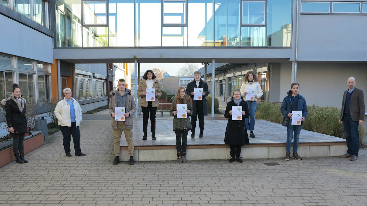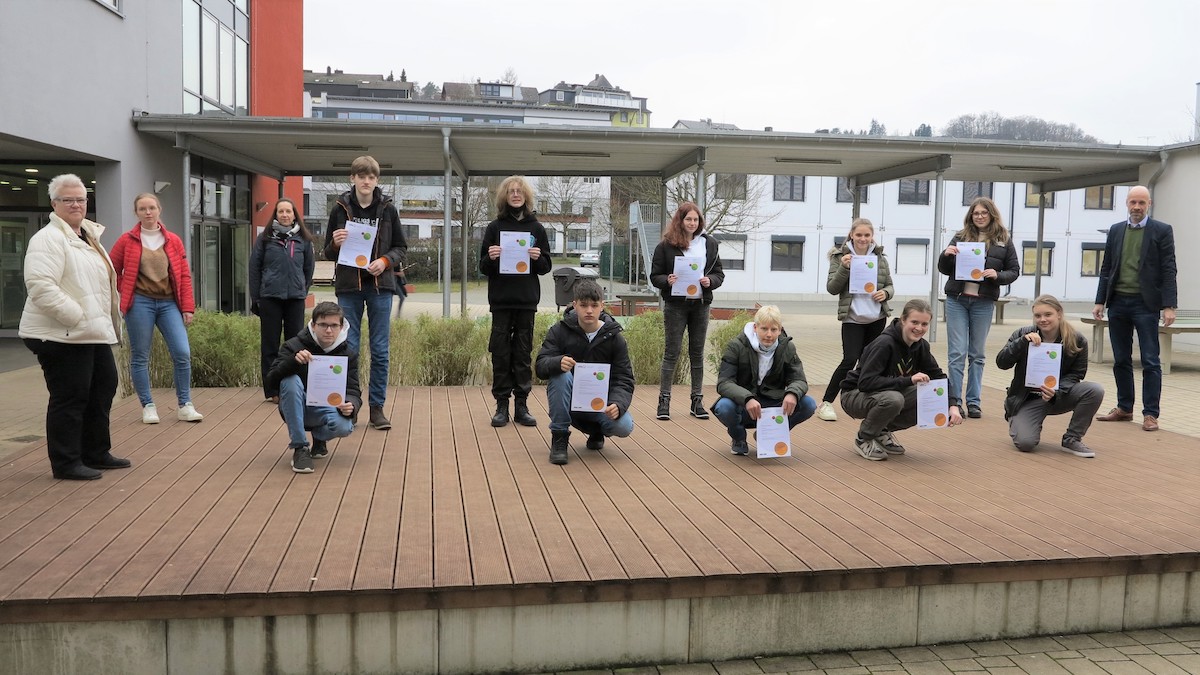 Erfolgreiche Absolventen des VHS-Zehn-Finger-Tastschreibkurses an der Wilhelm-von-Oranien-Schule