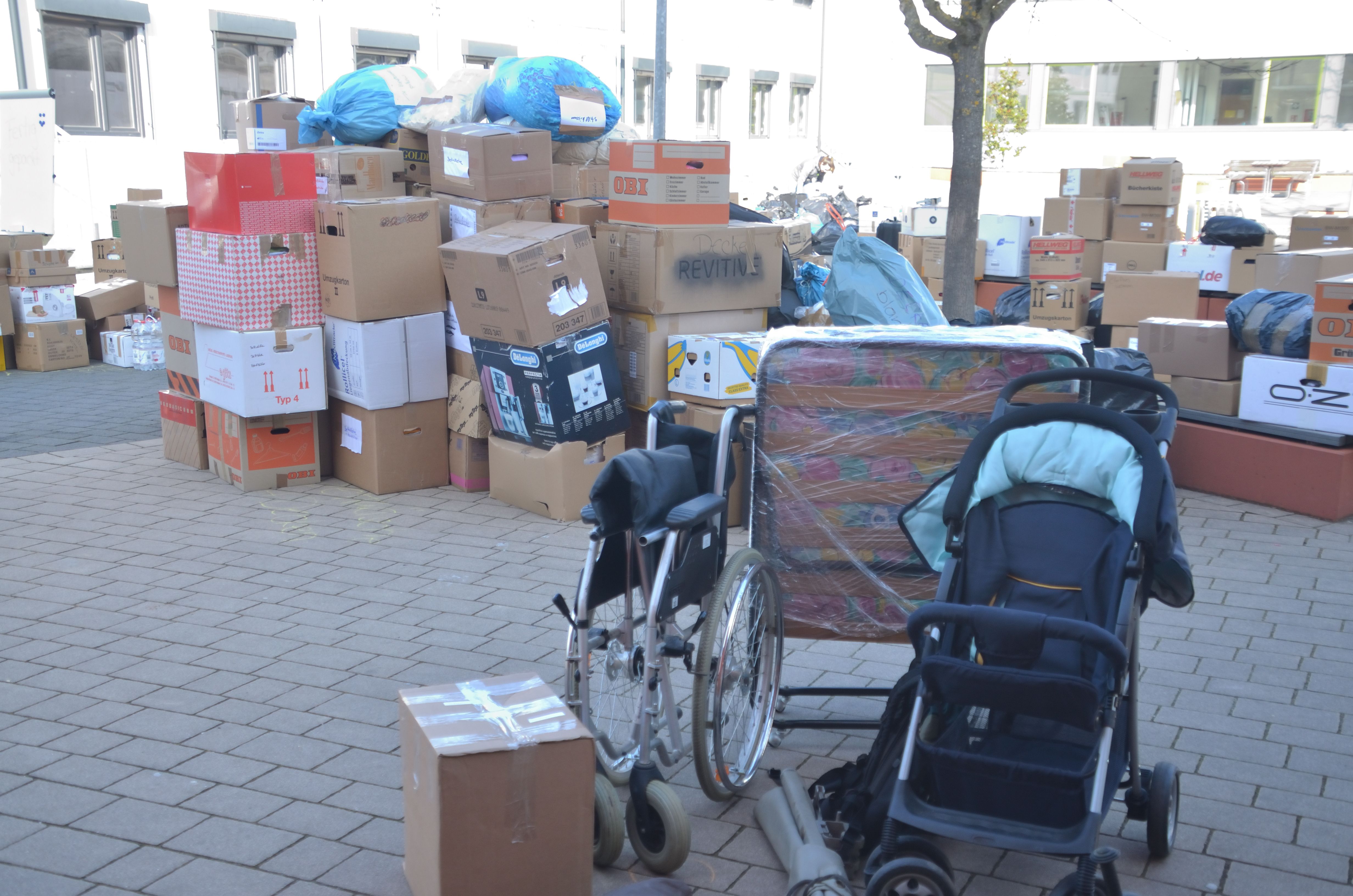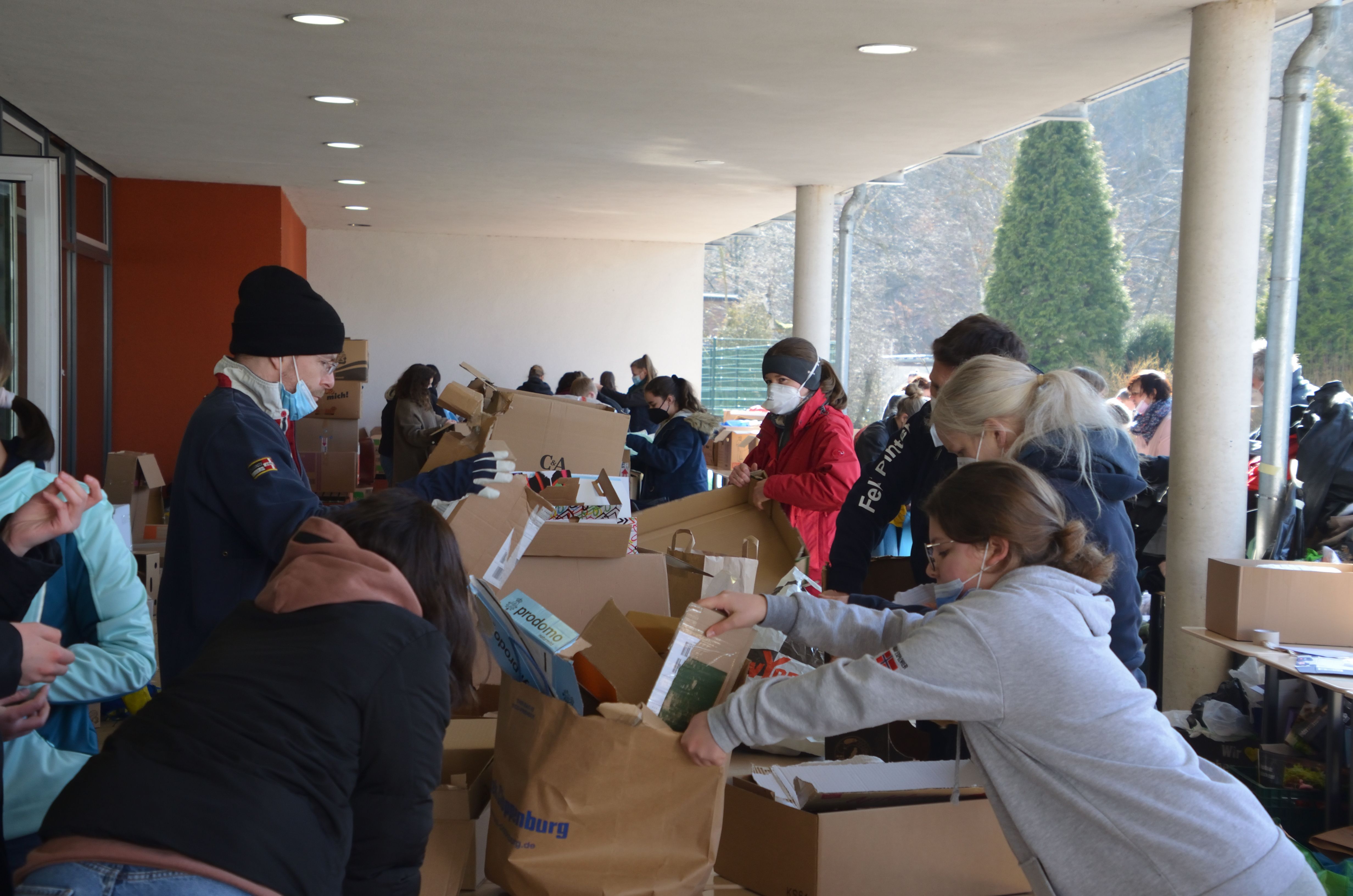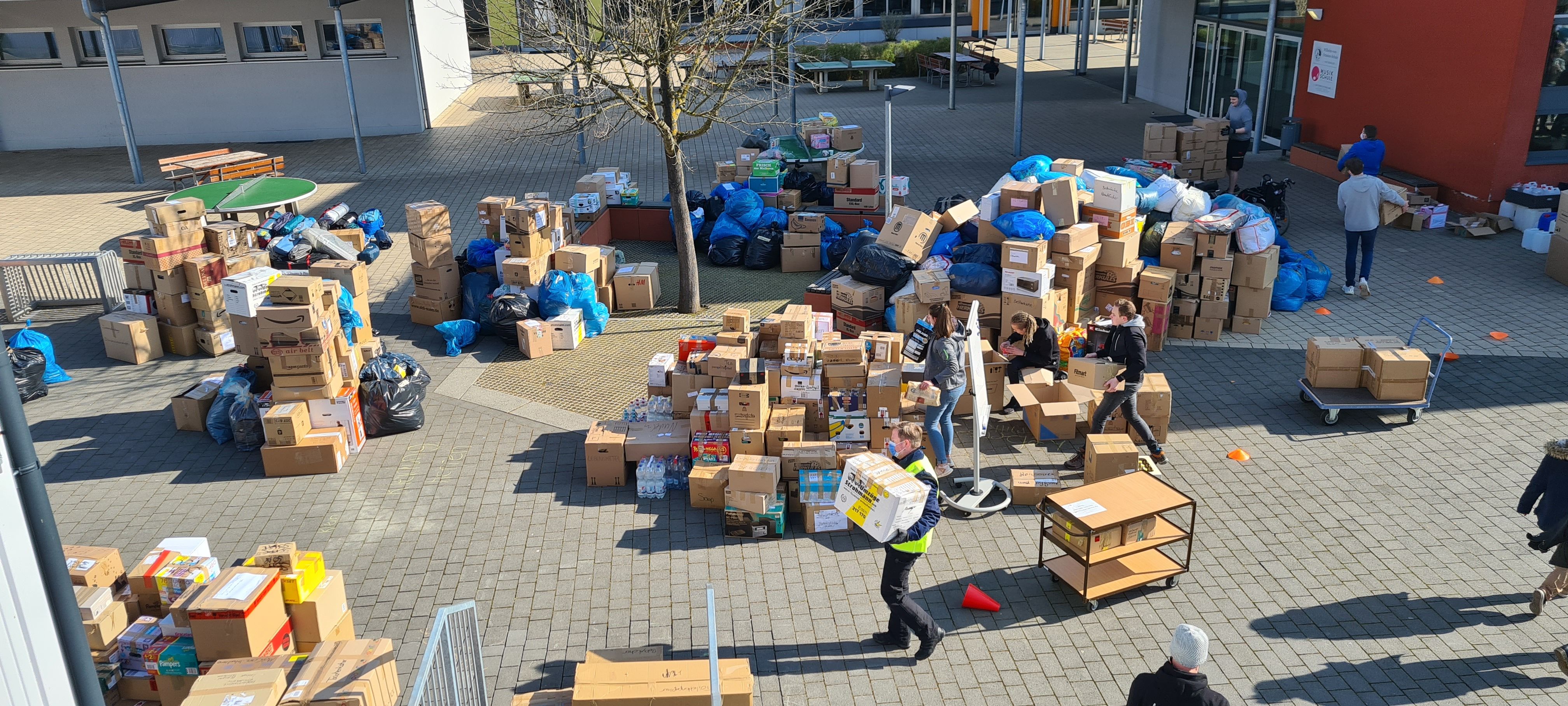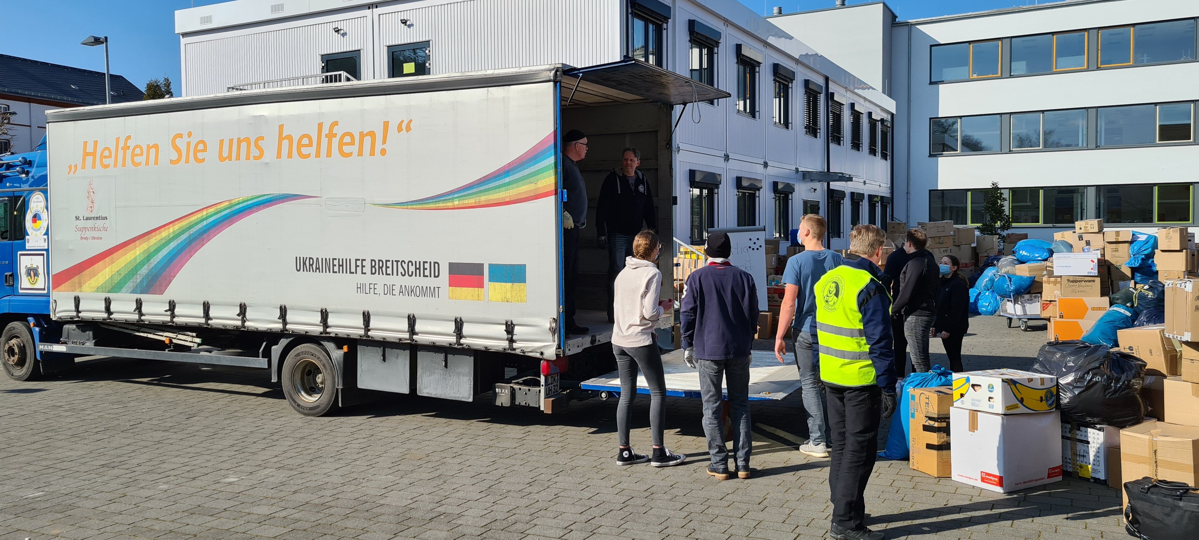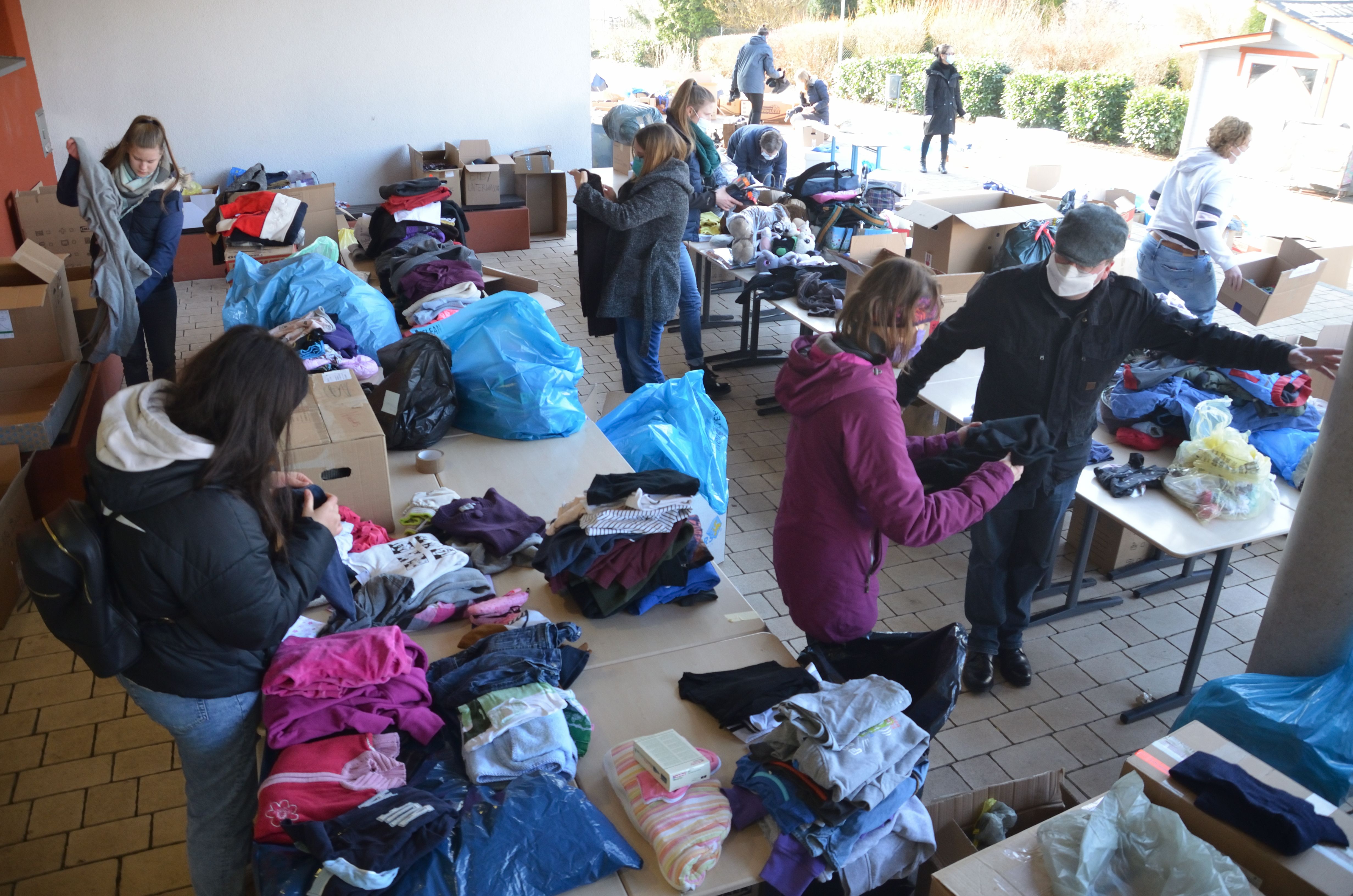 Um den Sammelpunkt der Ukrainehilfe Breitscheid in Frohnhausen zu entlasten, hatte die Wilhelm-von-Oranien-Schule kurzerhand am Samstag einen zweiten Stützpunkt eingerichtet. Der Flut der gespendeten Materialien – Verbandmaterial, Kleidung, Matratzen, Zelte, Nahrungsmittel, Medikamente usw. – war zunächst kaum Herr zu werden, ca. 80 Helferinnen und Helfer packten kräftig mit an. Dazu gehörten zahlreiche Schülerinnen und Schüler, Eltern, Lehrkräfte und Mitarbeiter der Schule, aber auch Ehemalige und Freunde.